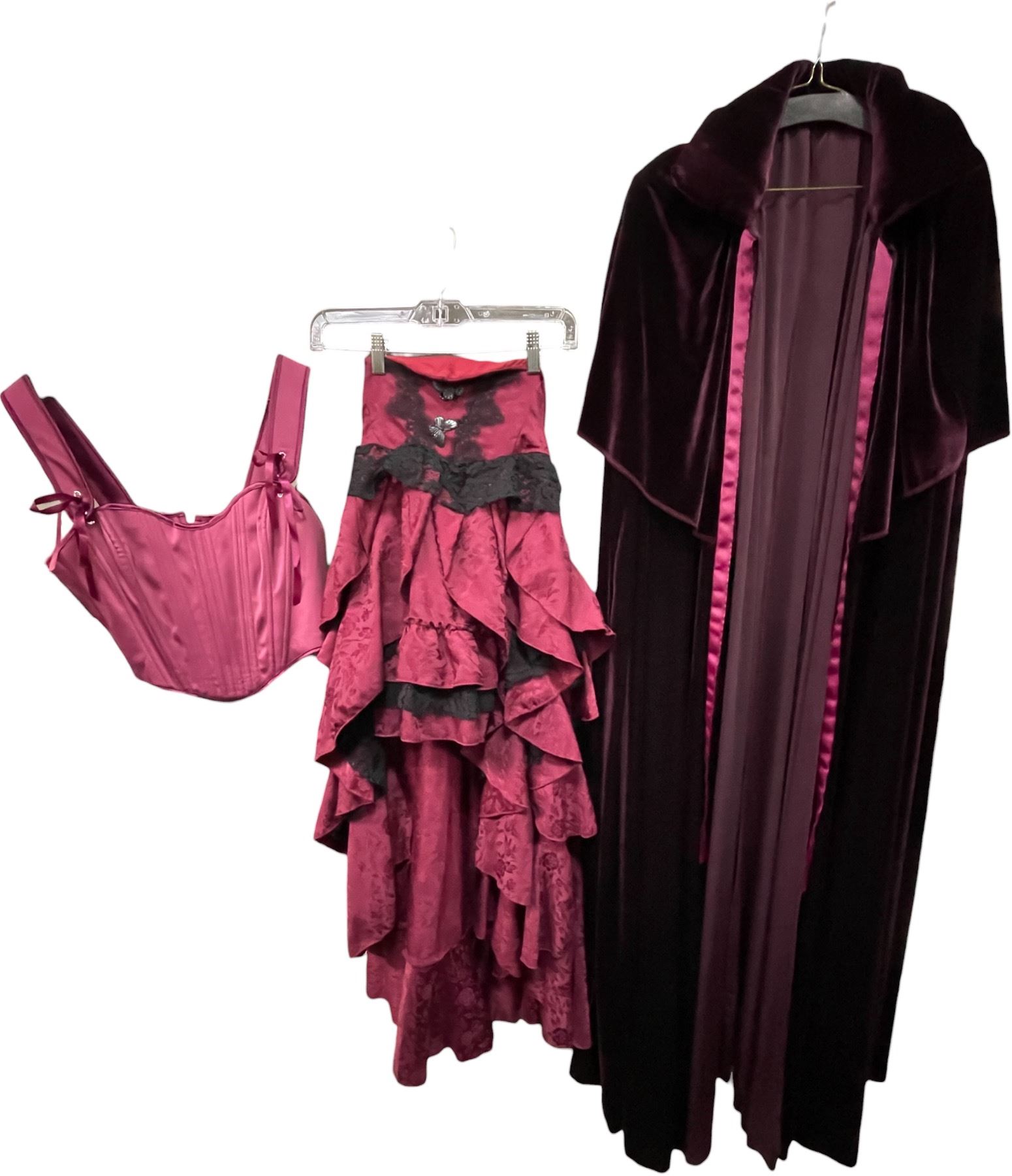 Lot of Gothic Burgundy Dress, Corset Top & Velvet Cape Ensemble (Various Sizes)