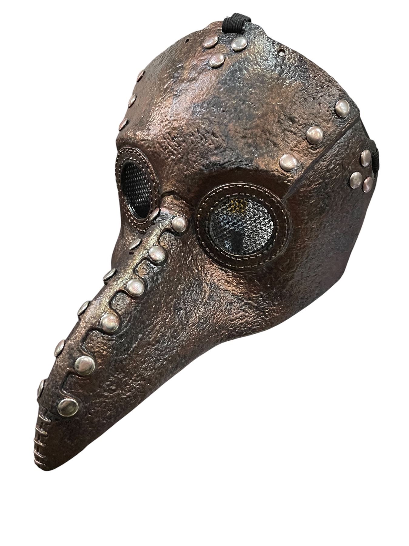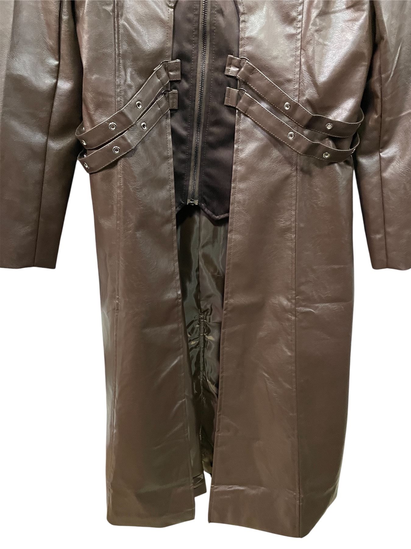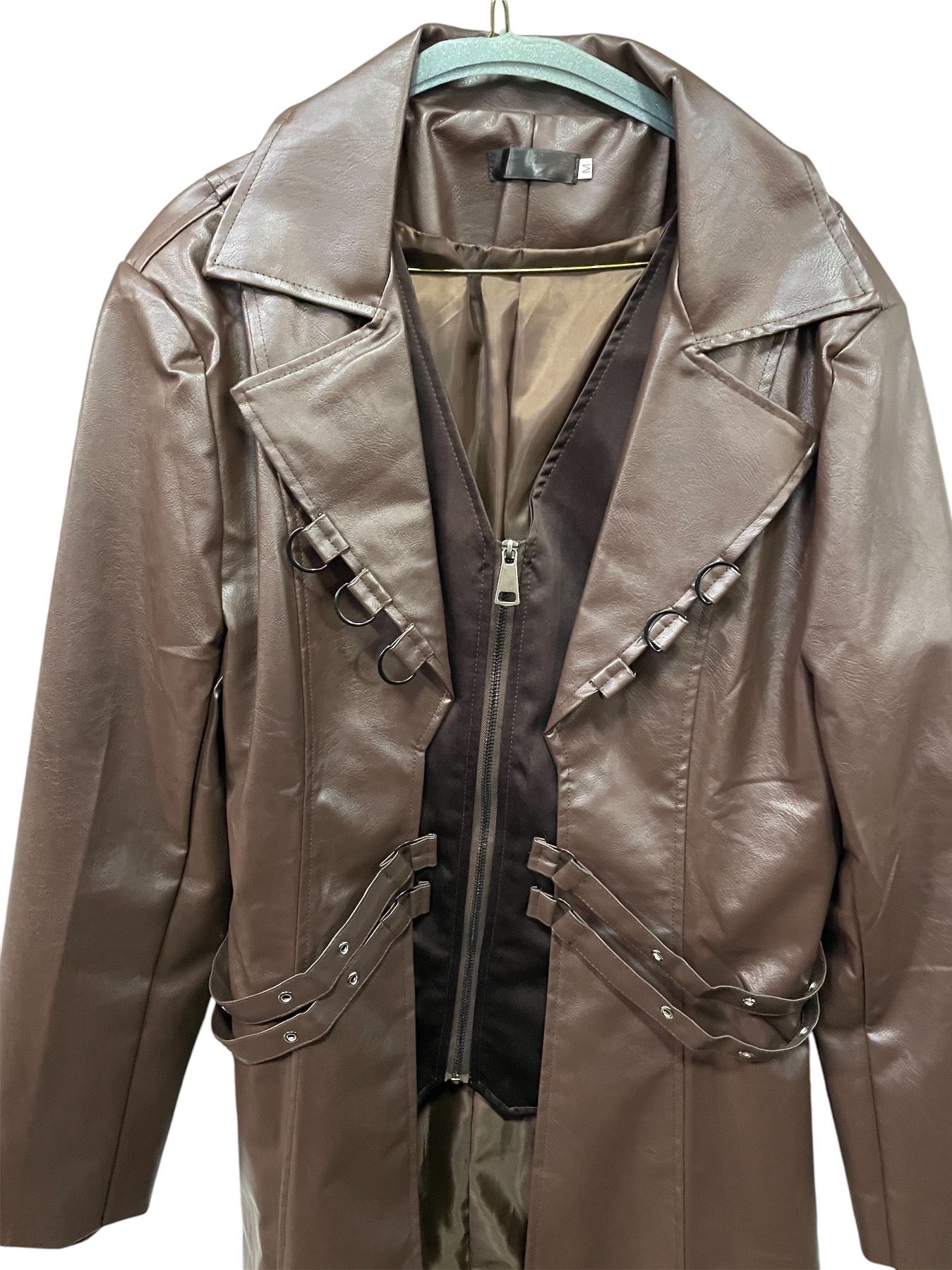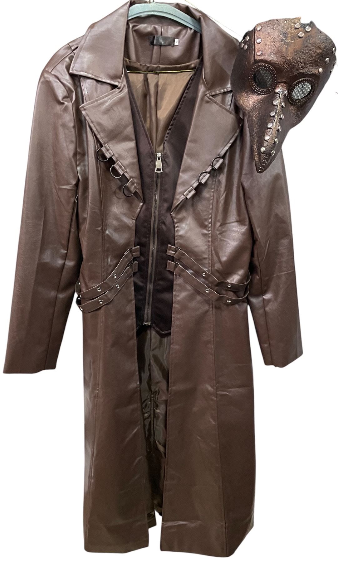 Lot of Theatrical Costume Pieces - Brown Faux Leather Coat with Harness Detail & Plague Doctor Mask (Steampunk Style)