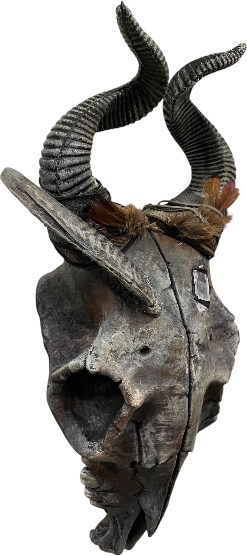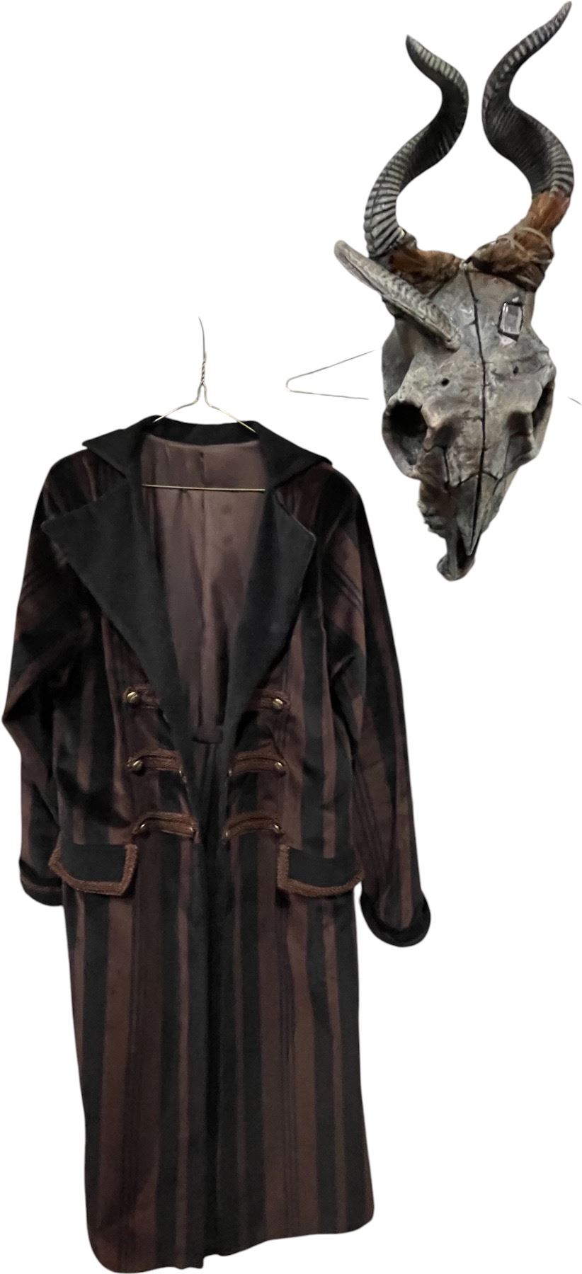 Lot of Theatrical Costume Pieces - Striped Coat & Horned Skull Mask (Fantasy/Medieval Style)