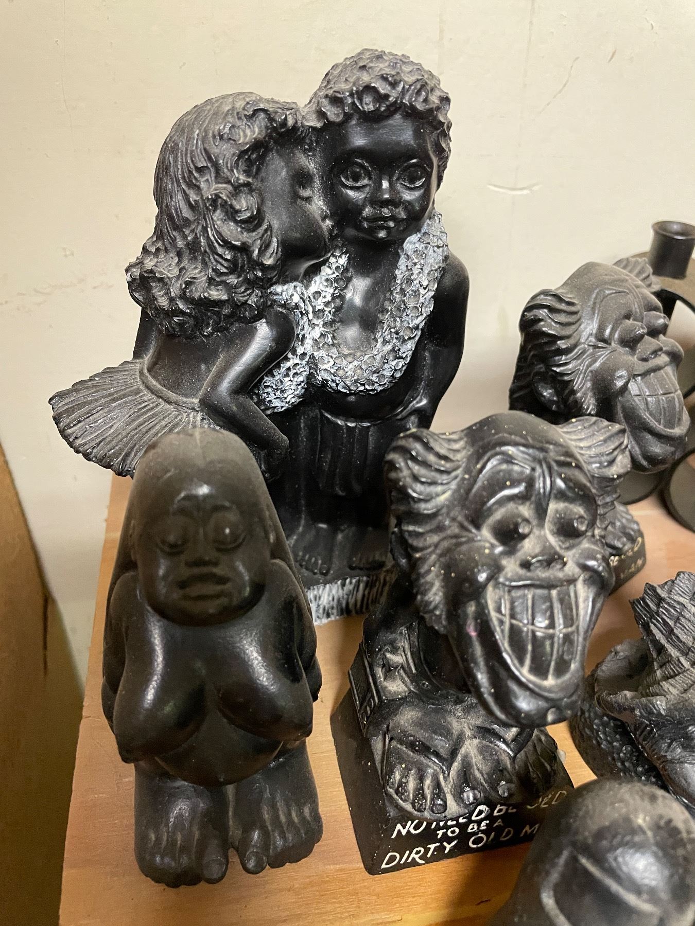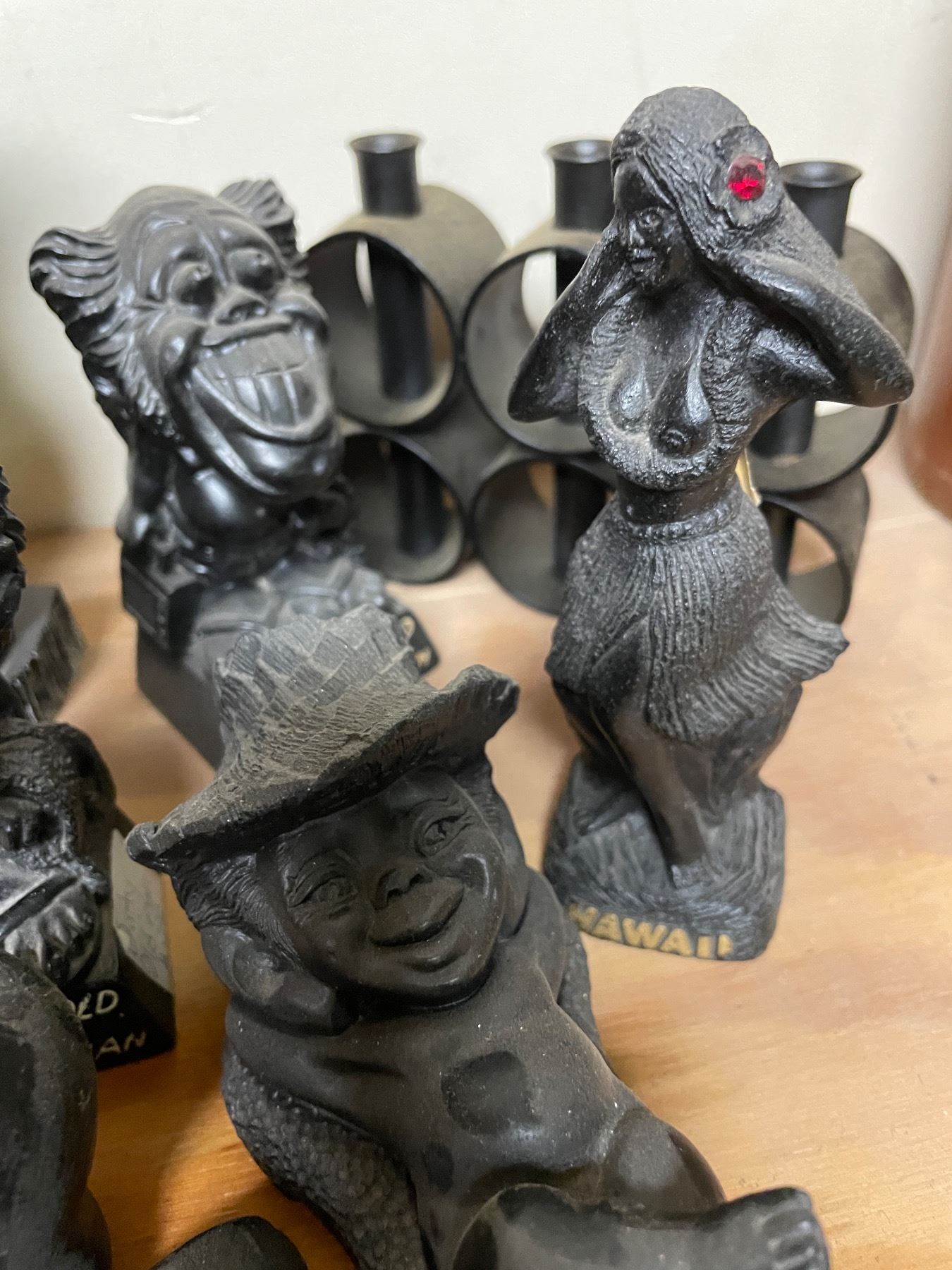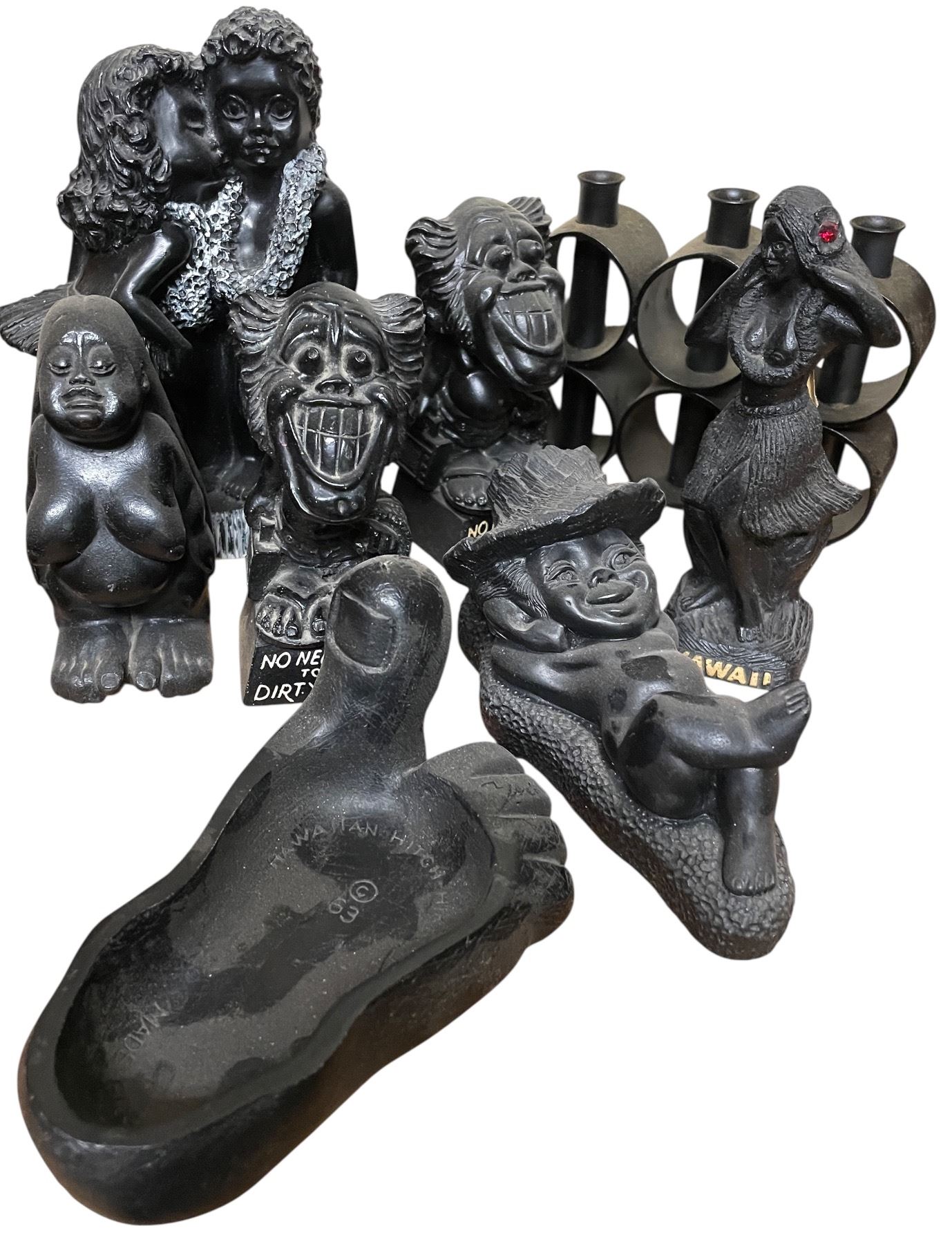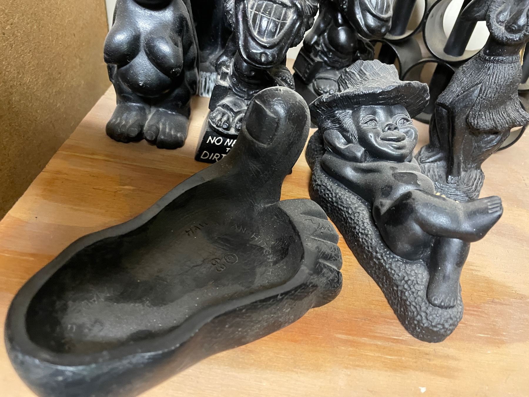Lot of Vintage Black Hawaii Souvenir Novelty Figurines - Hula Girl, Comic Characters, Foot Ashtray & Candle Holder
