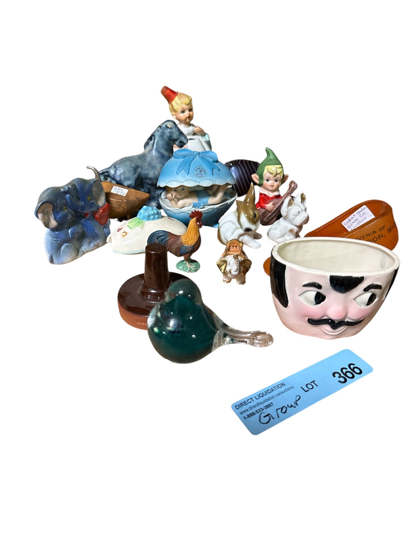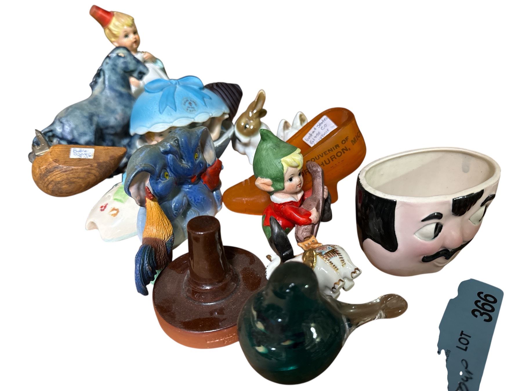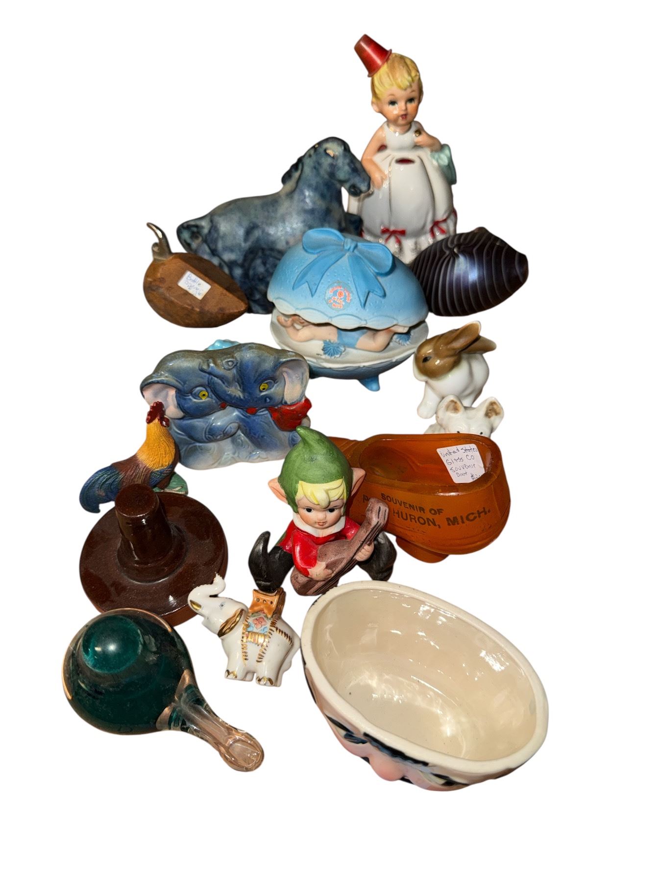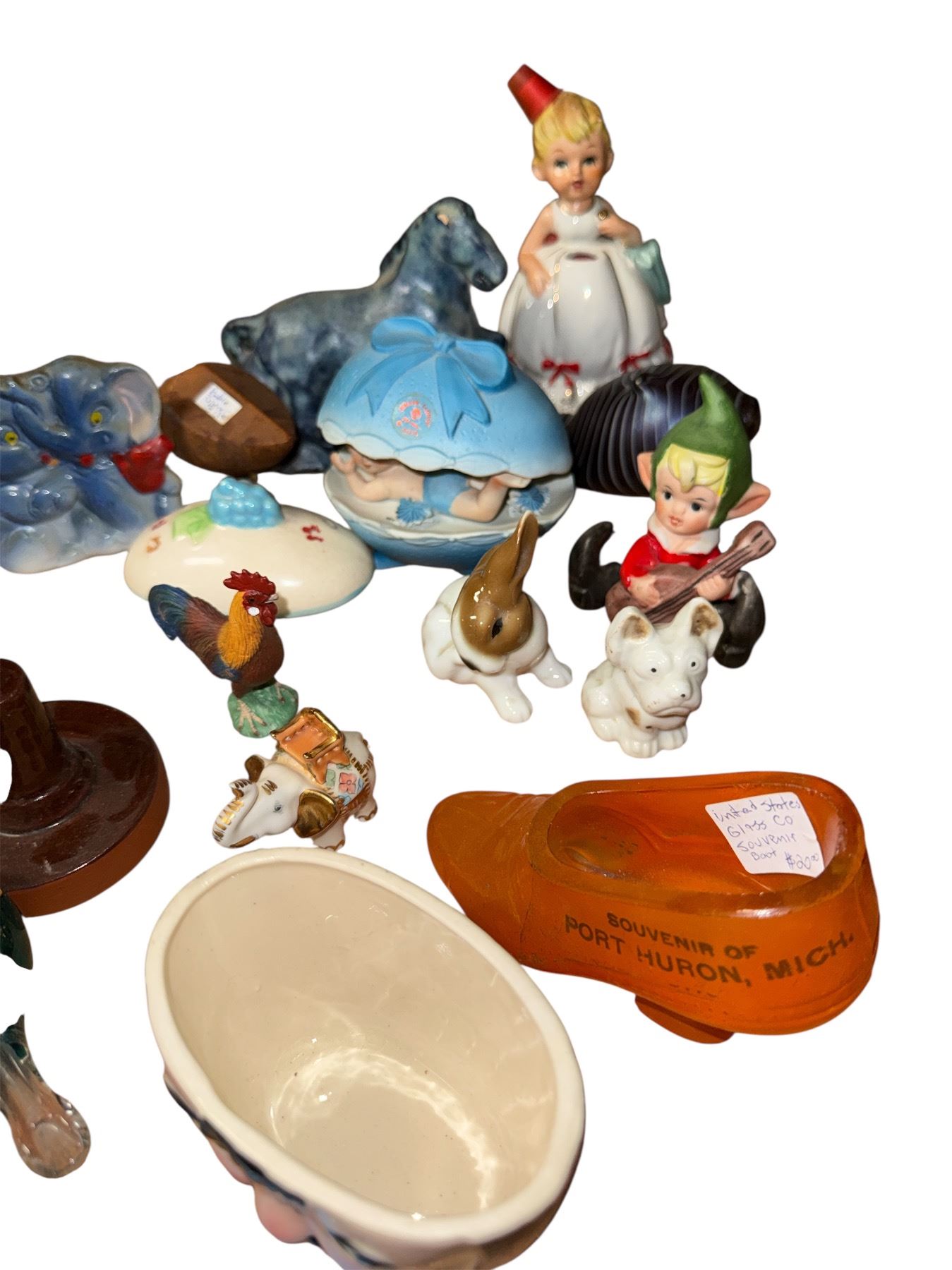 Lot of Vintage Ceramic & Porcelain Collectibles - Elf Figurine, Child Figure, Animal Figurines, Souvenir Bowl, Trinket Box & More