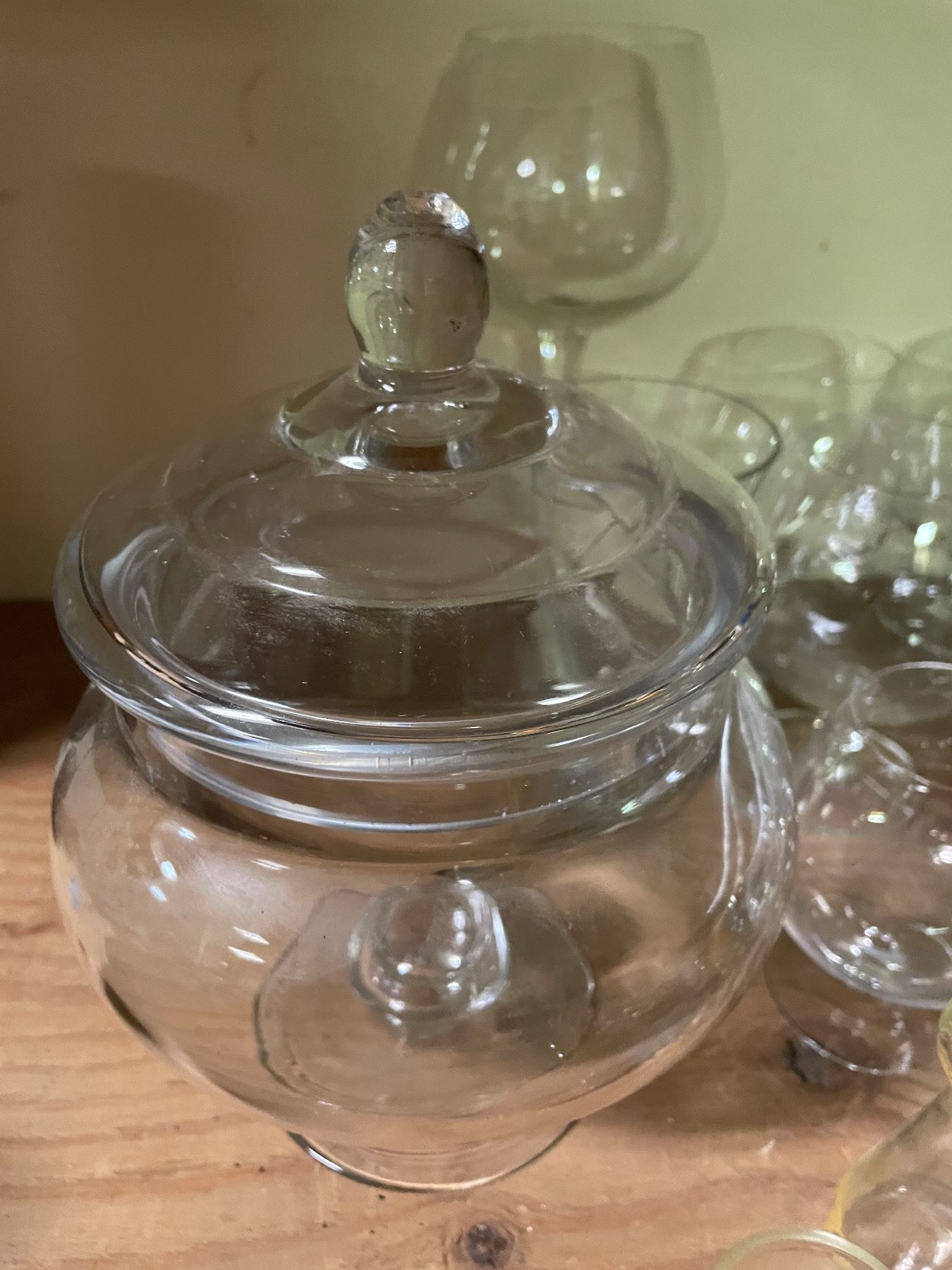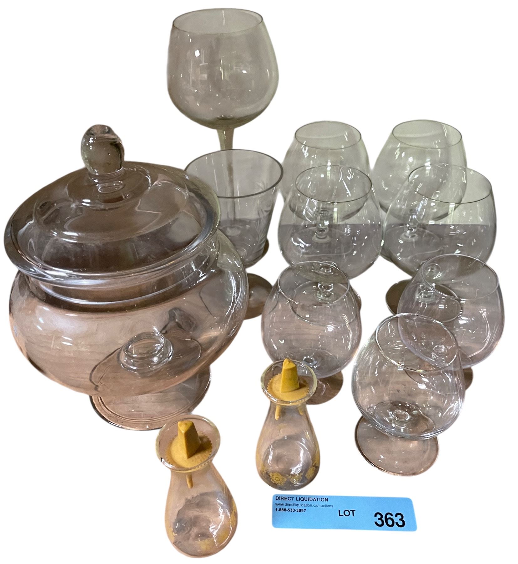 Lot of Vintage Glass Brandy Glasses, Candy Jar & Misc Glass Items