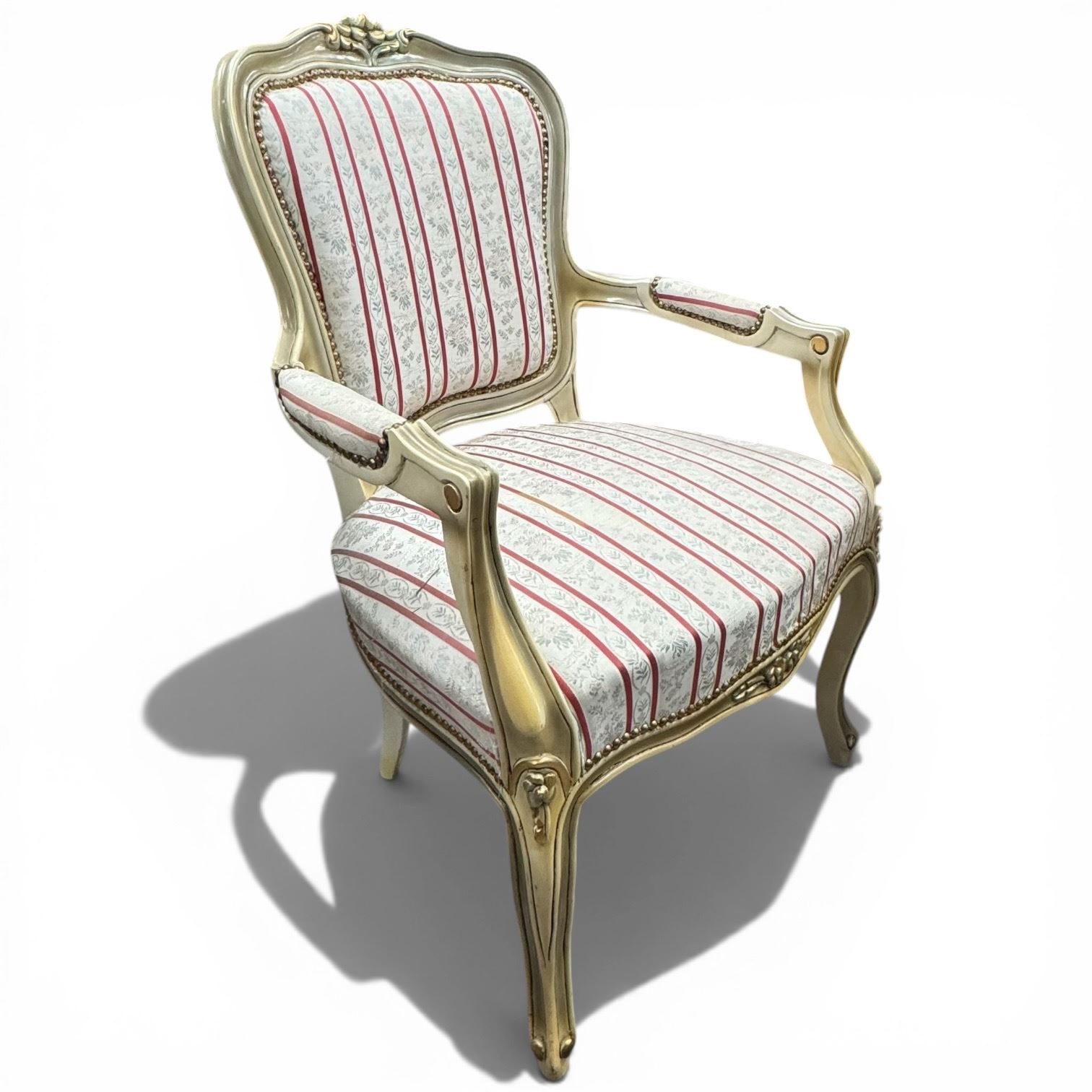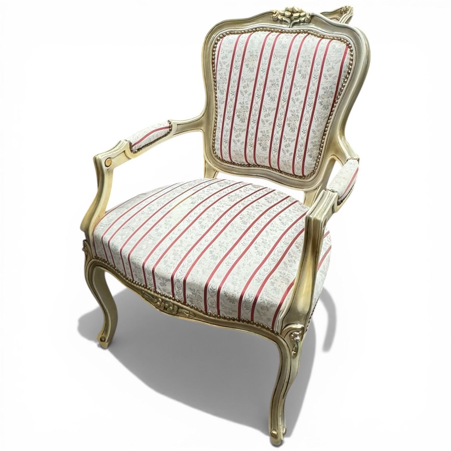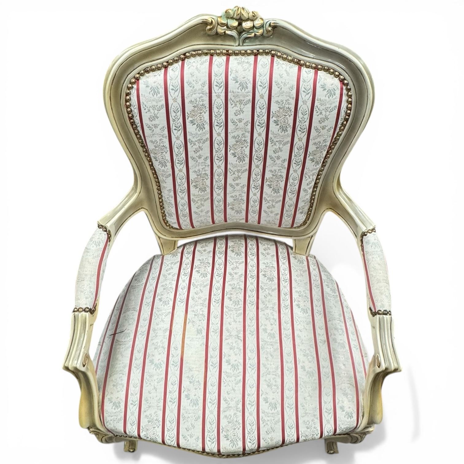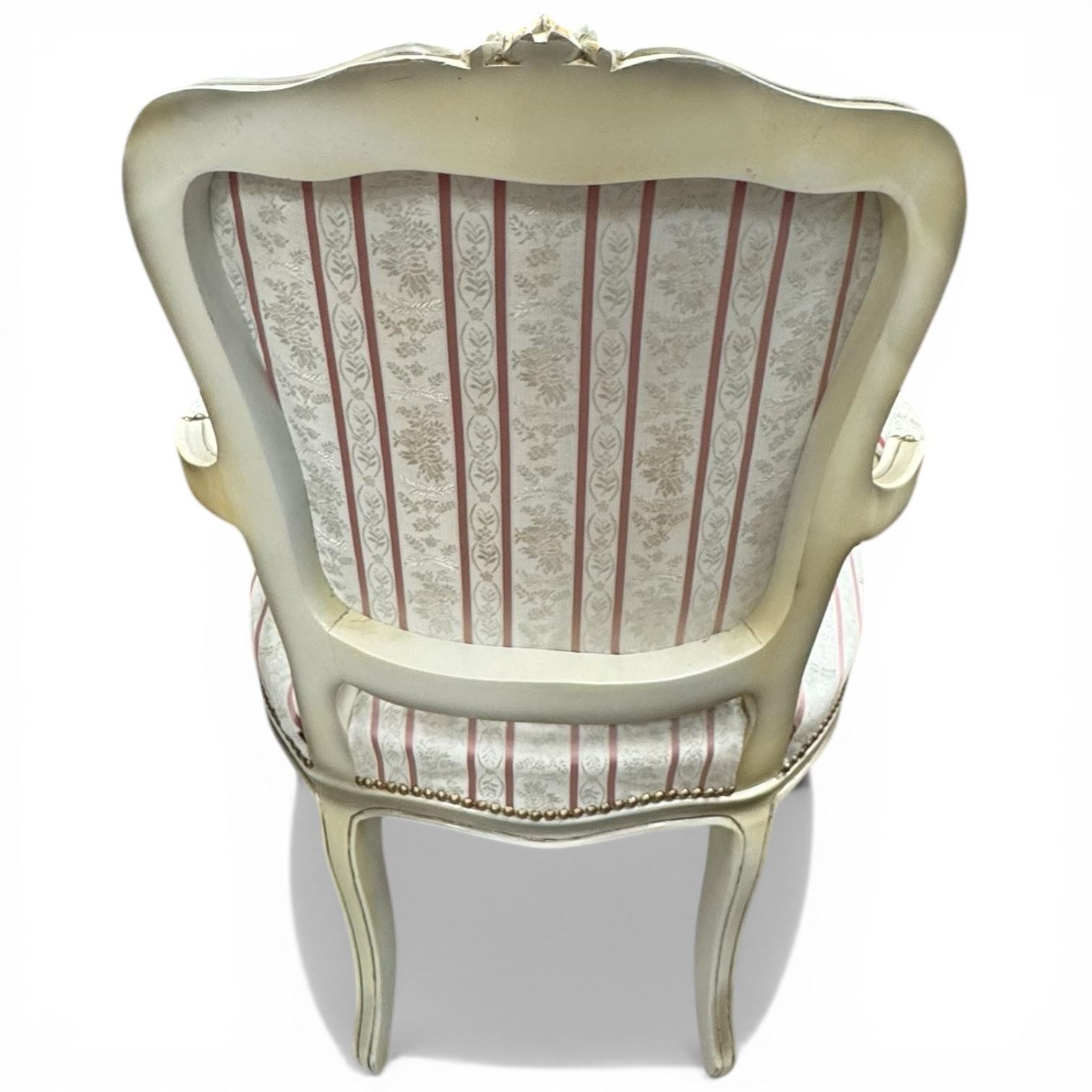 Louis XVI Style Arm Chair with Partial Gilt Finish and Panel Floral Upholstery