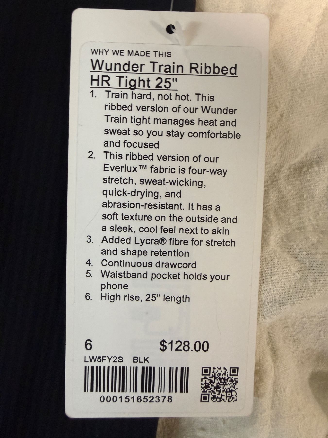 Lululemon Wunder Train Ribbed HR Tight 25" (Size 6, Black) - RV: $128, with Tag