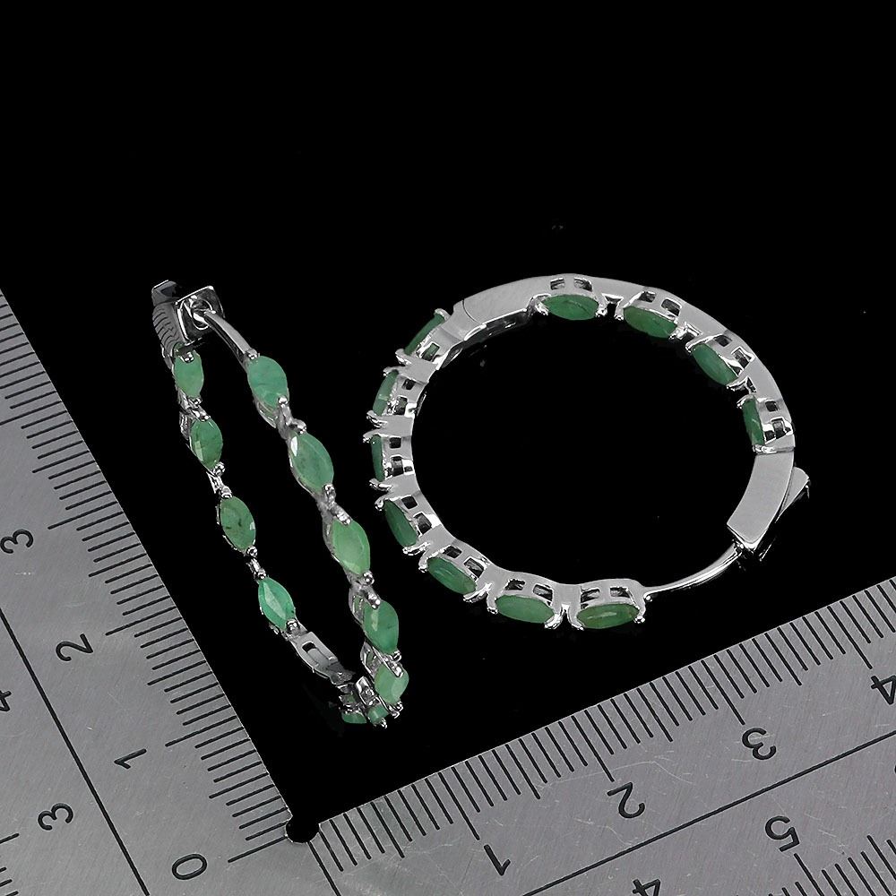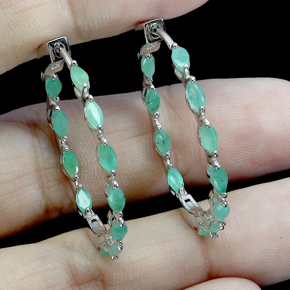 MARQUISE CUT 6X4 mm EMERALD EARRINGS IN 14K WHITE PLATED GOLD OVER 925 STERLING SILVER - APPRAISED REPLACEMENT VALUE CAD CAD 900