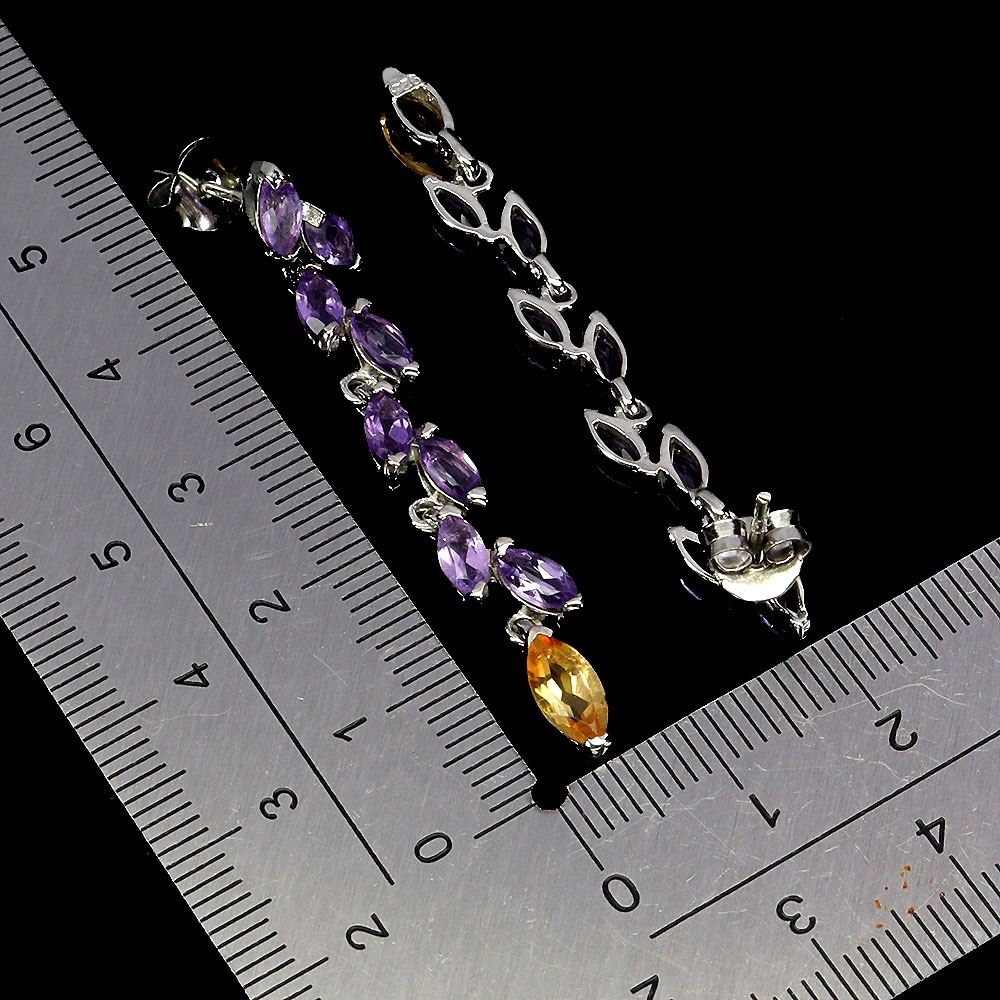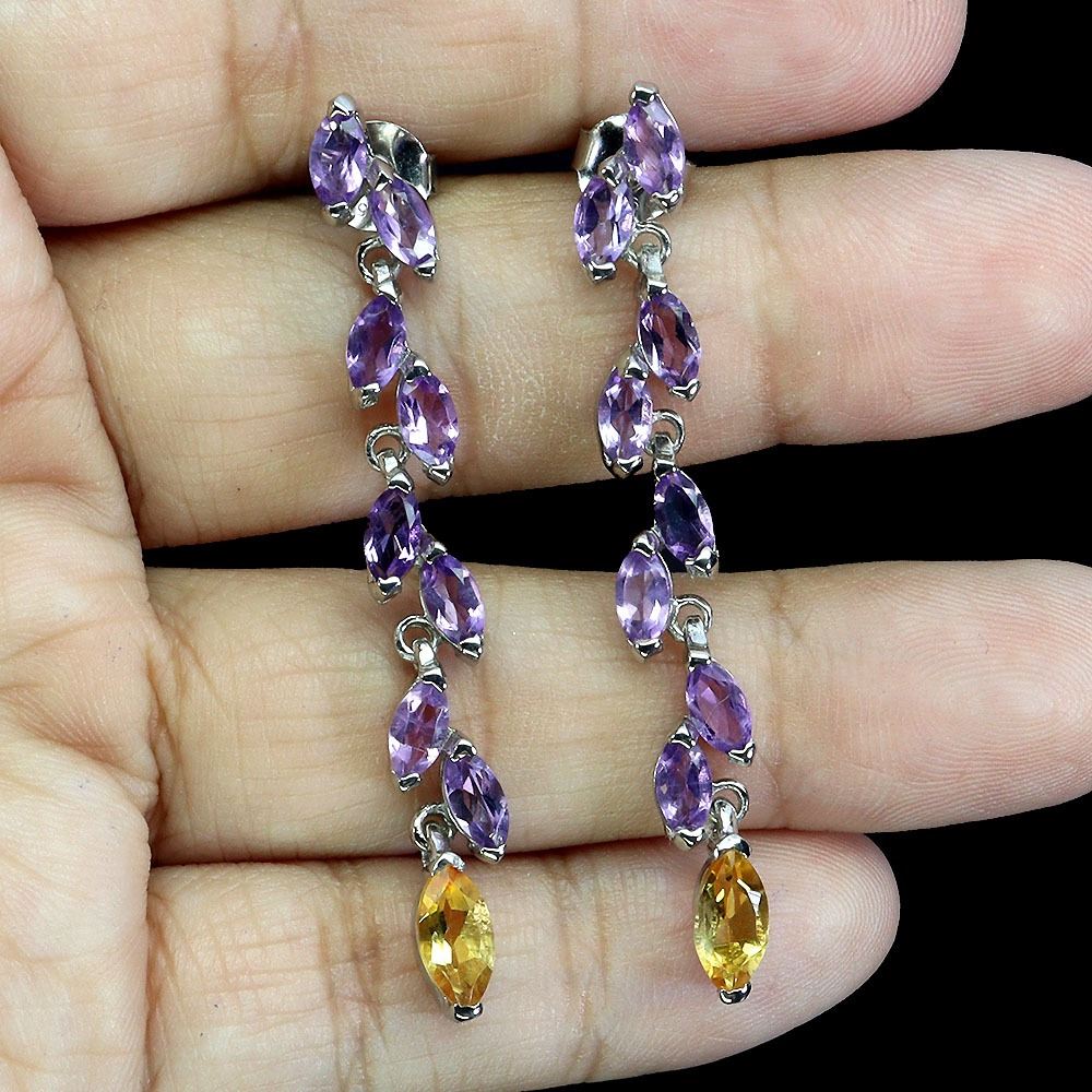 MARQUISE CUT CITRINE AND AMETHYST IN 14K WHITE PLATED GOLD OVER 925 STERLING SILVER - APPRAISED REPLACEMENT VALUE CAD 860