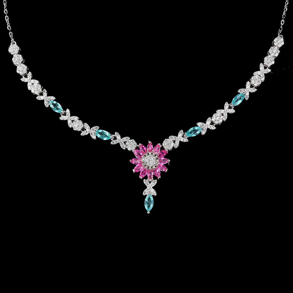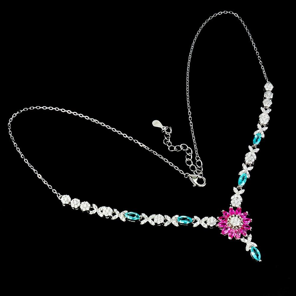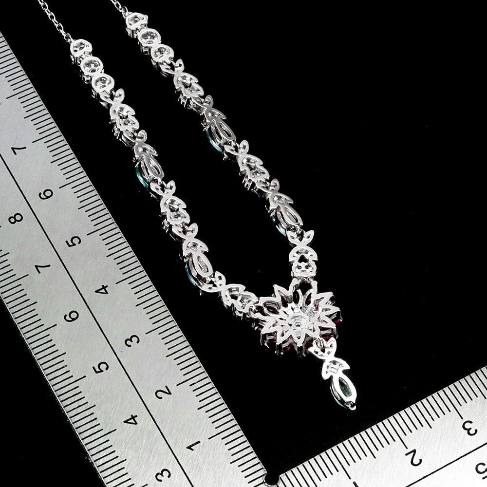 MARQUISE CUT PINK TOPAZ AND PARAIBA BLUE TOPAZ NECKLACE IN 14K WHITE GOLD PLATED OVER 925 STERLING SILVER - APPRAISED REPLACEMENT VALUE CAD 1,350
