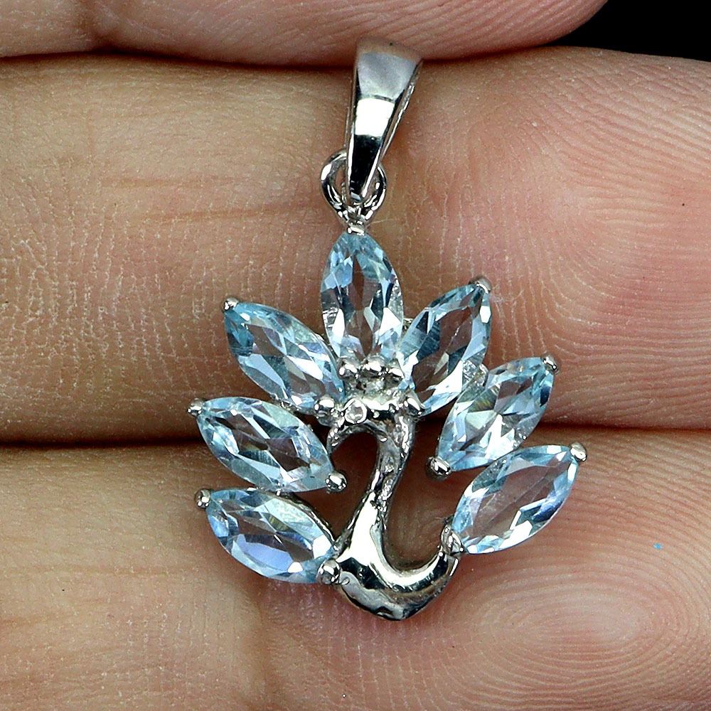 MARQUISE CUT SKYBLUE TOPAZ PEACOCK SHAPPED PENDANT IN 14K WHITE PLATED GOLD OVER 925 STERLING SILVER - APPRAISED REPLACEMENT VALUE CAD 370