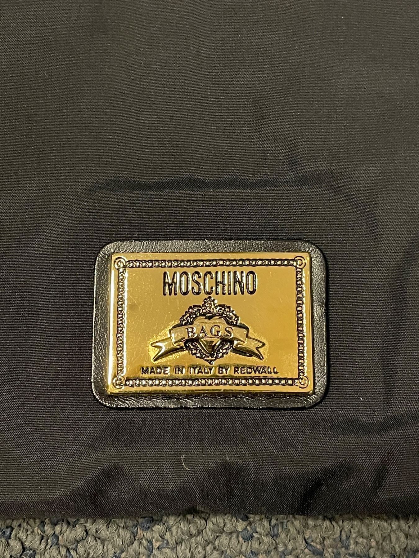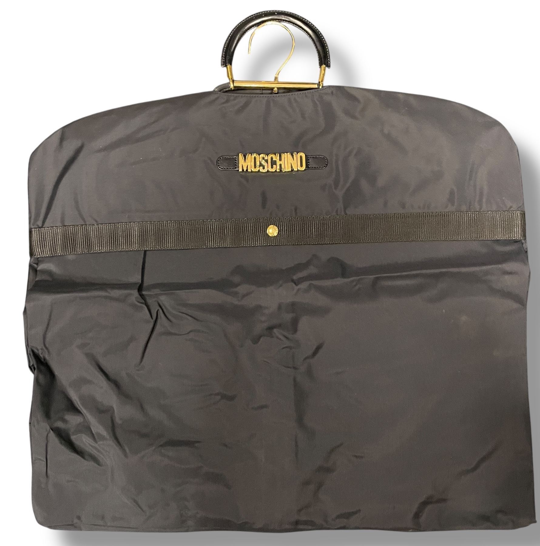 MOSCHINO Vintage Nylon Black Packable Logo Garment Bag. Condition: Minor scratches or wear on the surface. Sold as-is; Authenticity Not Verified