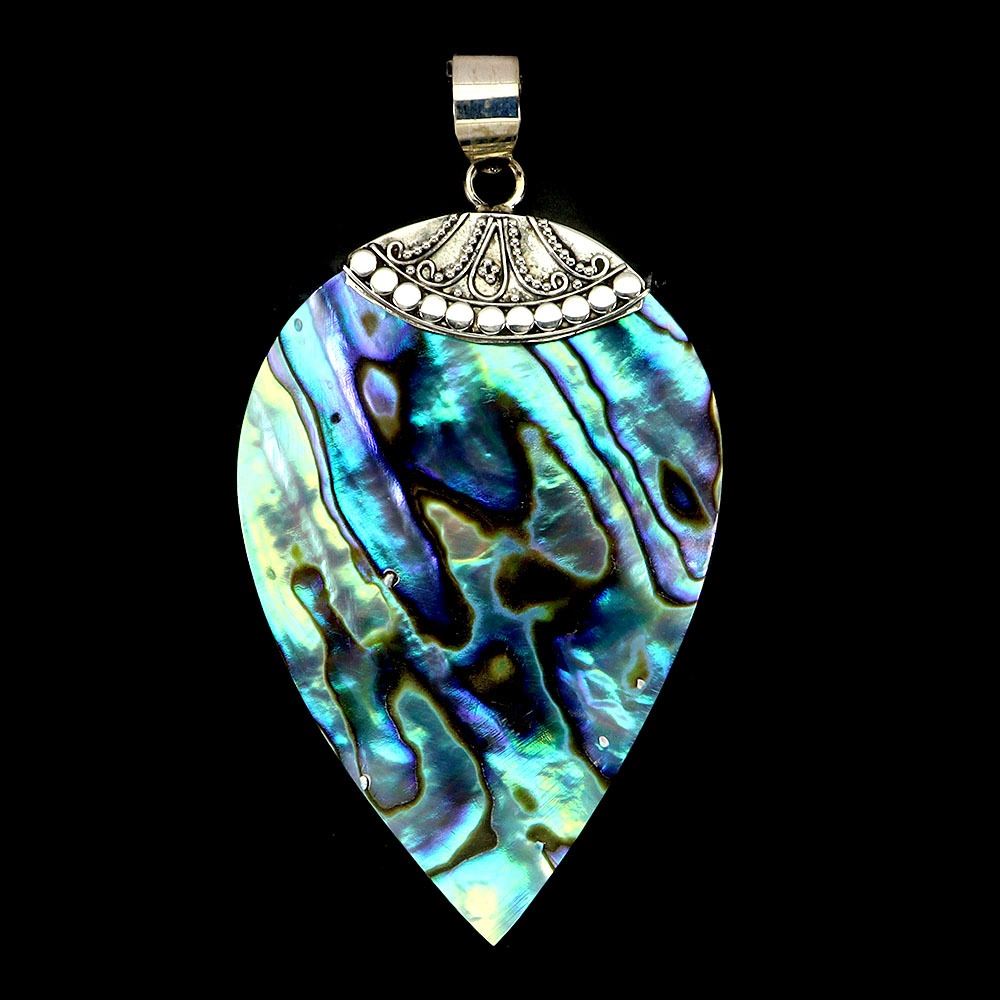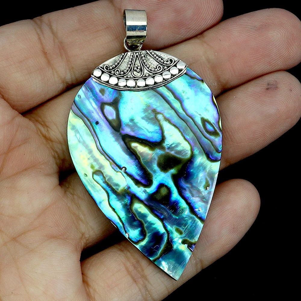 MOTHER OF PEARL PENDANT 49X 32 mm IN 14K WHITE PLATED GOLD OVER 925 STERLING SILVER