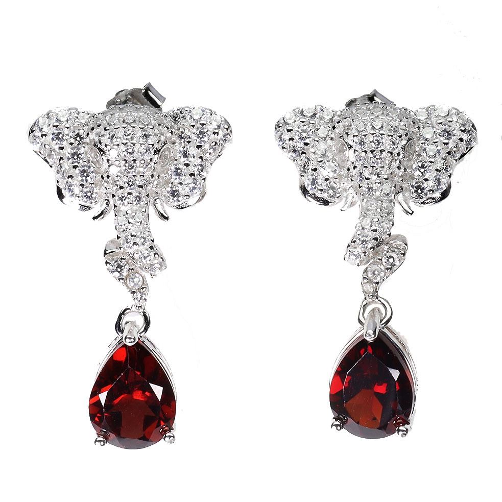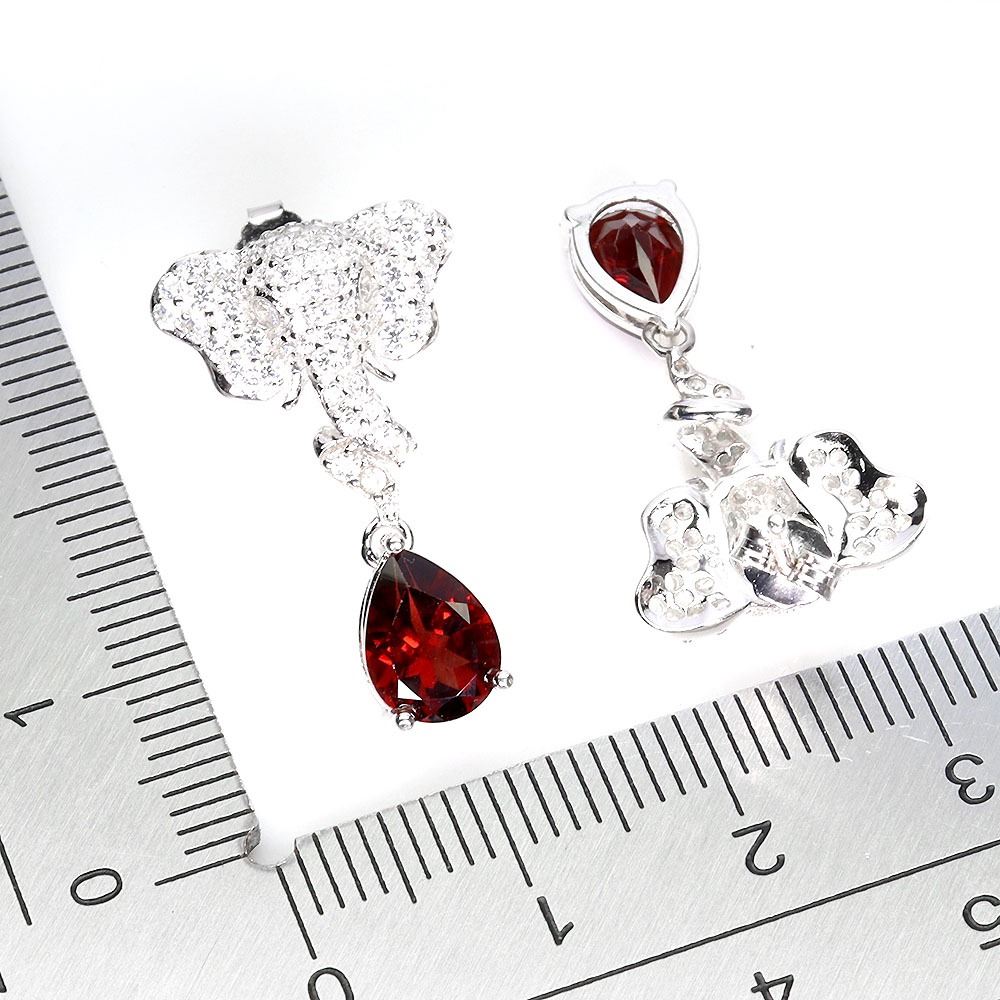 MOZAMBIQUE GARNET ELEPHANT SHAPED EARRINGS IN 14K WHITE GOLD PLATED OVER 925 STERLING SILVER - APPRAISED REPLACEMENT VALUE CAD 600