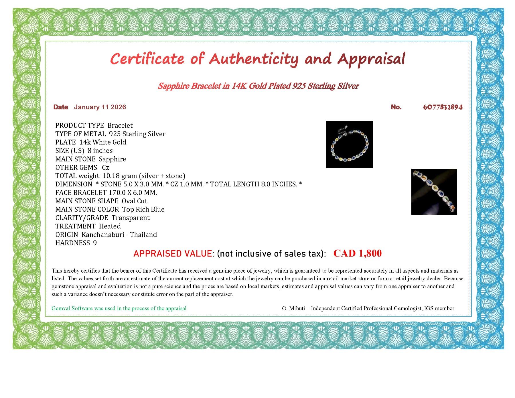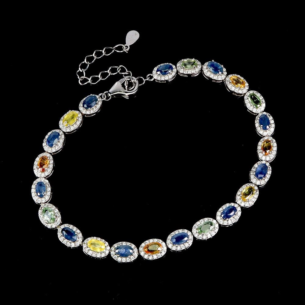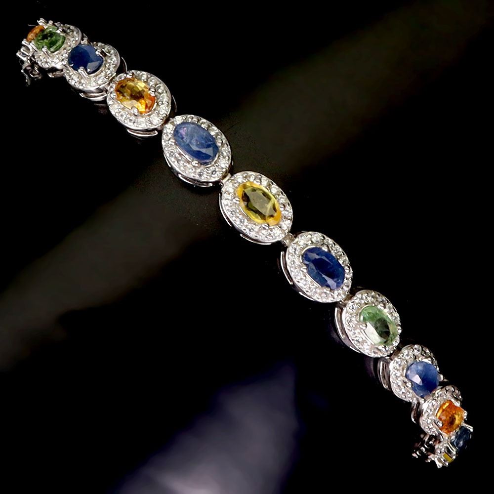 MULTI-COLOR OVAL SAPPHIRE BRACELET IN 14K WHITE GOLD PLATED OVER 925 STERLING SILVER - 8 INCHES LENGTH - APPRAISED REPLACEMENT VALUE CAD 1,800