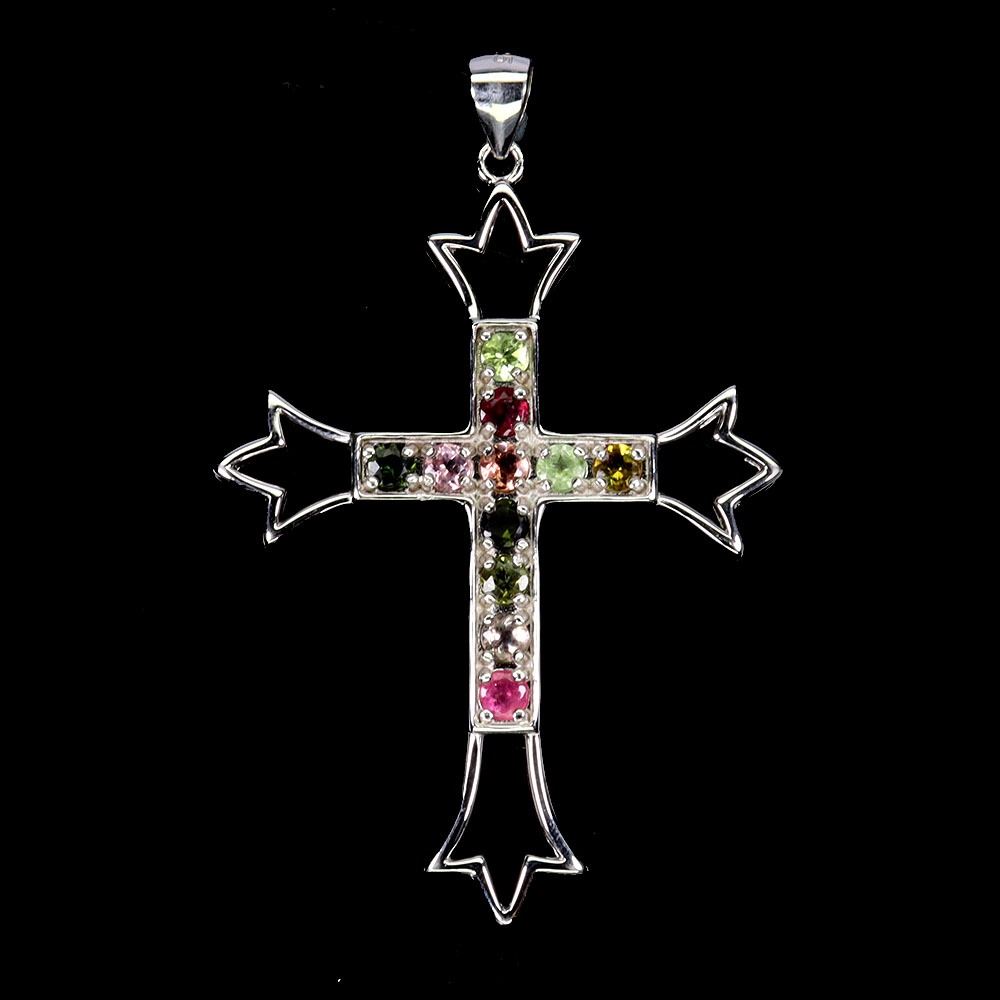 MULTI-COLORED TOURMALINE CROSS SHAPPED PENDANT IN 14K YELLOW PLATED GOLD OVER 925 STERLING SILVER - APPRAISED REPLACEMENT VALUE CAD 720