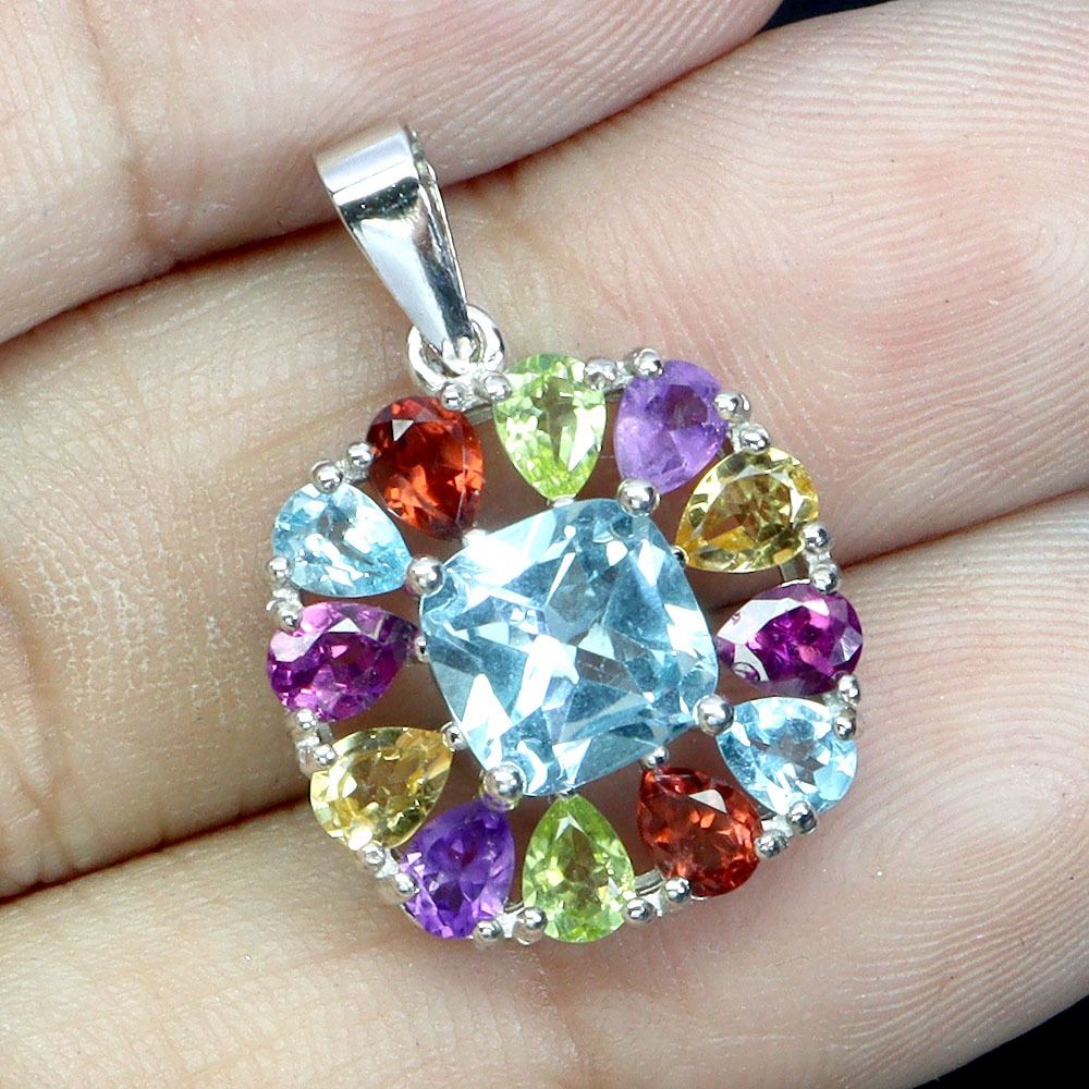 MULTI GEMSTONES: AMETHYST, CITRINE, MOZAMBIQUE GARNET, RHODOLITE GARNET AND PERIDOT PENDANT IN 14K WHITE PLATED GOLD OVER 925 STERLING SILVER - APPRAISED REPLACEMENT VALUE CAD 340