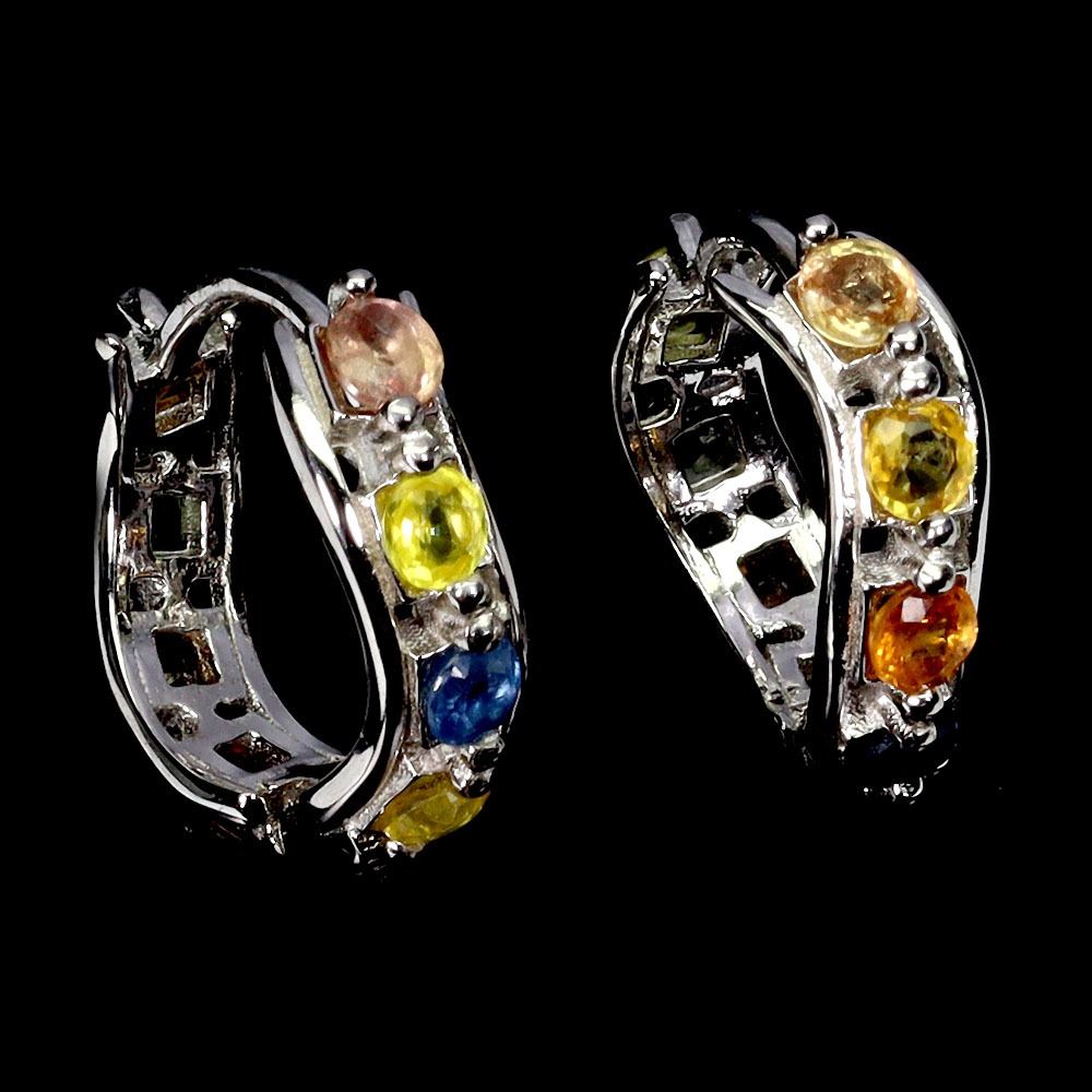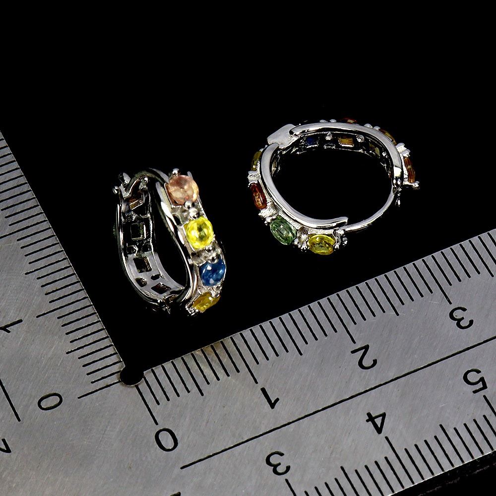 MULTICOLOR SAPPHIRES EARRINGS IN 14K WHITE PLATED GOLD OVER 925 STERLING SILVER - APPRAISED REPLACEMENT VALUE CAD 630