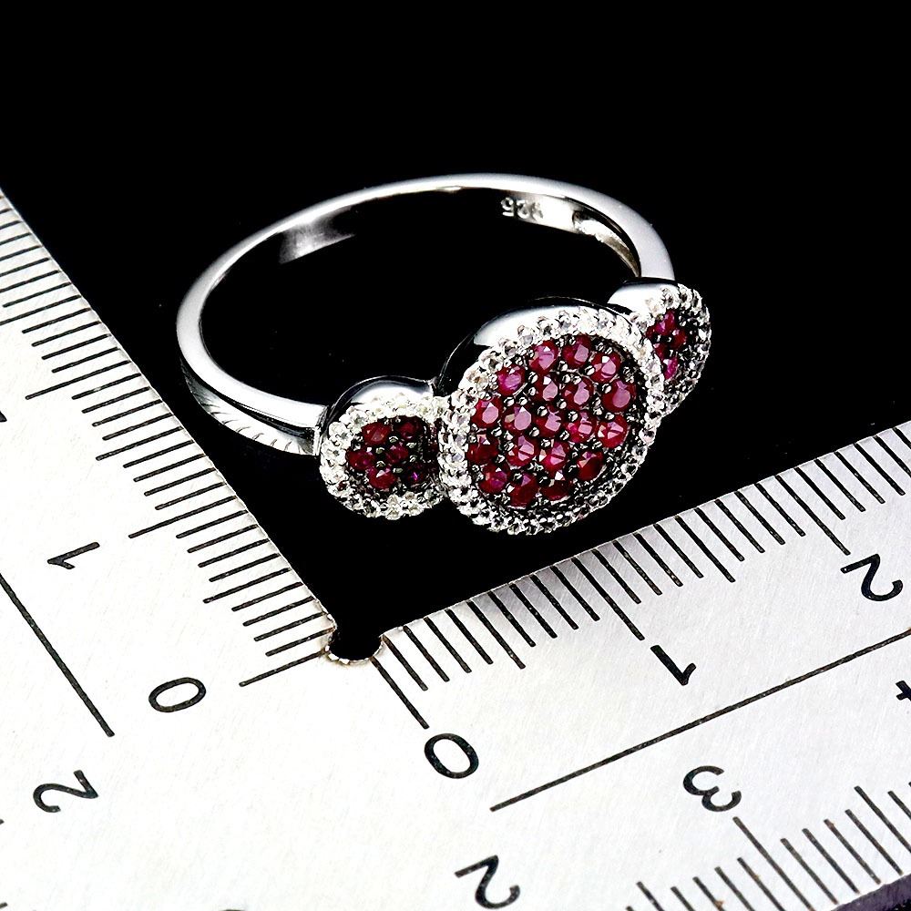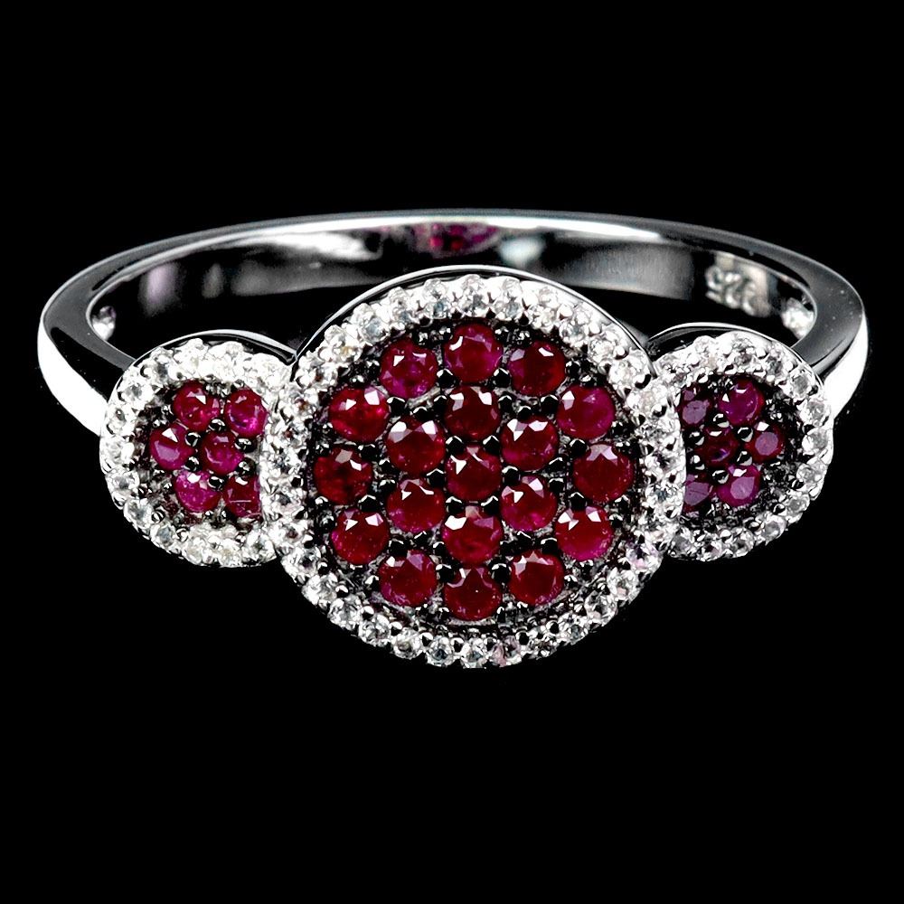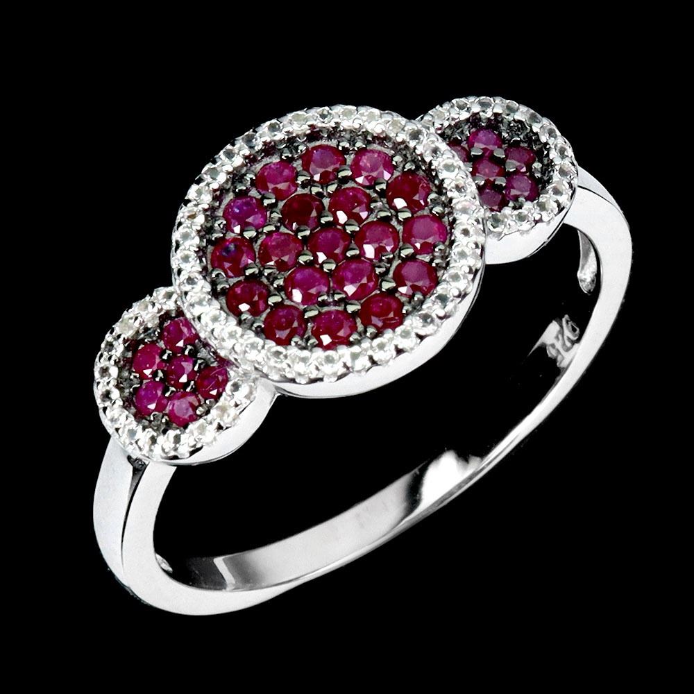 MYANMAR RUBY DIAMOND CUT AND WHITE TOPAZ RING IN 2-TONE BLACK RHODIUM AND 14K WHITE GOLD PLATED OVER 925 STERLING SILVER - SIZE 7 - APPRAISED REPLACEMENT VALUE CAD 1,660