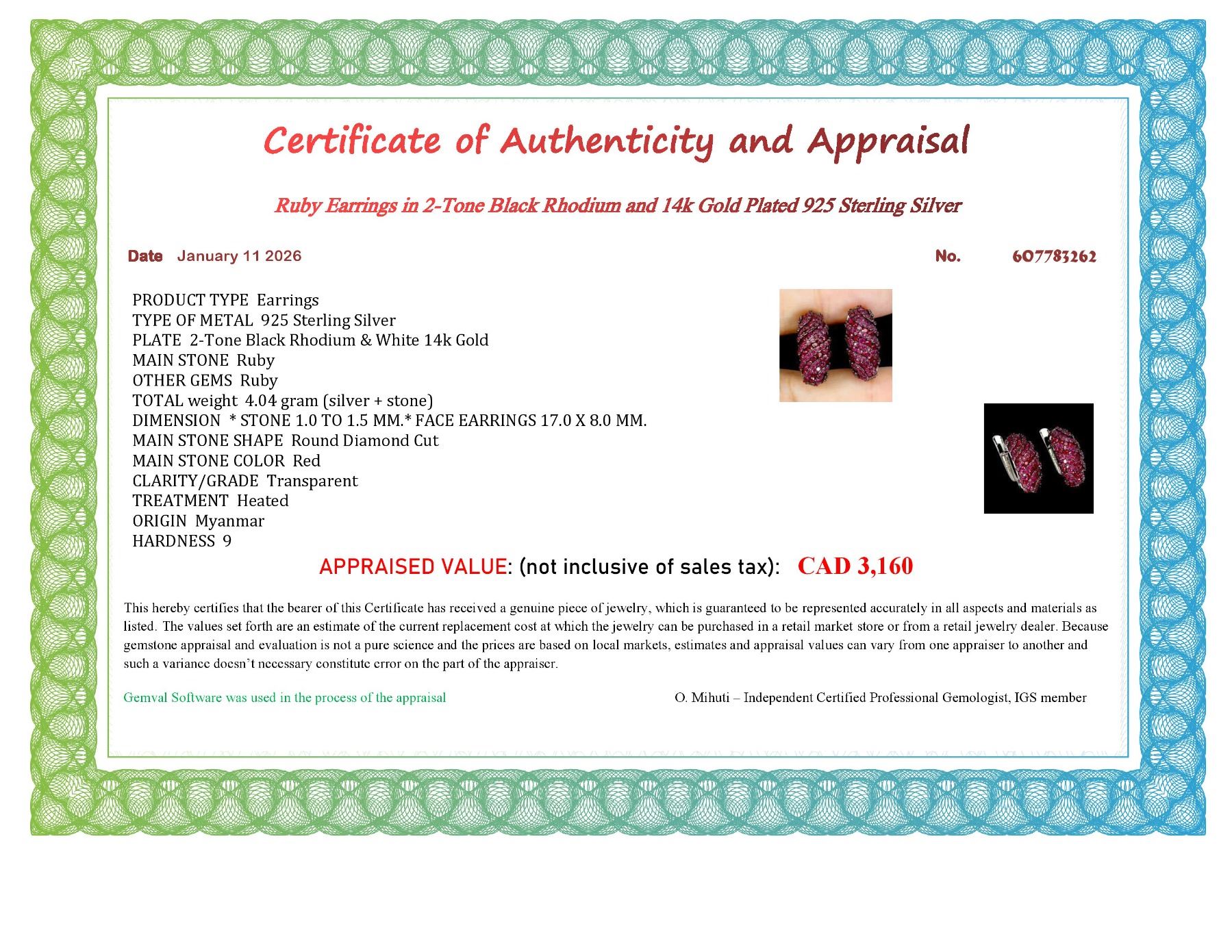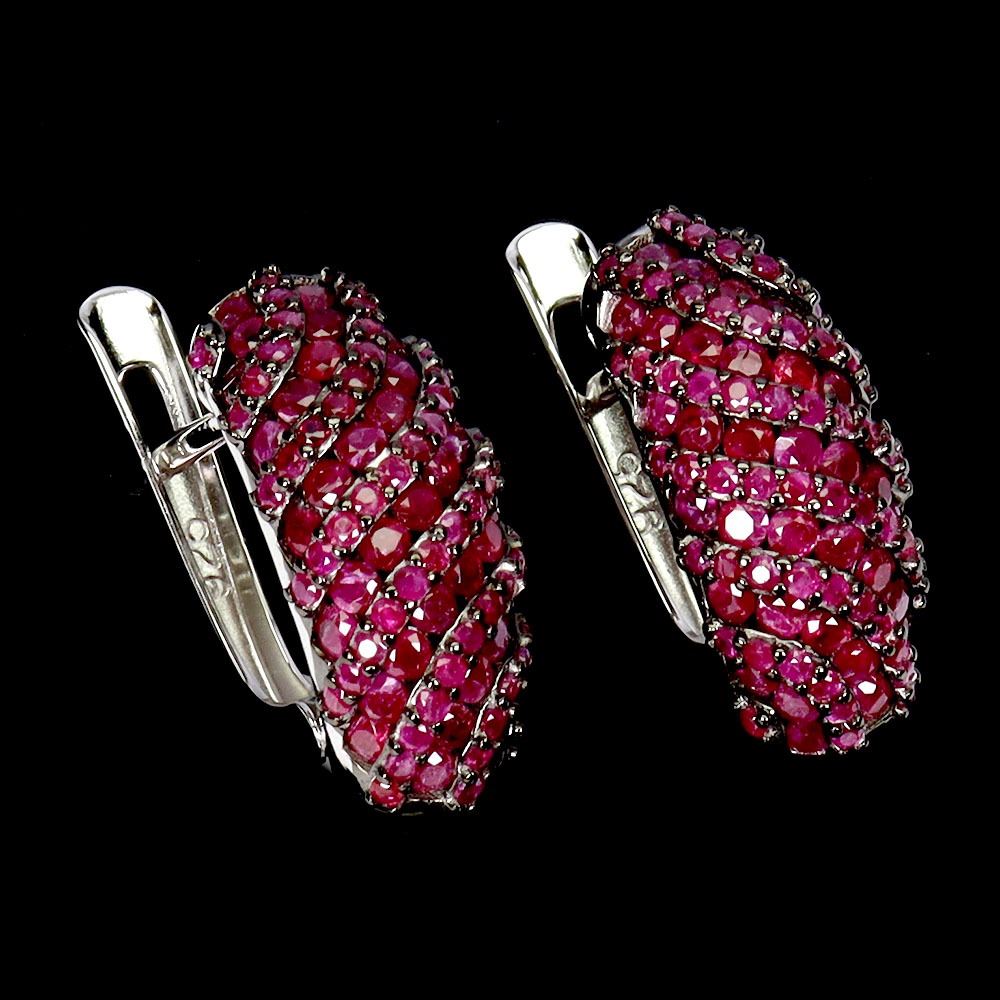 MYANMAR RUBY DIAMOND CUT EARRINGS IN 2-TONE BLACK RHODIUM AND 14K WHITE PLATED GOLD OVER 925 STERLING SILVER - APPRAISED REPLACEMENT VALUE CAD $ 3,160 RUBIES FROM MYANMAR (BURMA) ARE THE MOST VALUABLE RUBIES IN THE WORLD