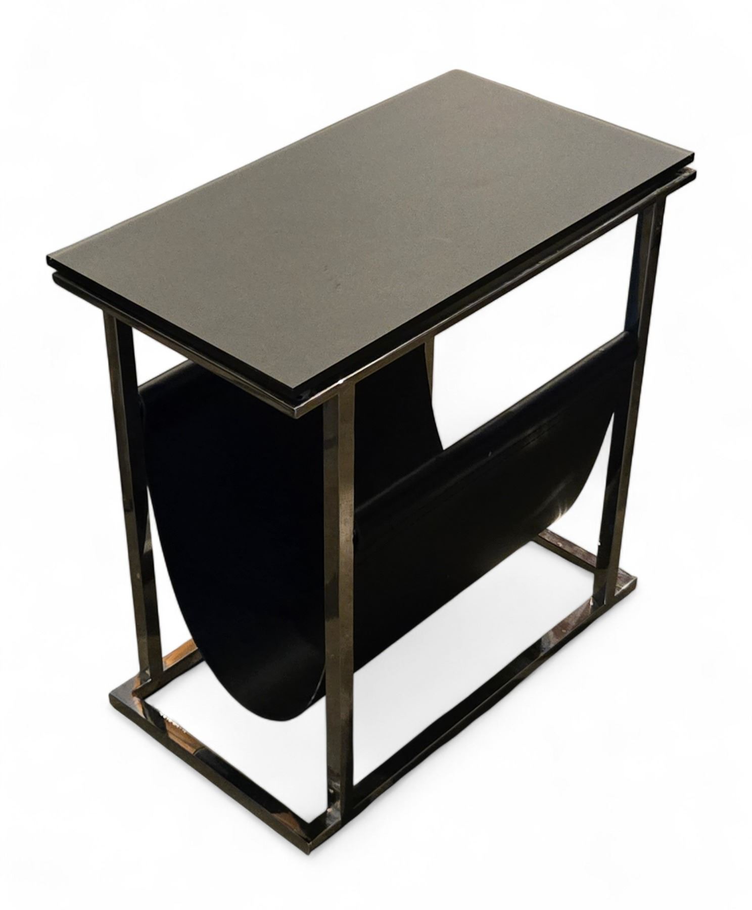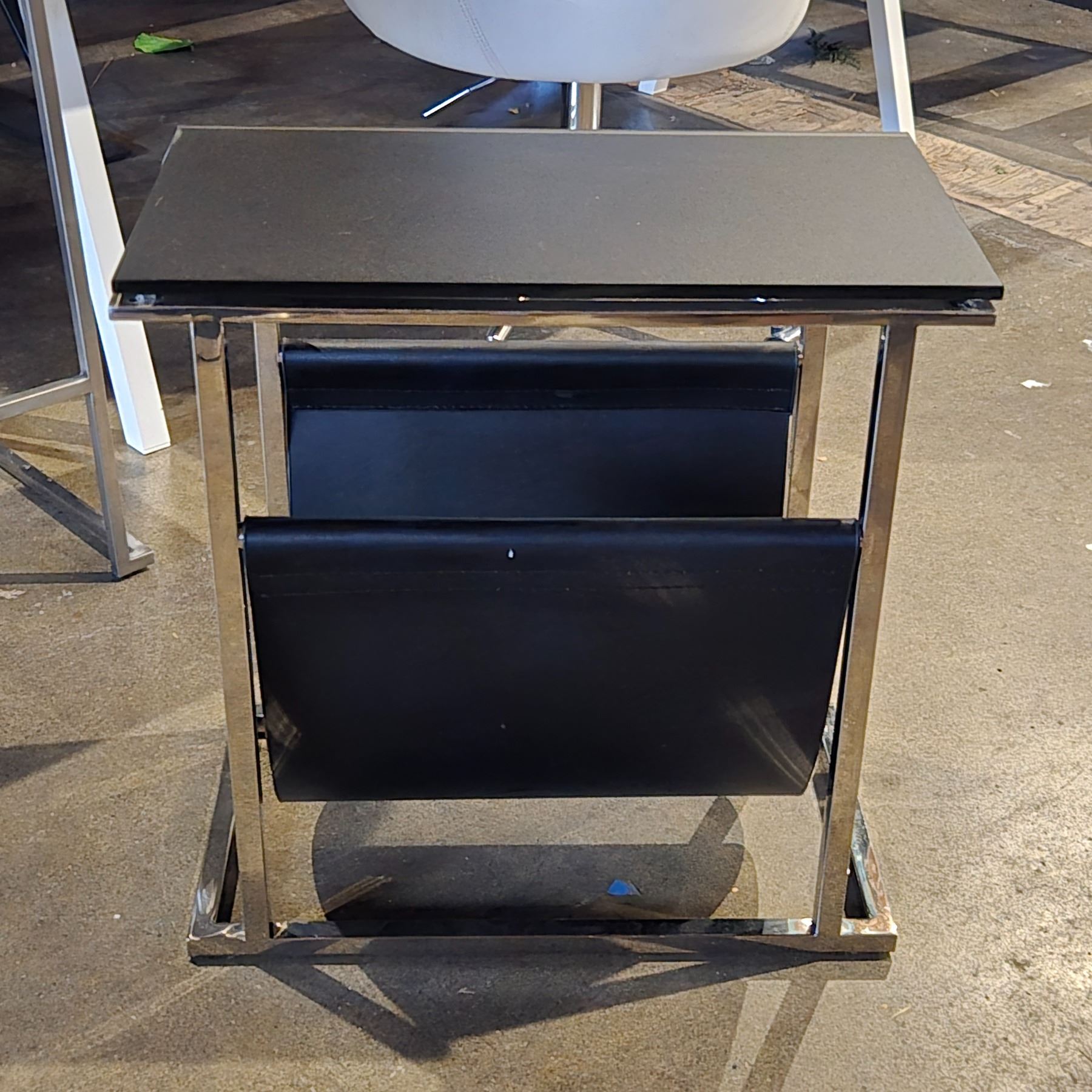 Magazine Rack / Side Table w/ Black Top & Chrome Legs