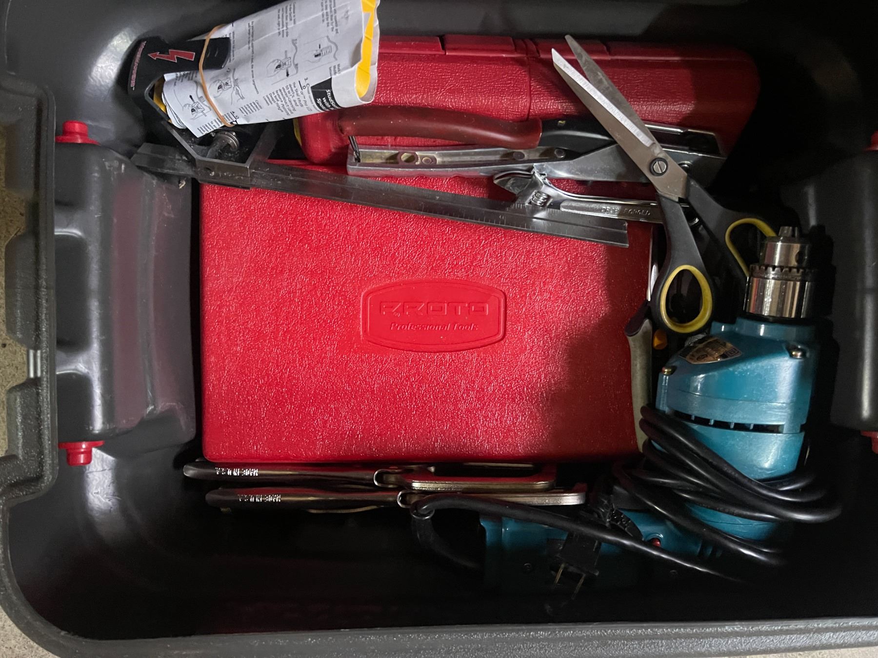 Makita 10mm Corded Drill and Group of Vise-Grips & Hand Tools w/ Hard Case