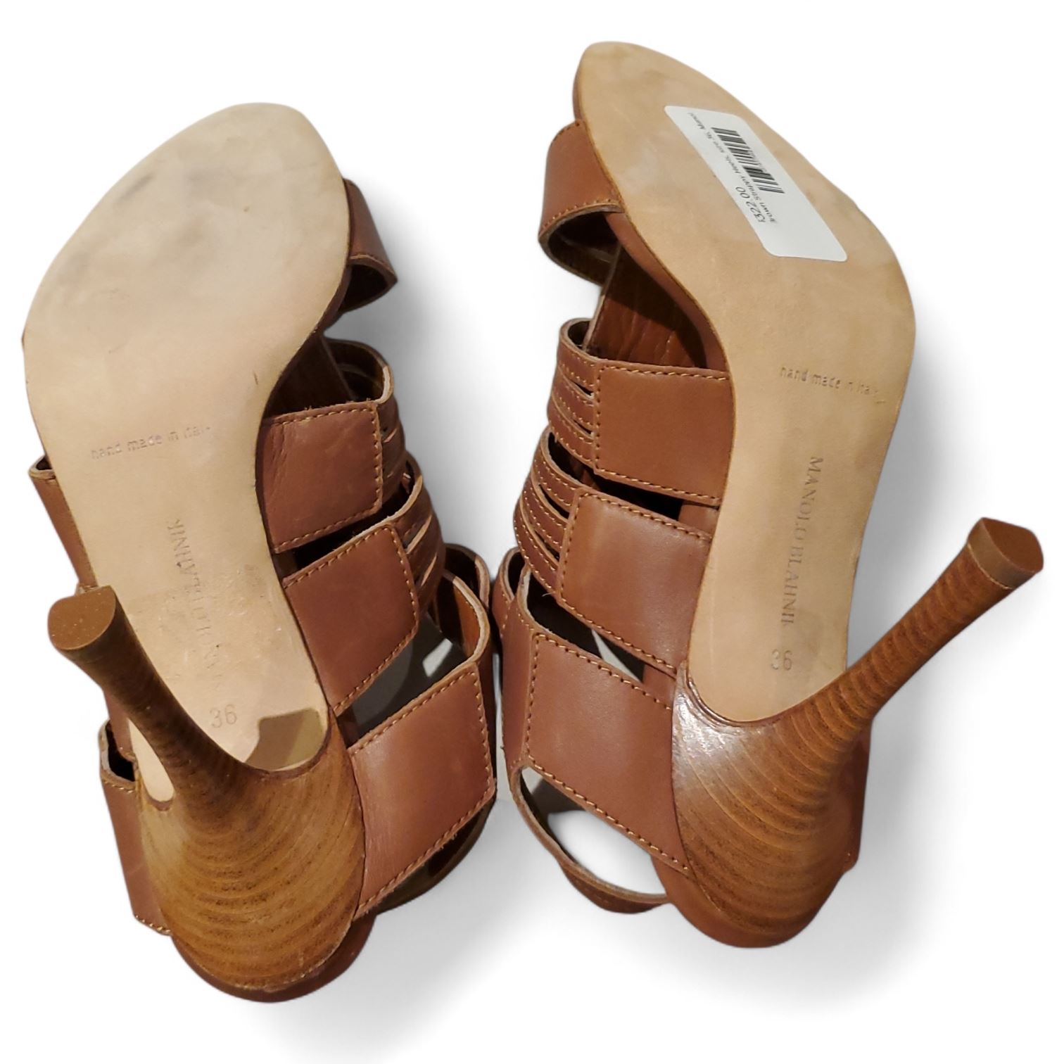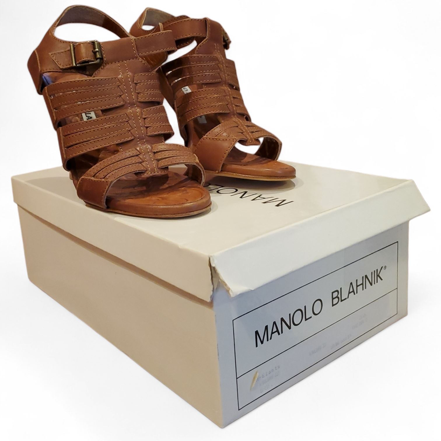 Manolo Blahnik Amber Cognac Sandals, Size 6 - w/ Dust Bag & Box (used condition - no COA)