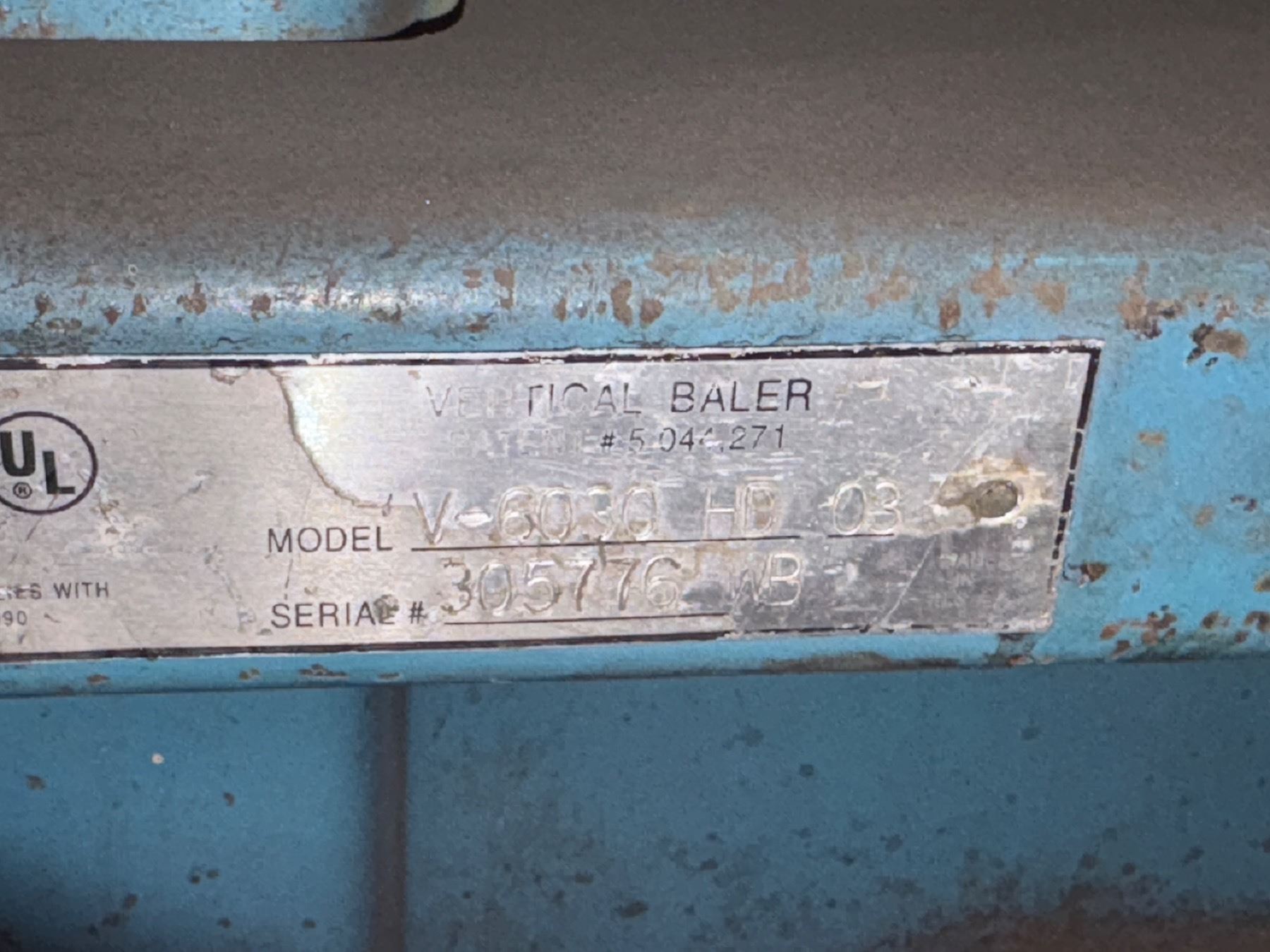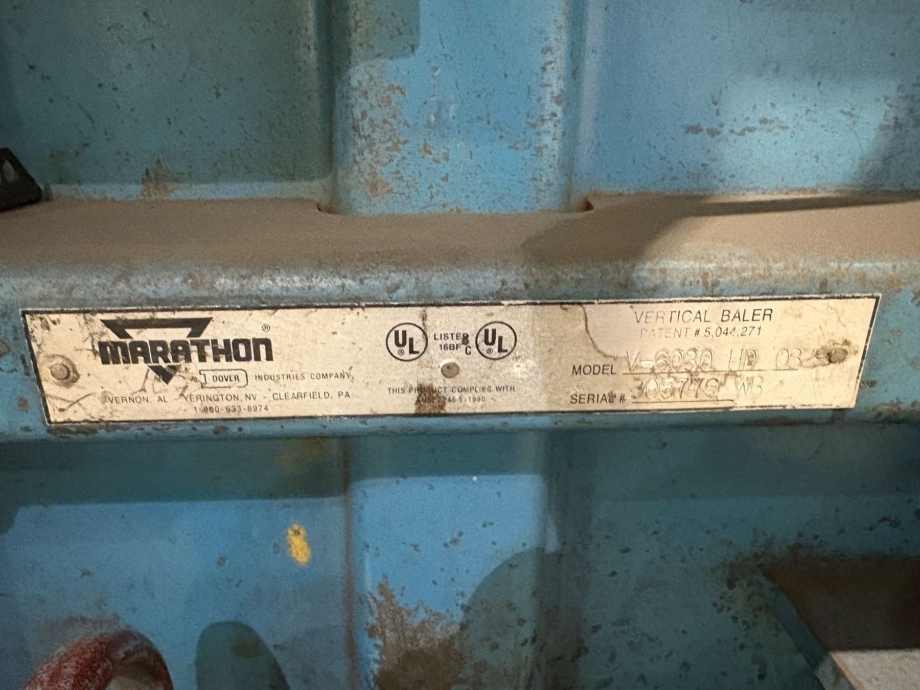 Marathon Commercial Vertical Cardboard Baler V-6030 HD 03 - Working Condition (bidder must arrange electrical disconnection and removal)