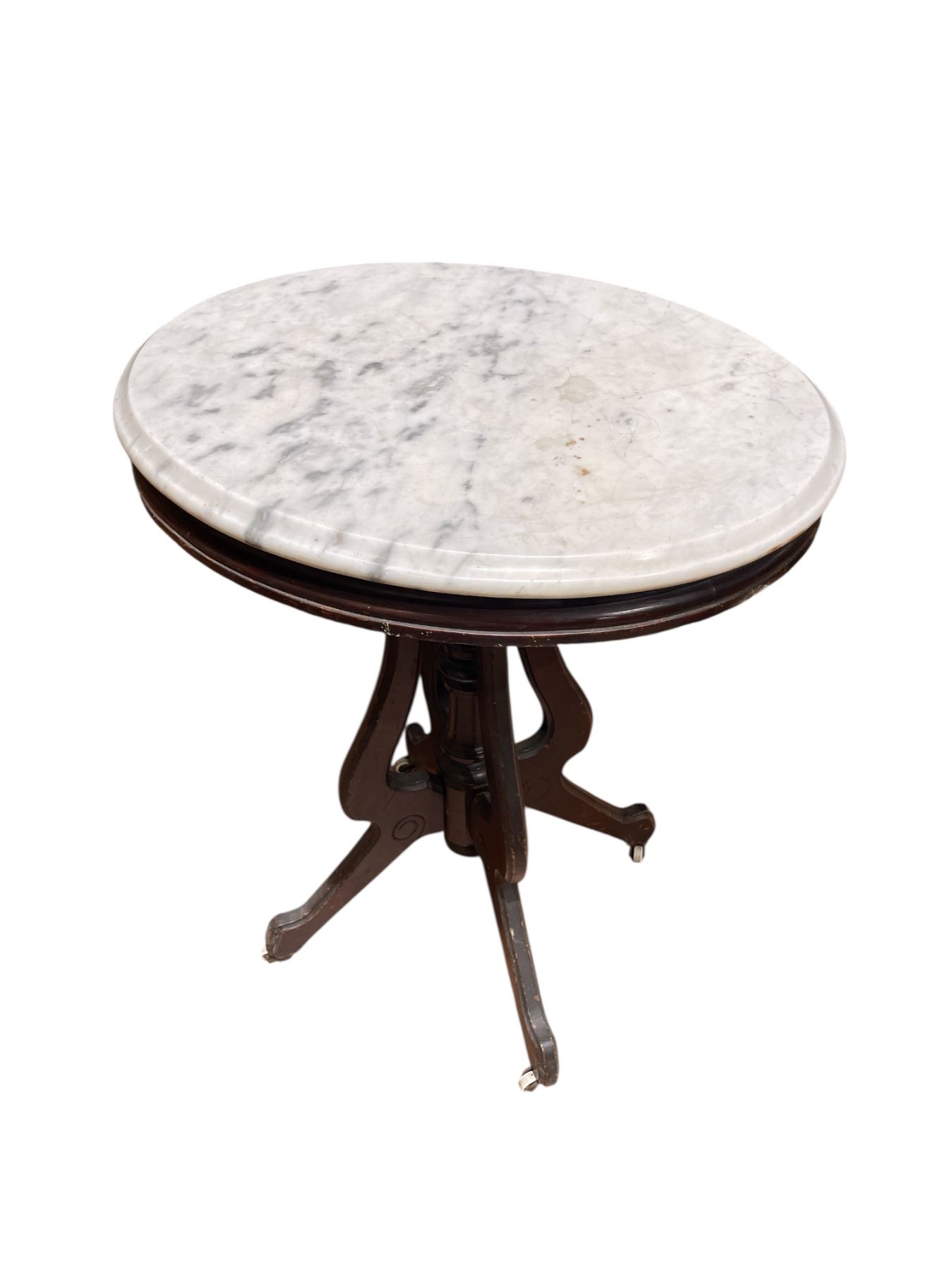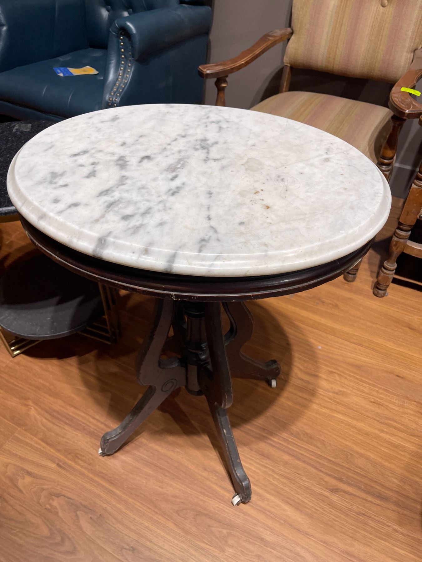 Marble Topped Accent Table on Casters * Wood Frame (19" x 24" x 29" tall)