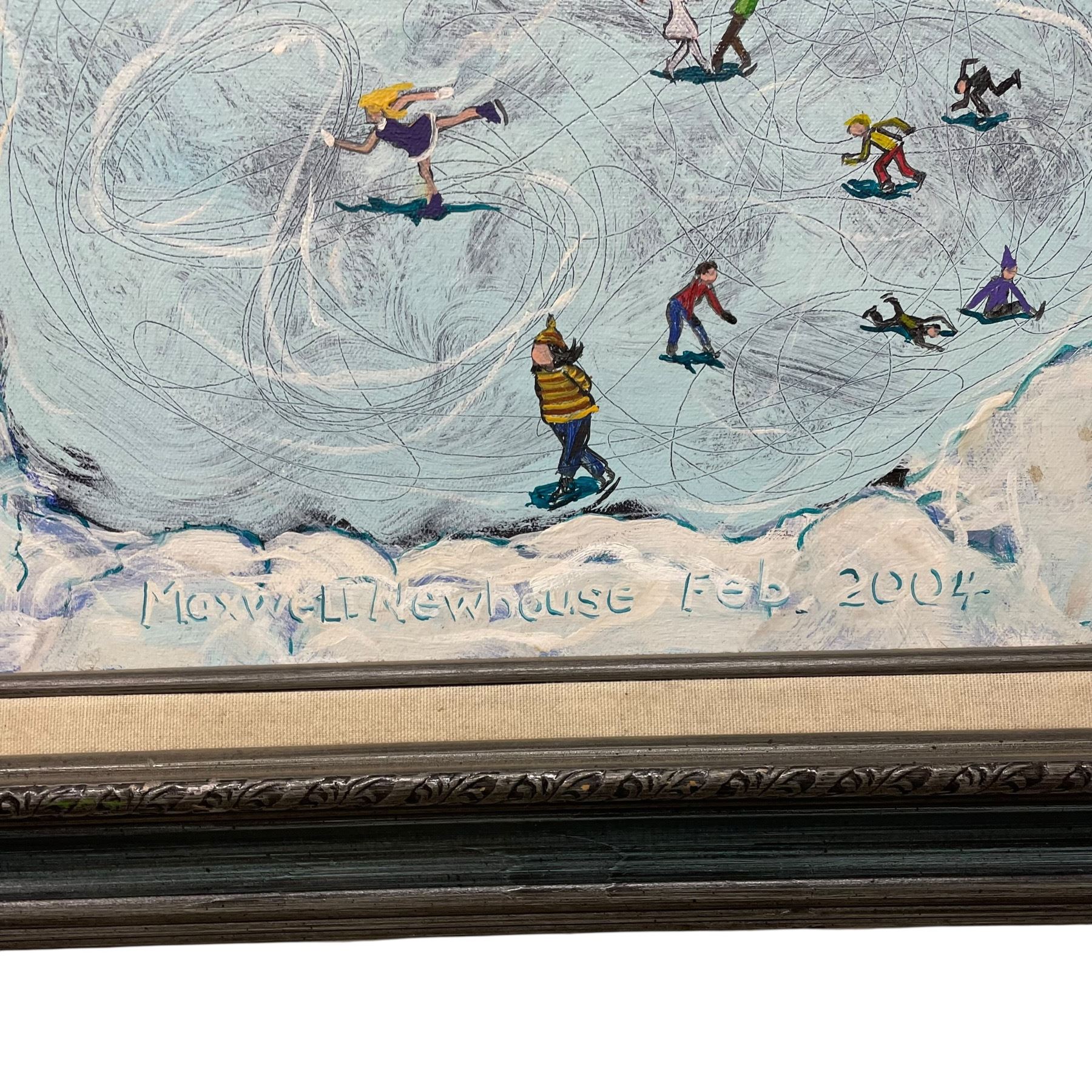 Maxwell Newhouse 2004 "Bob Cat, Warm Fire and Hockey" Original Painting Signed