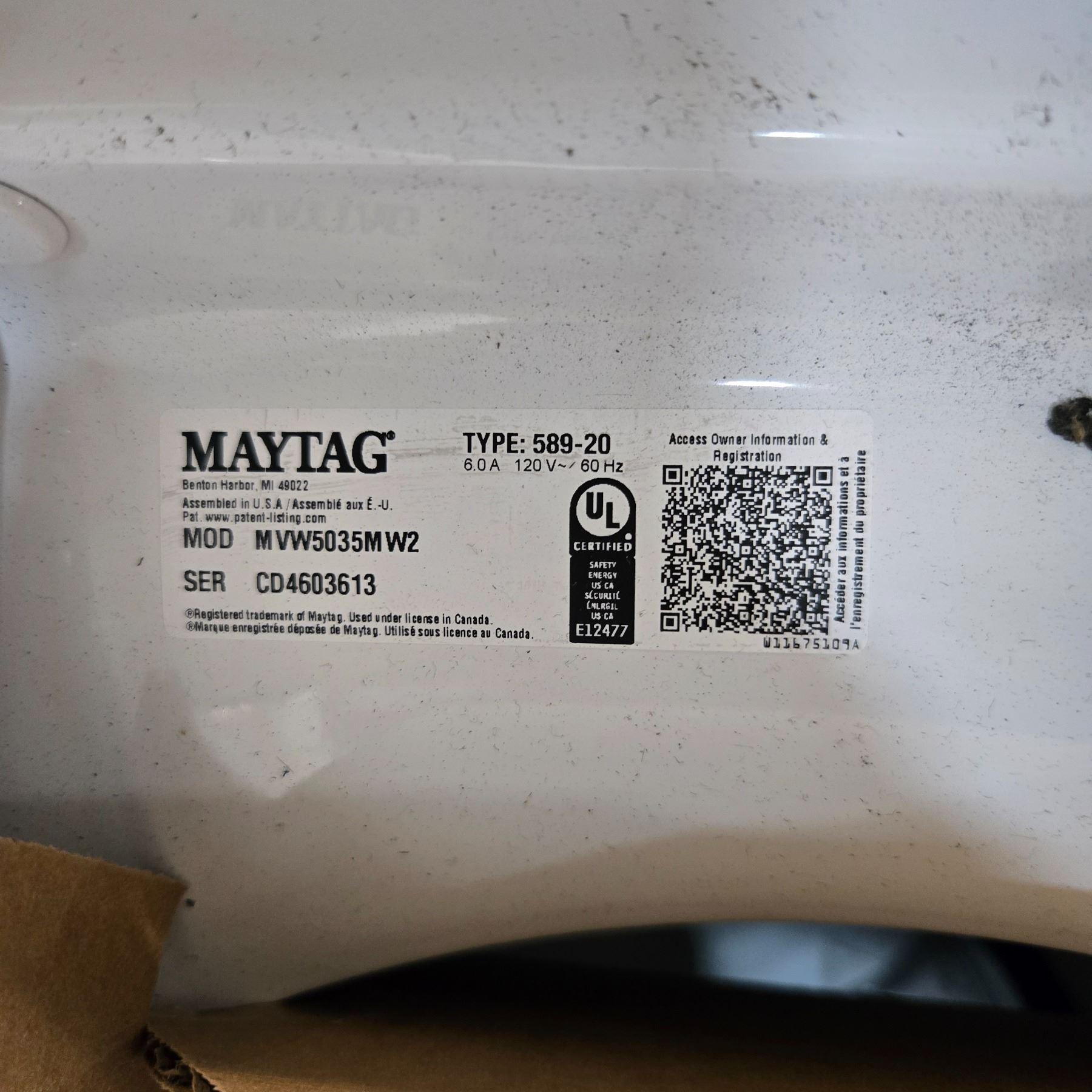 Maytag Top Load 5.2 Cu. Washer 11 Wash Cycles - Retail Value $1,049.99 (Model White MVW5035MW)
