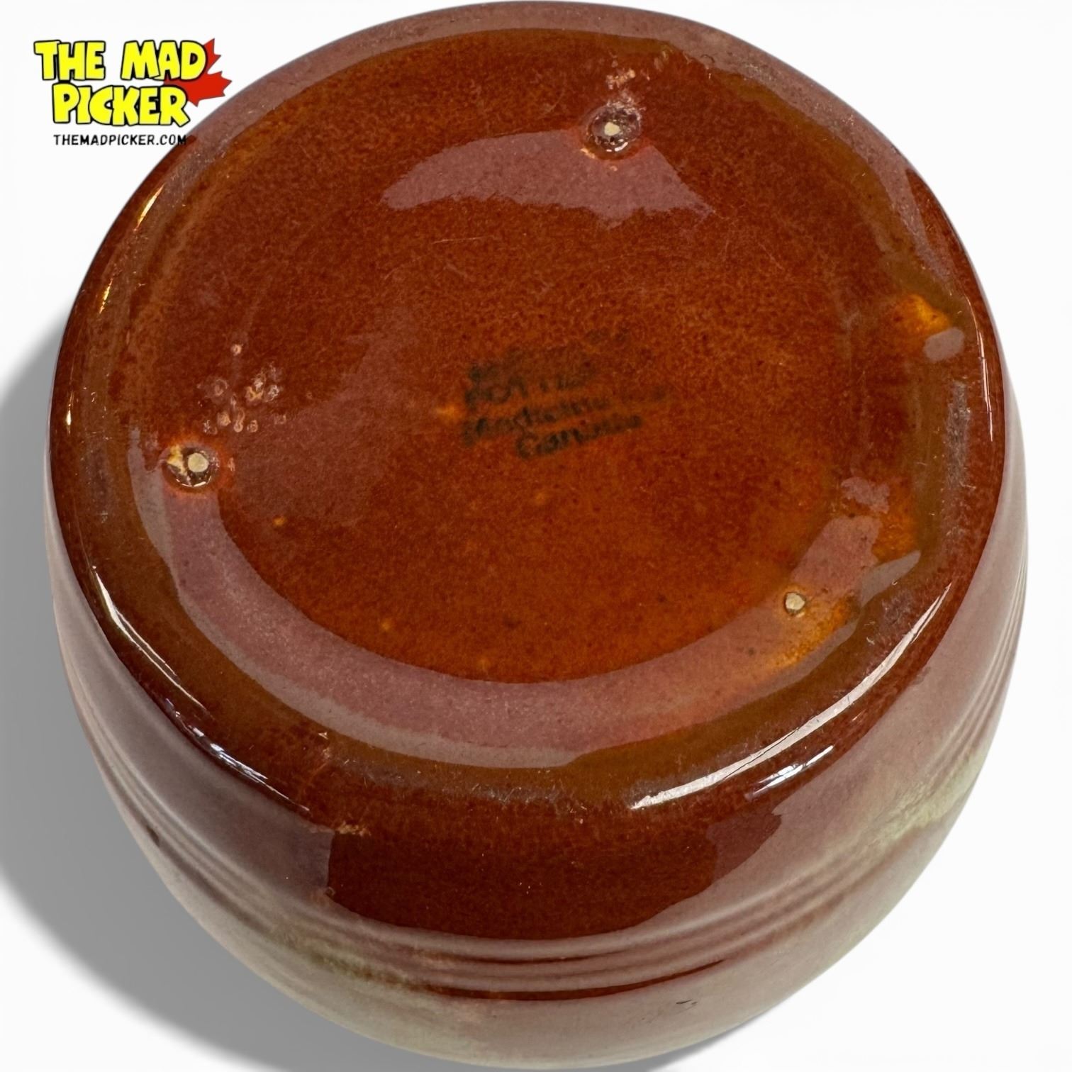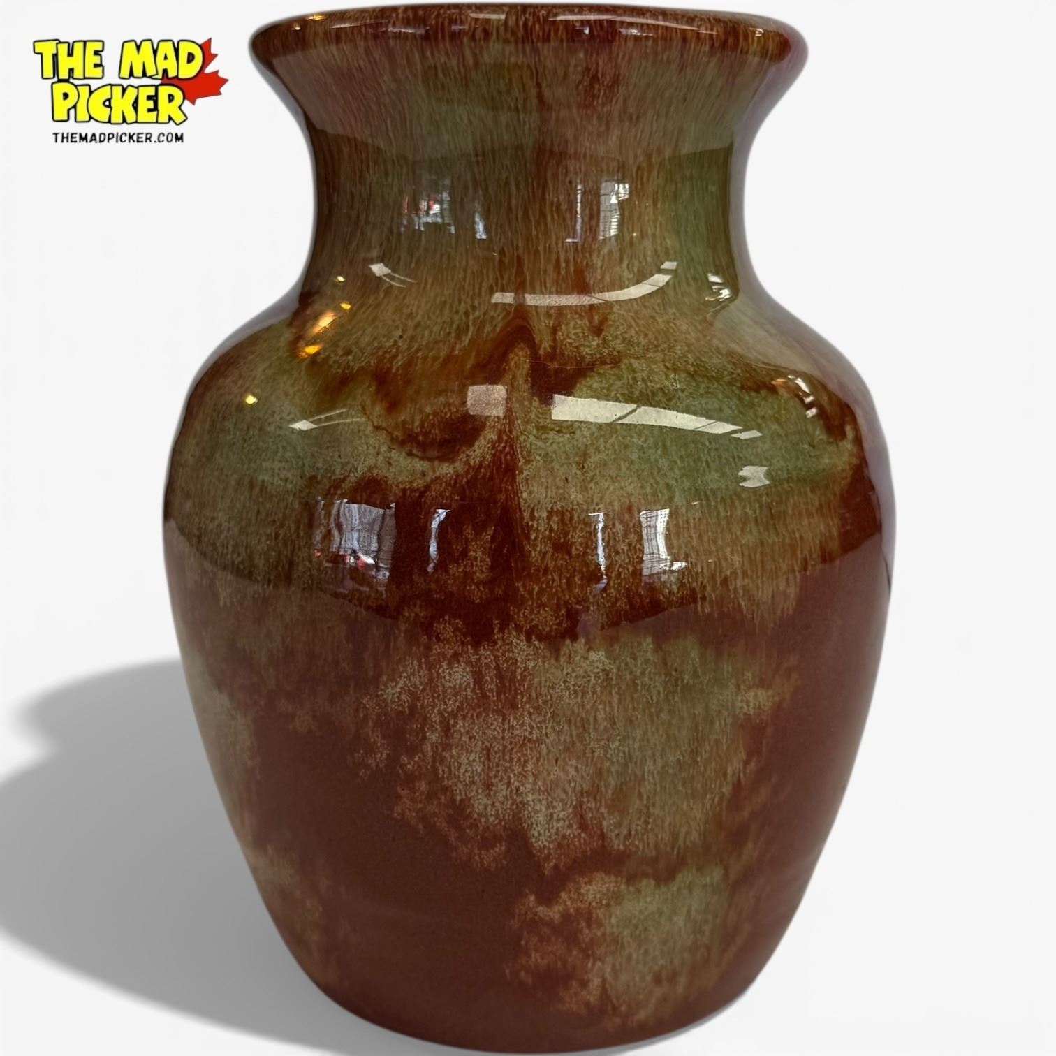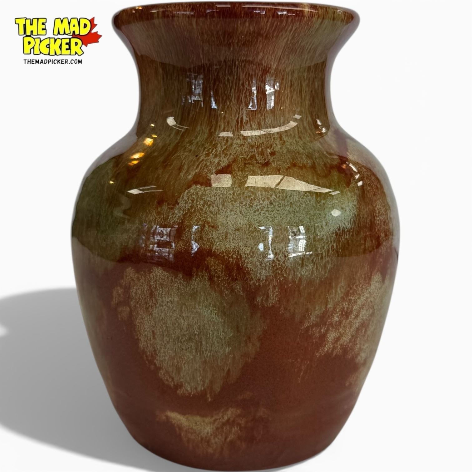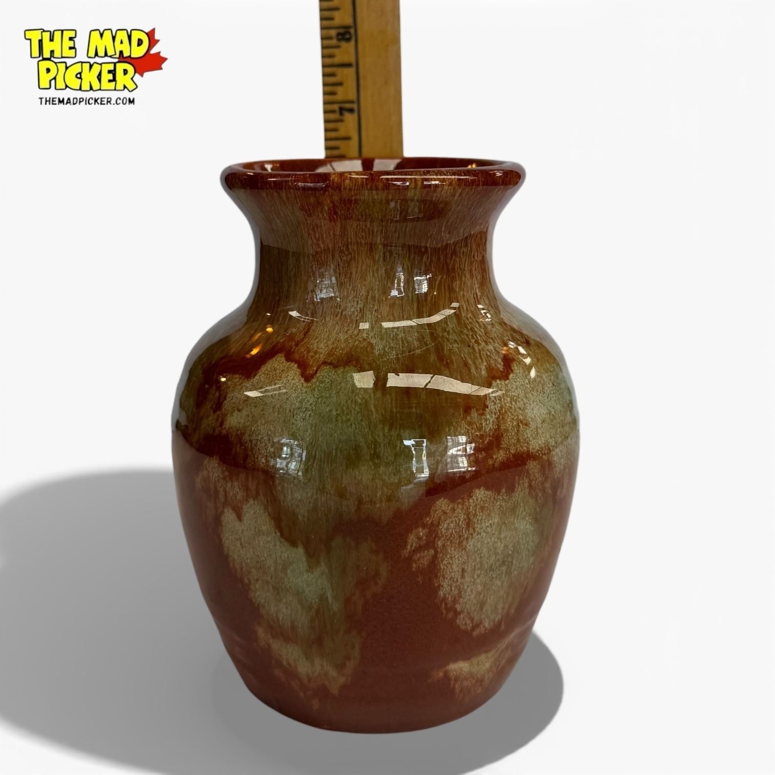 Medalta ceramic vase, 6 inches tall, featuring a distinctive mottled glaze. Manufactured in Medicine Hat, Alberta, Canada during the mid-20th century. Known for its Canadian stoneware and art pottery.