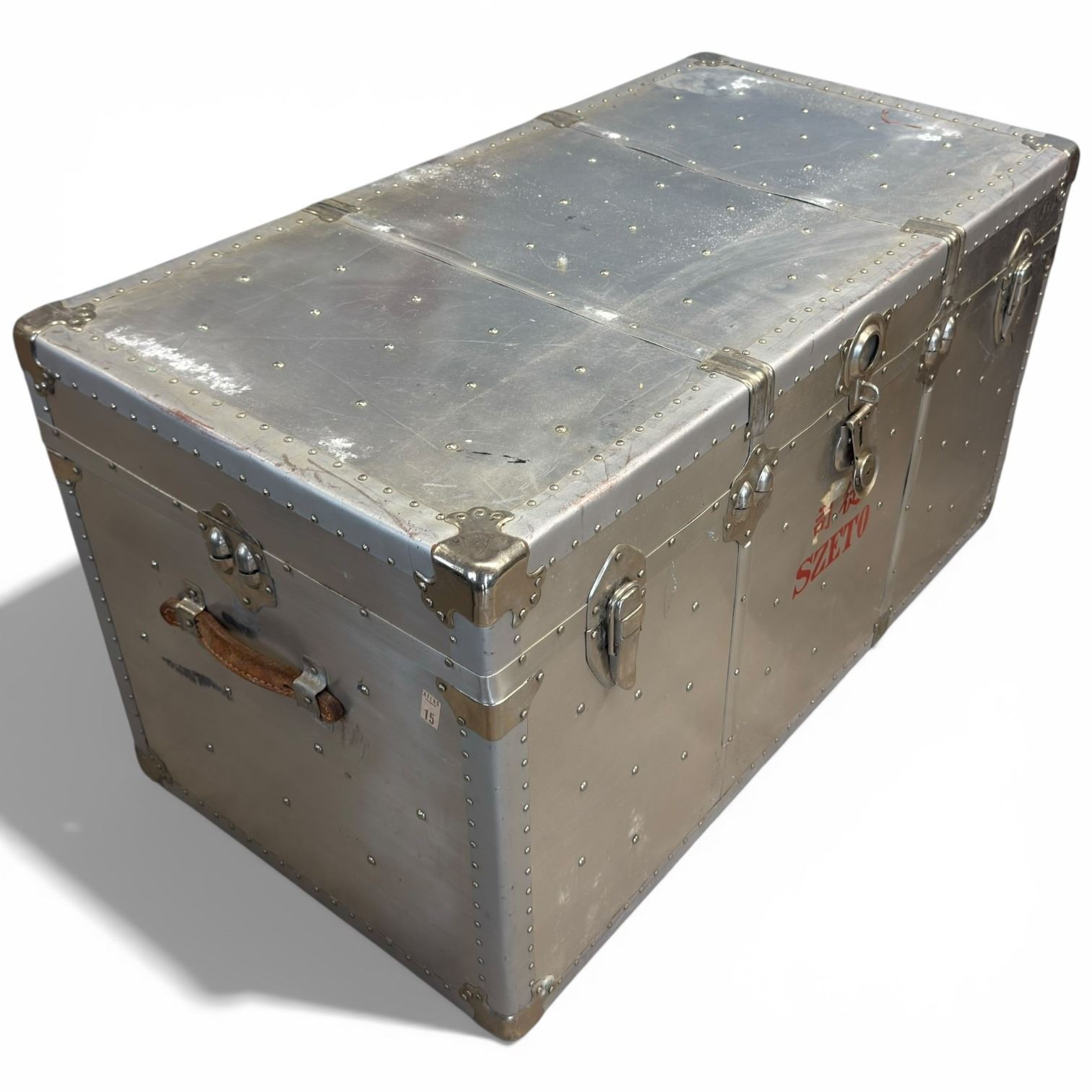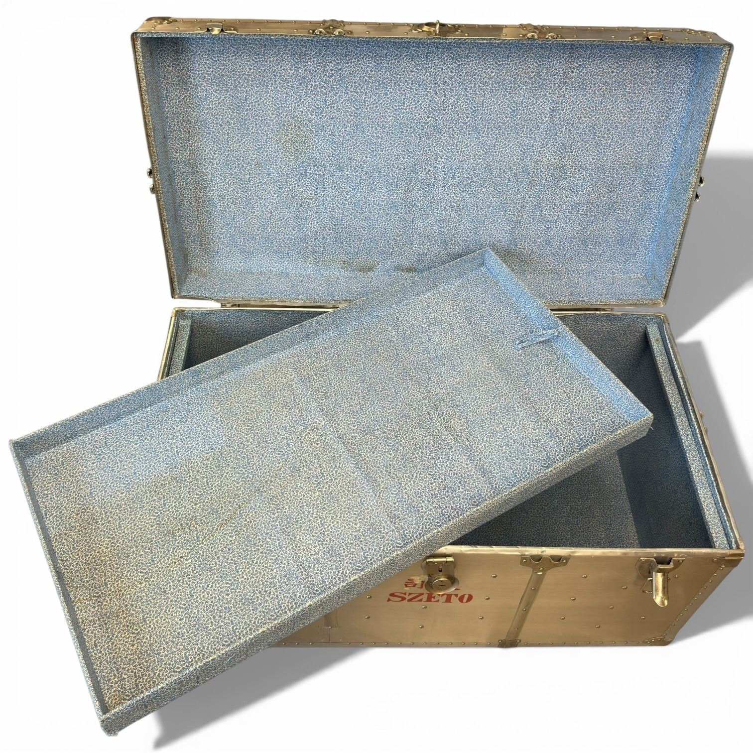 Metal Storage Trunk with Interior Tray - Stamped SZETO on the front (21" x 40" x 22" tall)