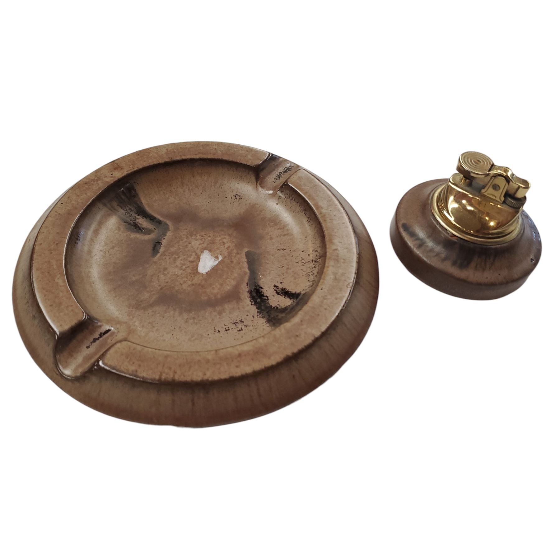 Mid-Century Blue Mountain Pottery Table Lighter & Matching Ashtray Set