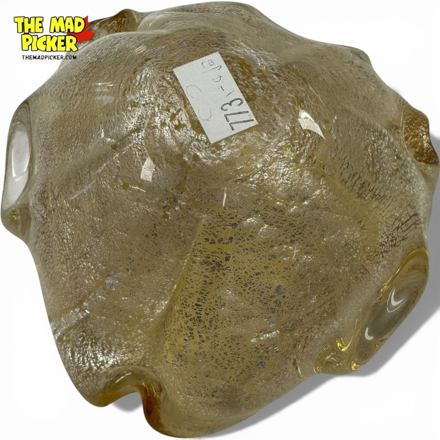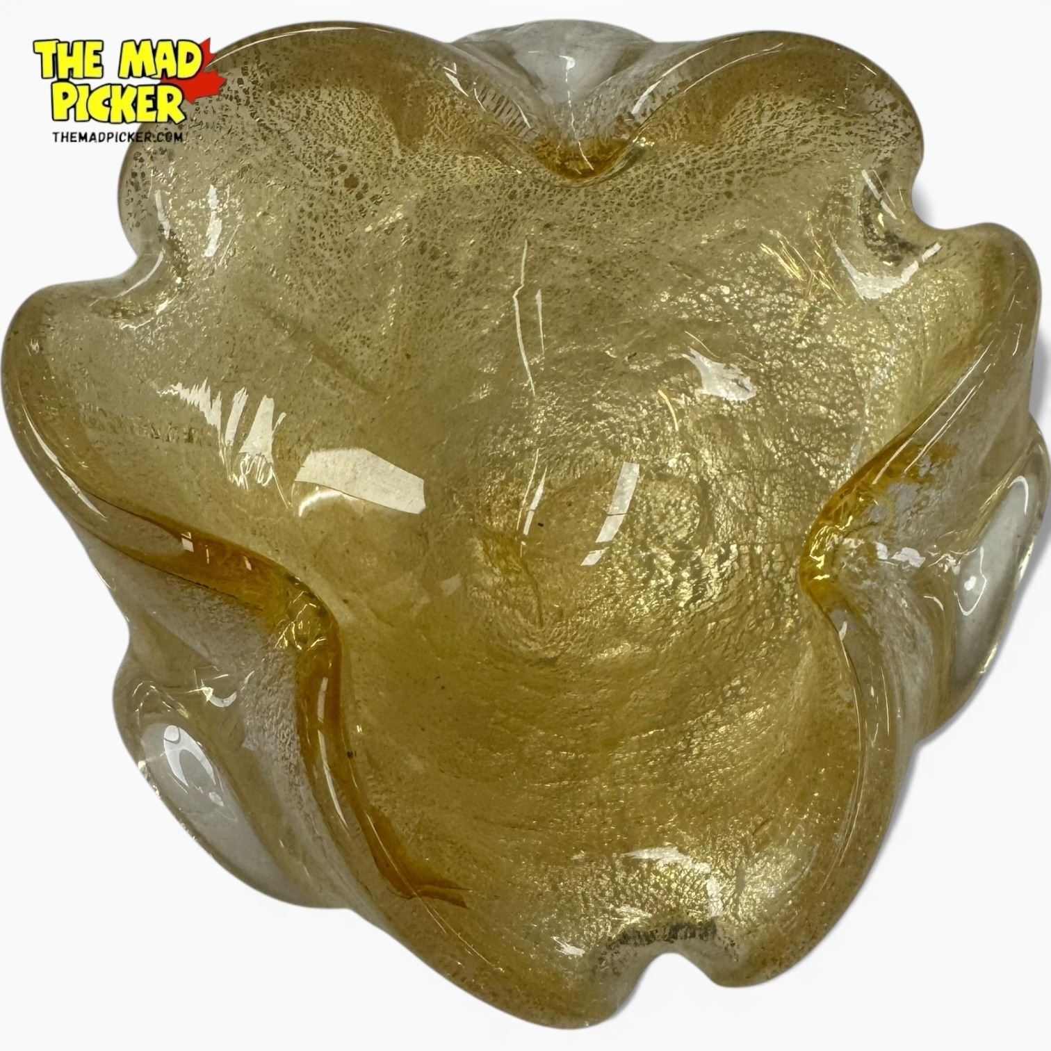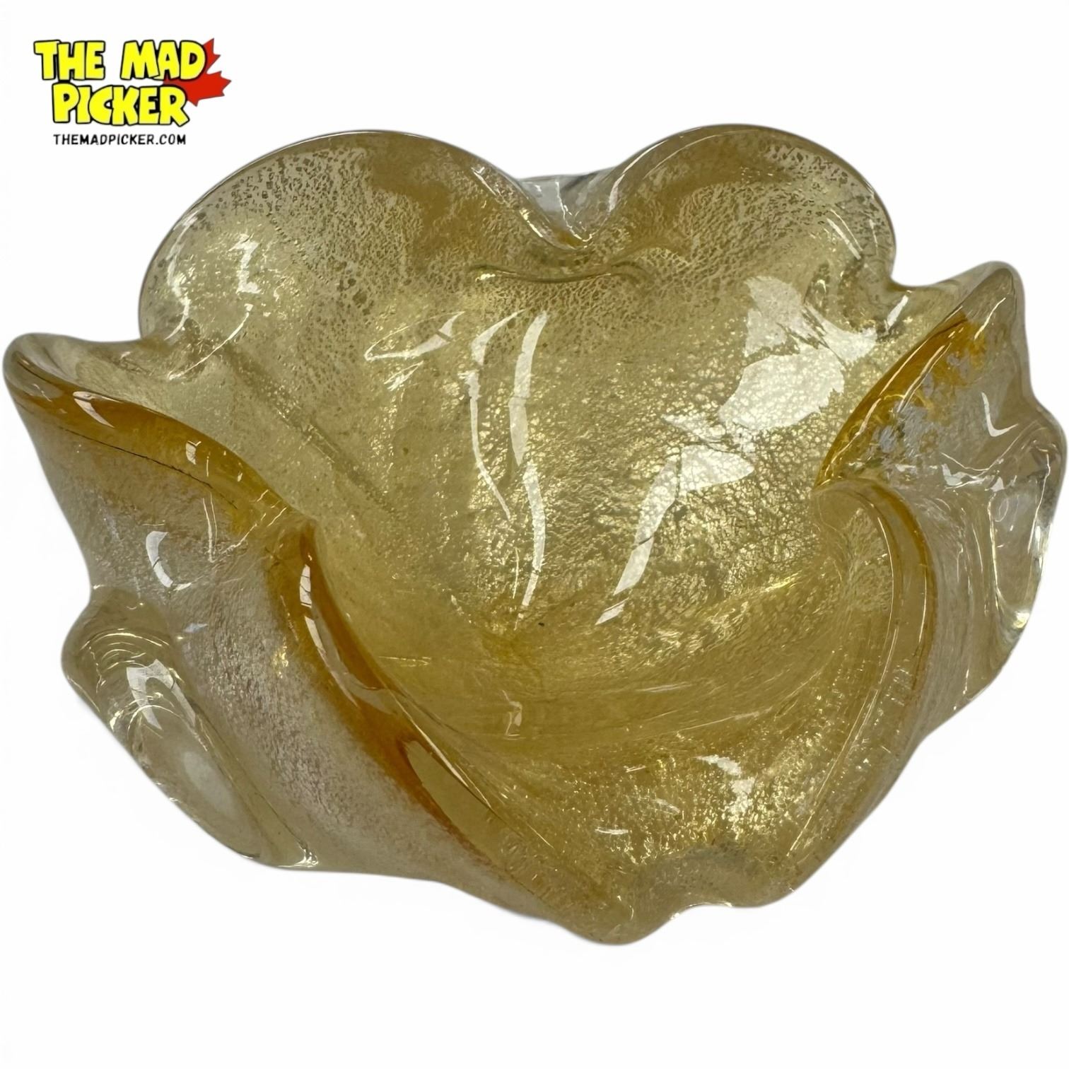 Mid-Century Gold Fleck Murano Glass Ashtray - 2.5" deep x 5" diameter