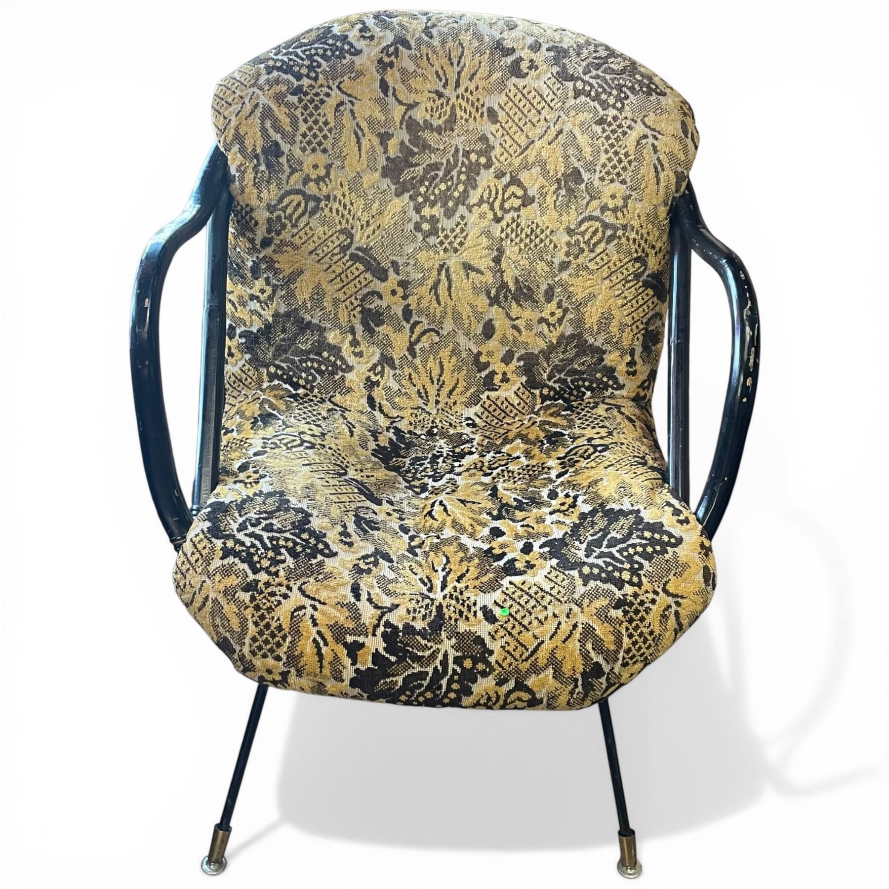 Mid-Century Metal Accent Chair with Gold and Black Upholstery