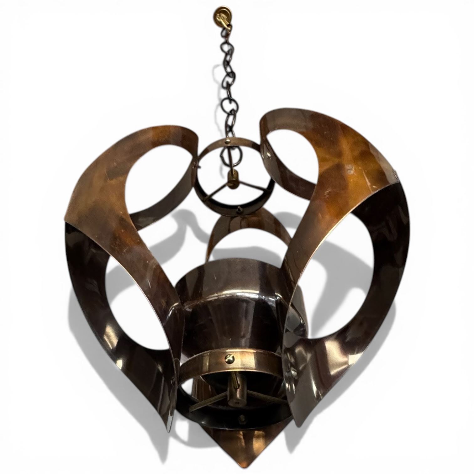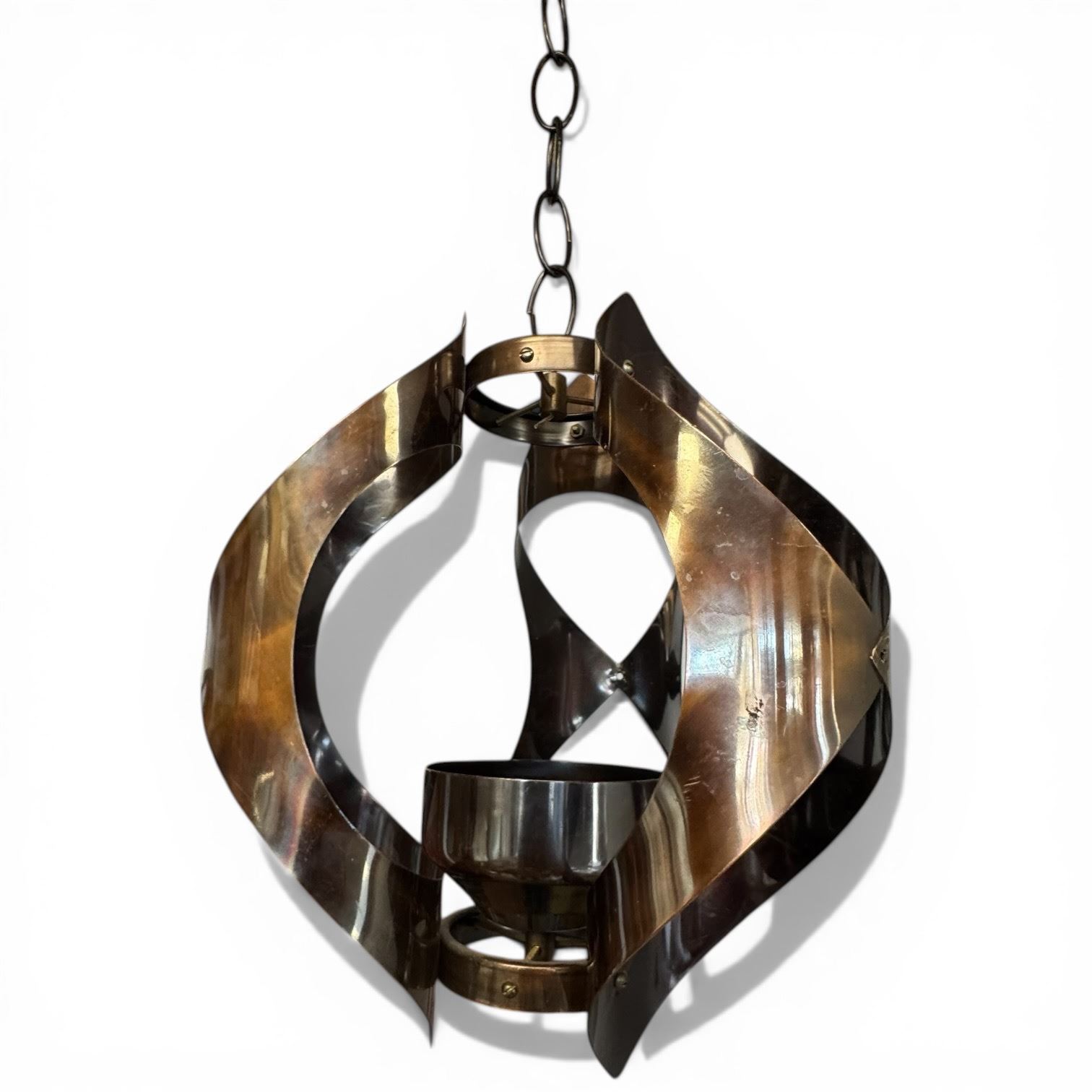 Mid-Century Modern Patinated Brass Hanging Candle Holder with Chain (12" tall x 9" diameter)