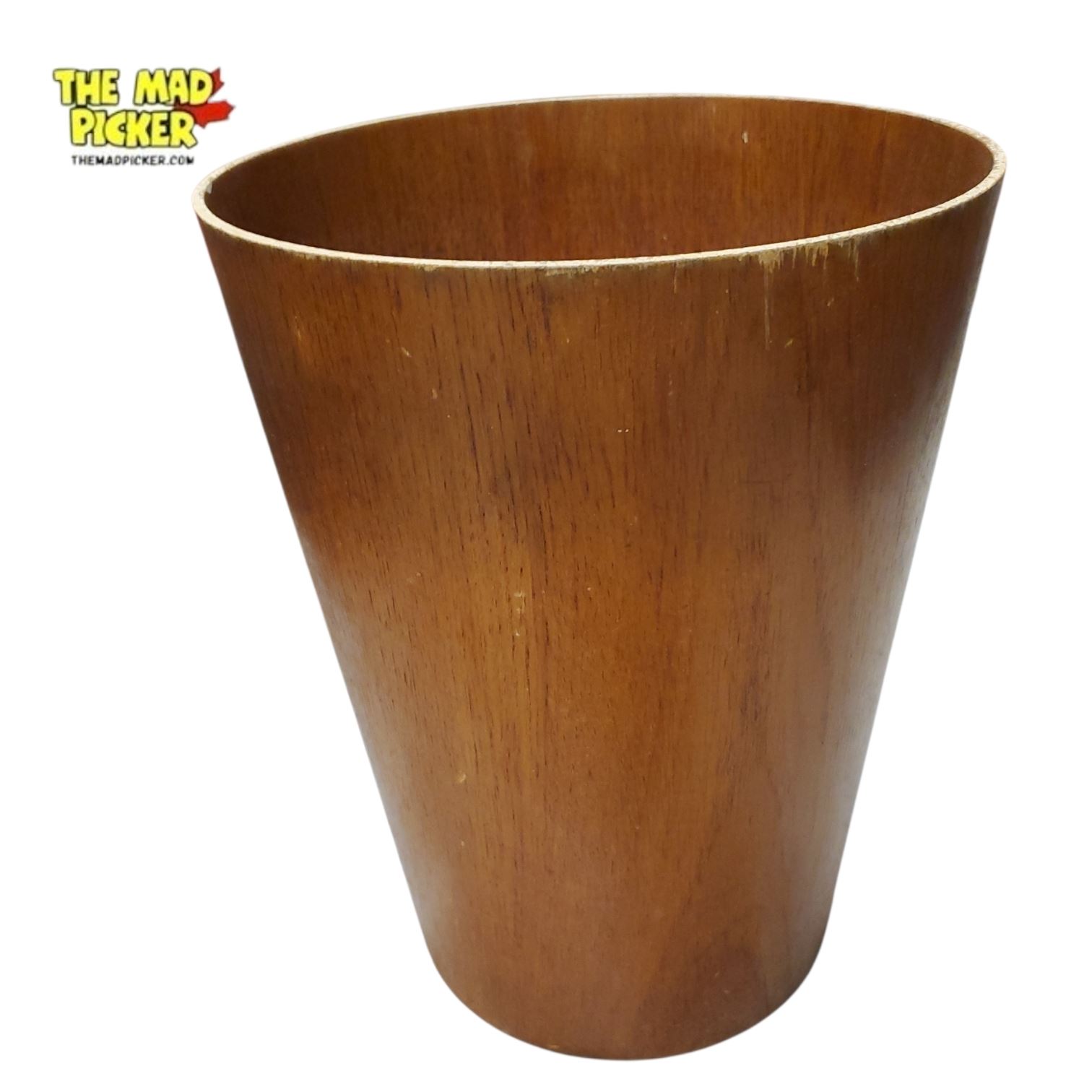 Mid-Century Modern Teak Waste Paper Bin - 13in Tall Made in Sweden Wood Construction
