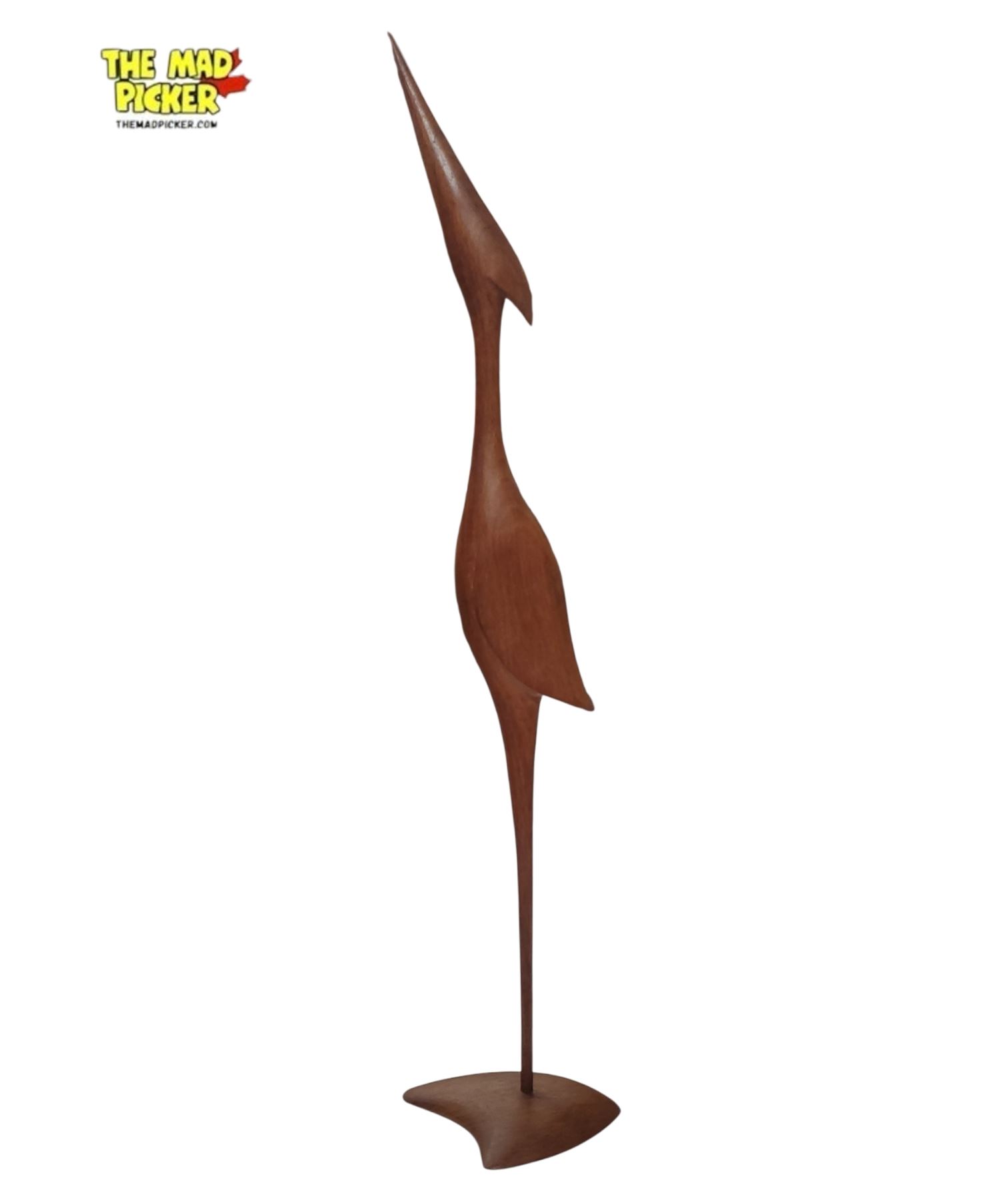 Mid-Century Modern Teak Wood Sculpture of a Crane or Heron - 26" Tall