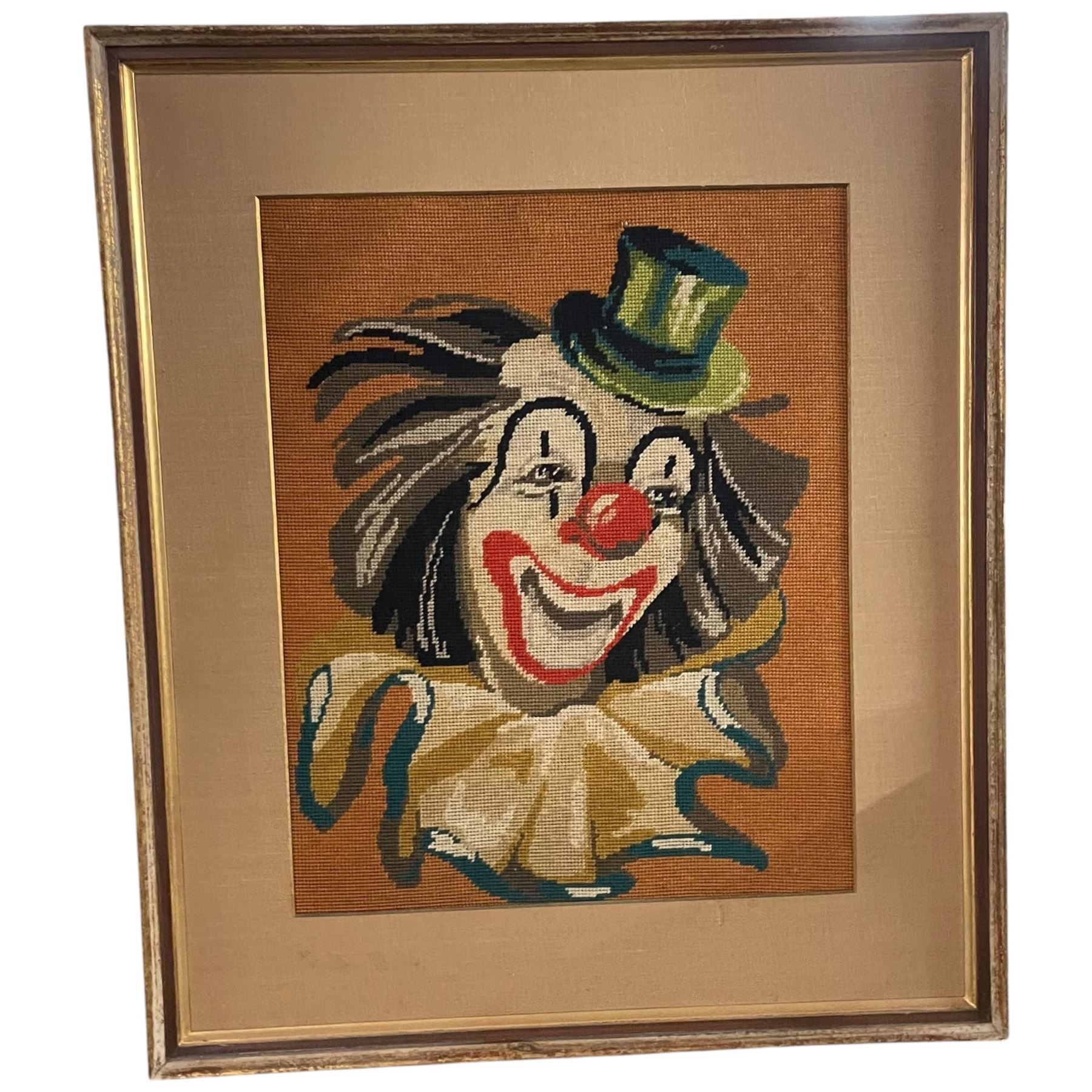 Mid Century Needlepoint of a Clown 23x27"