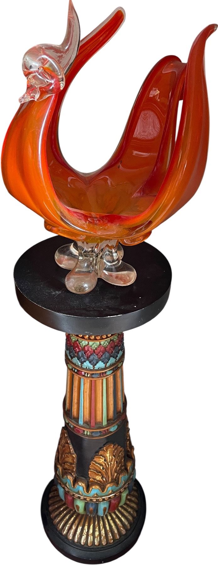 Mid-Century Orange Art Glass Centerpiece Bowl on Decorative Pedestal