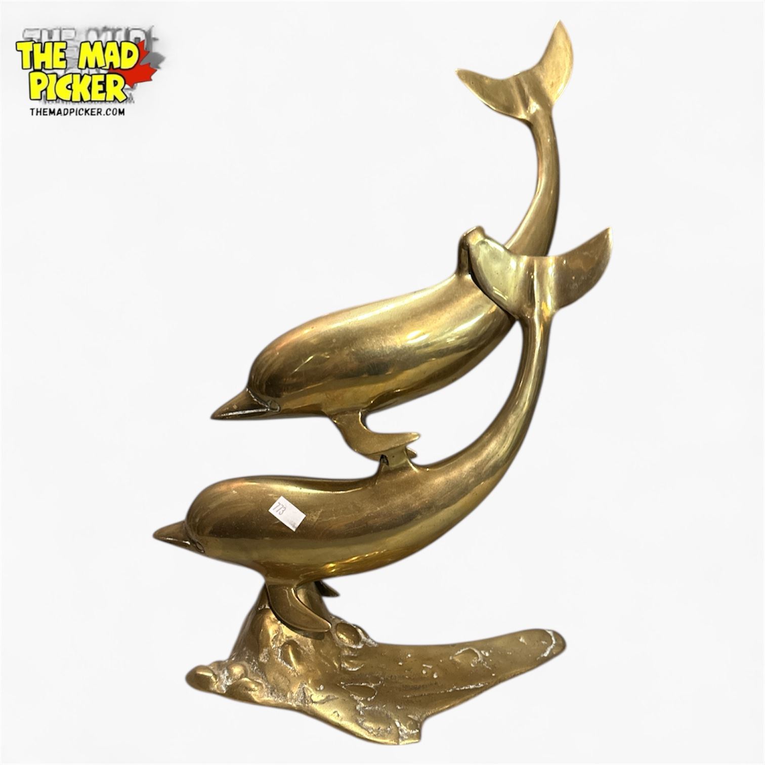 Mid-Century Solid Brass Double Dolphin Sculpture Polished Finish
