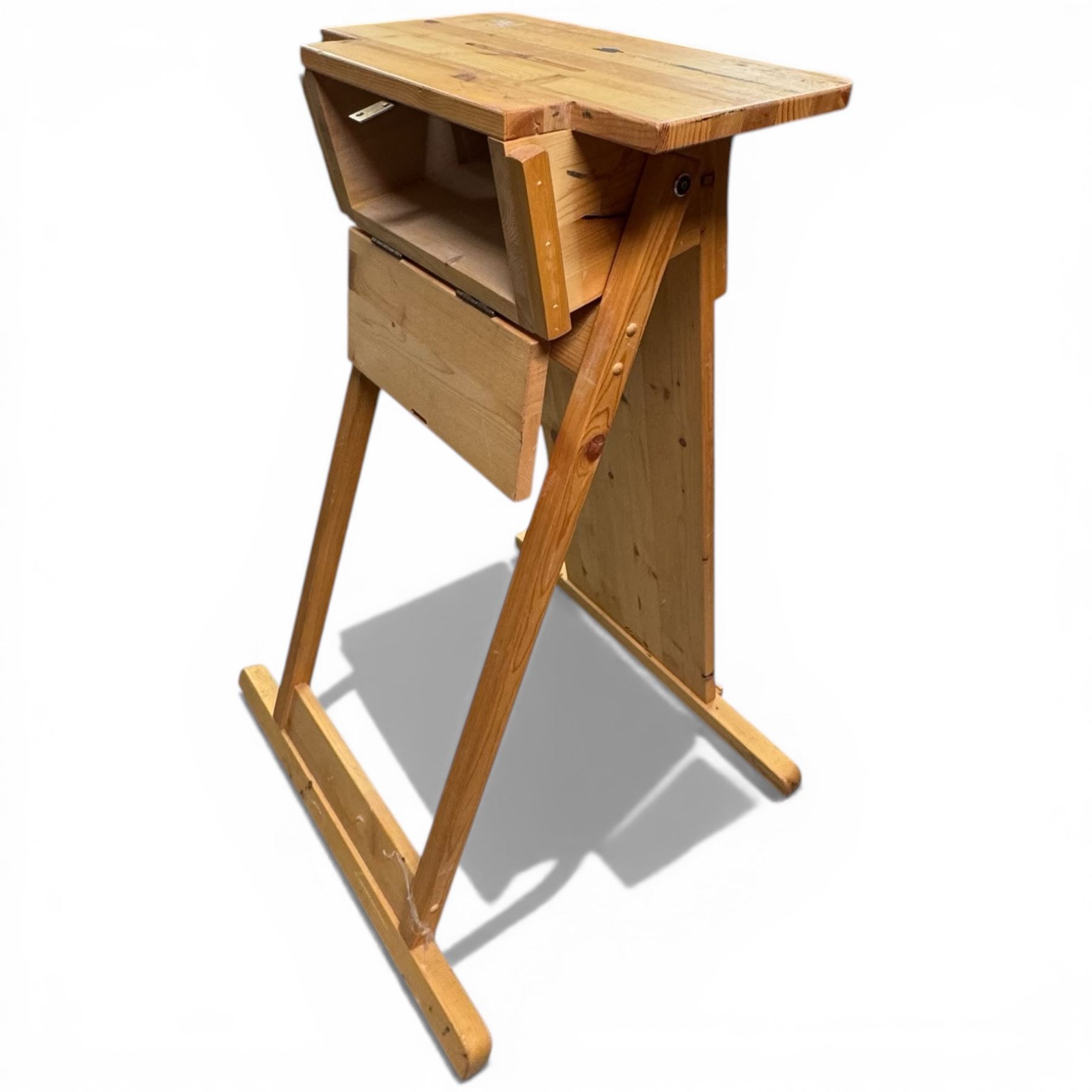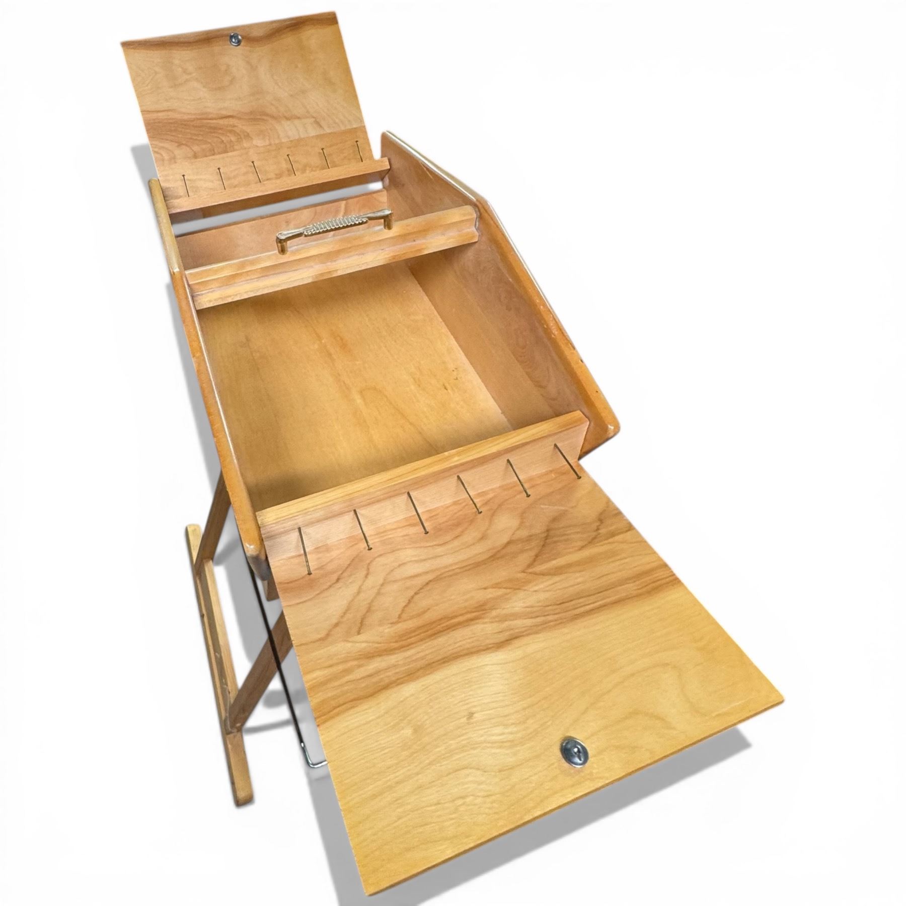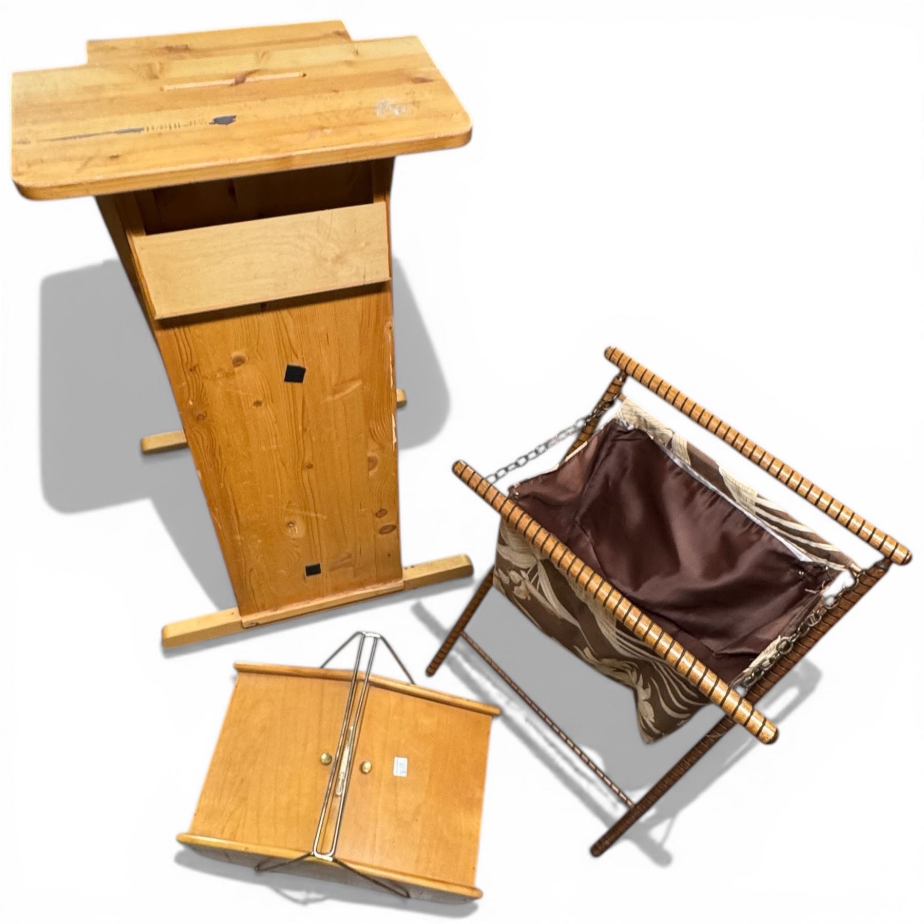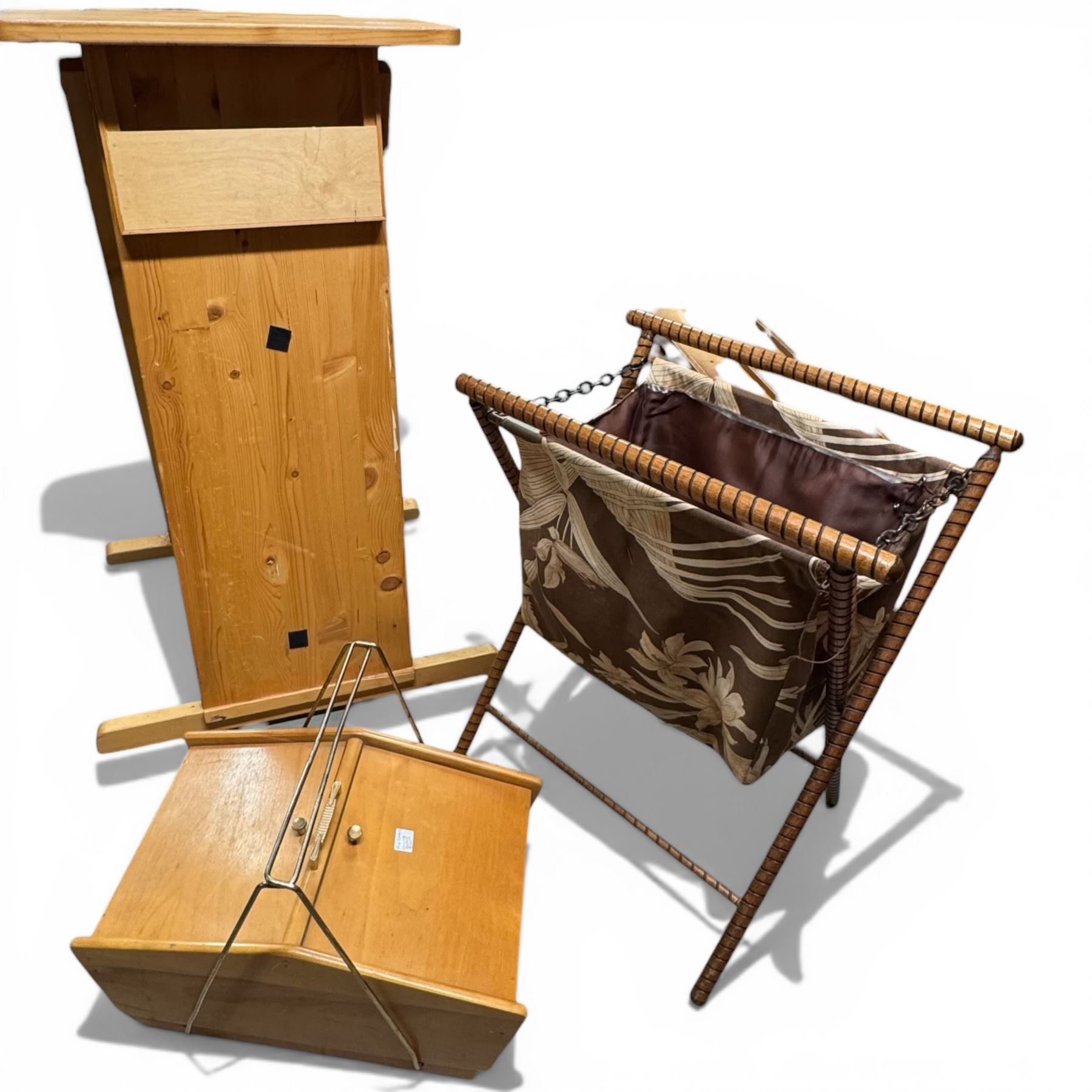 Mid Century Wood Sewing Box, Pine Ballot Box and Folding Hamper