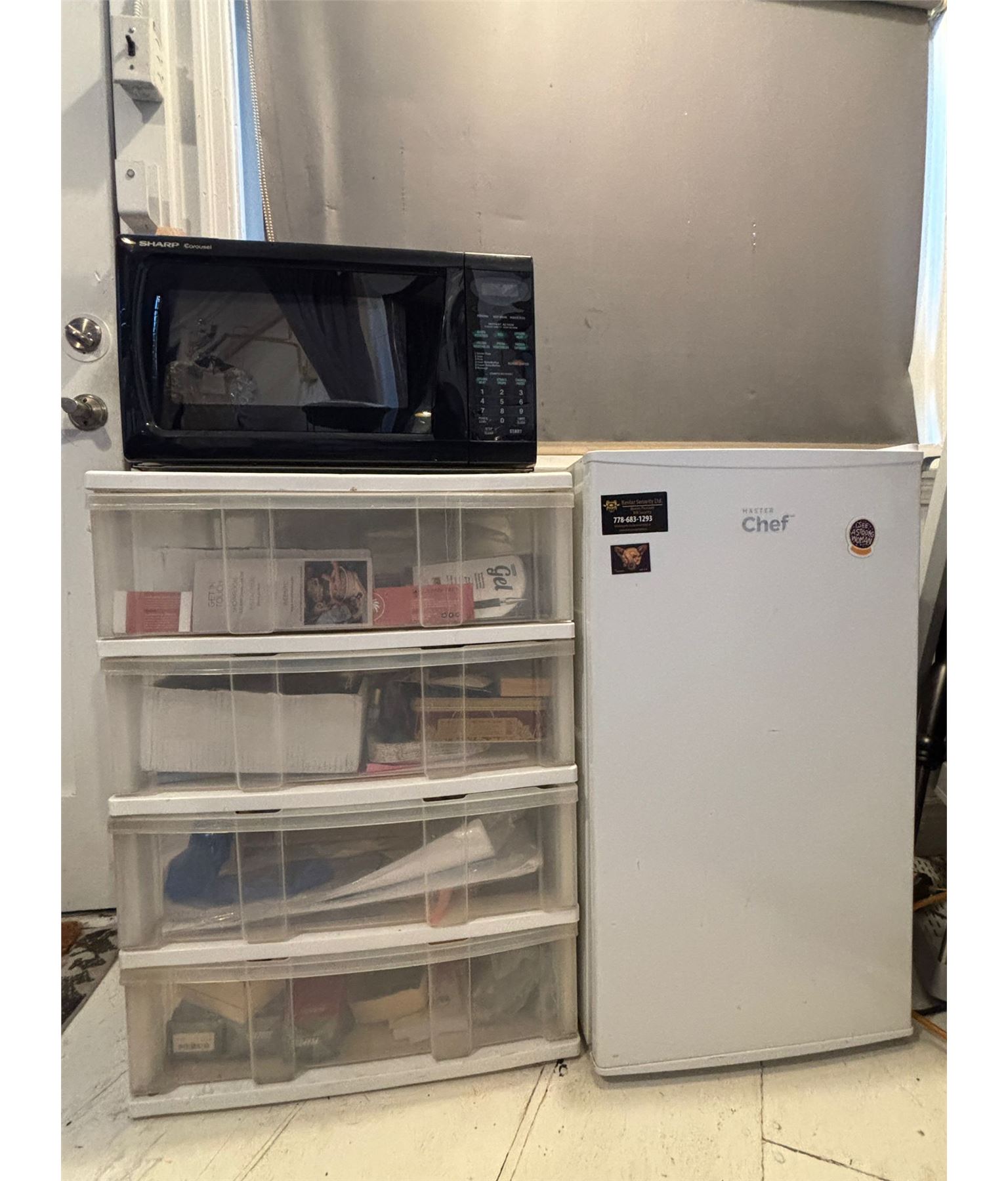 Mini Fridge, Microwave & Kitchen Contents - Working condition