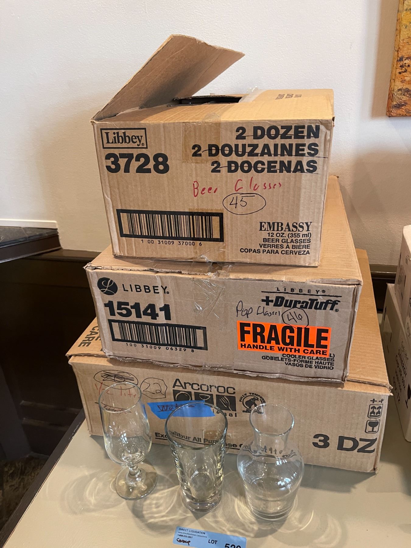Misc. glass stemware - 12oz. Beer glasses / 14oz. Cooler glasses / wine crafts - Approx. 6 Dozen total