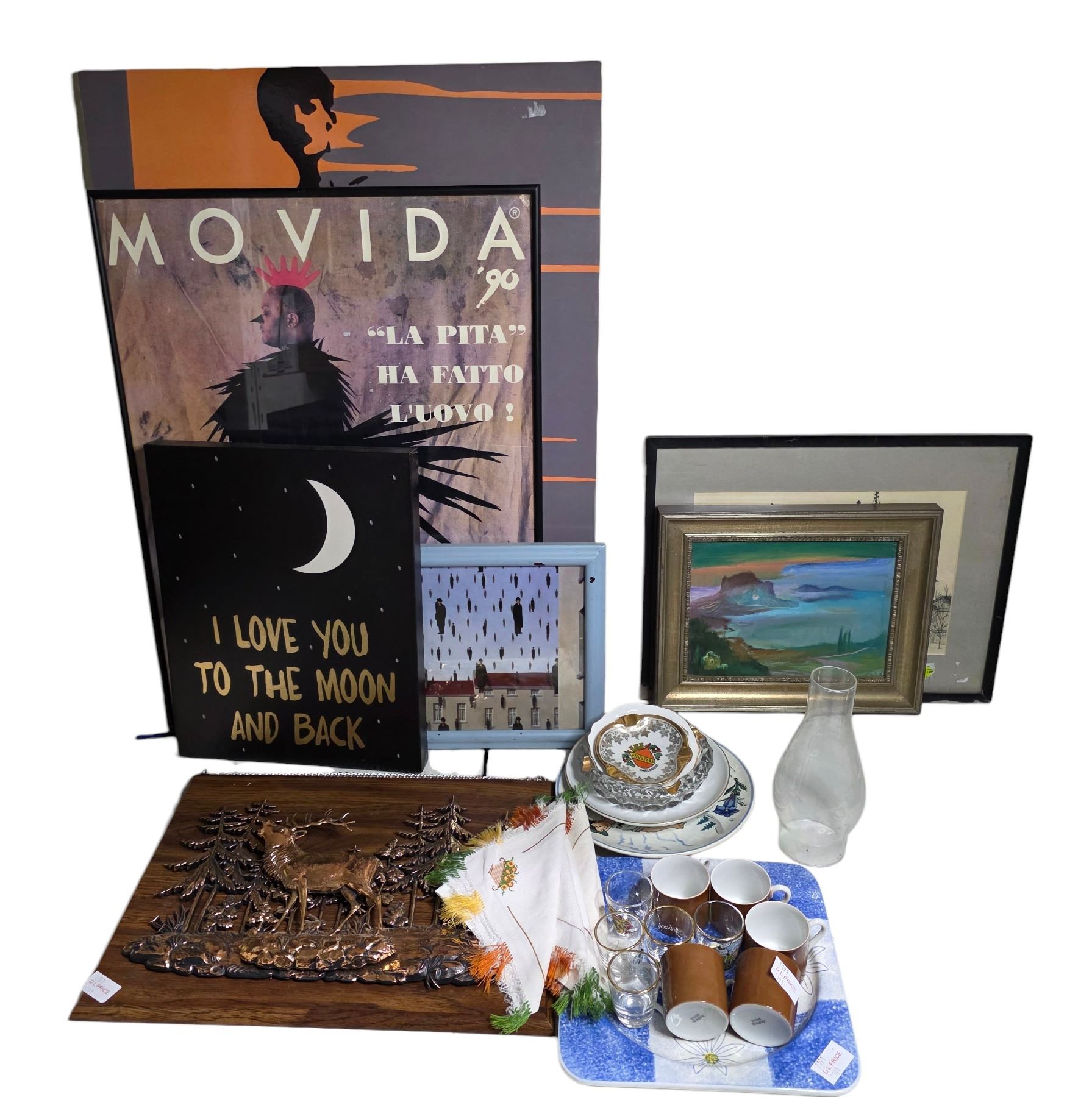 Mixed Decor Bundle - A&J 3D Deer Wall Hanging Plaque, Paintings and Prints, Ceramic Dishes, and More