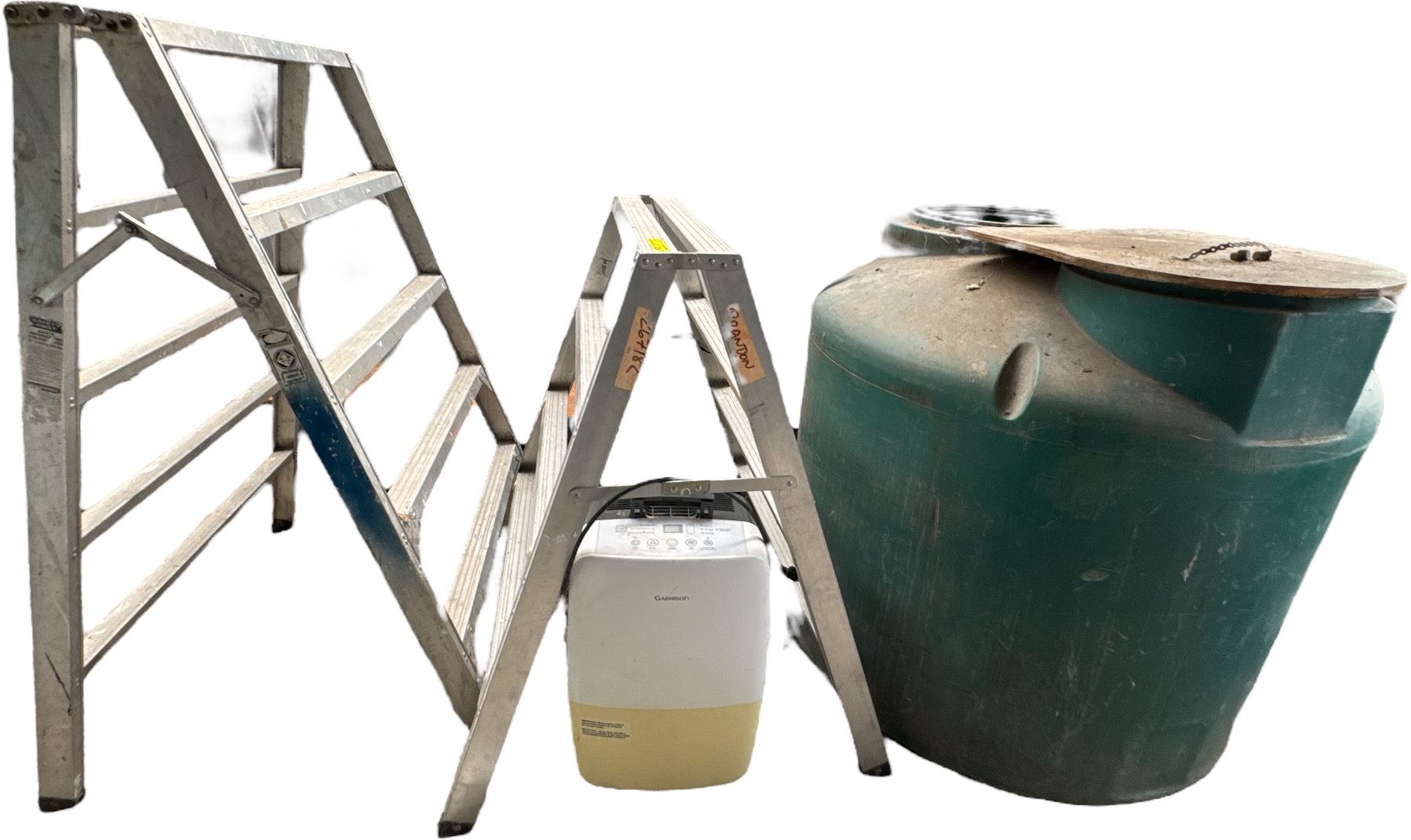 Mixed Lot: Two Wide Ladders, Dehumidifier and Water Storage Tank