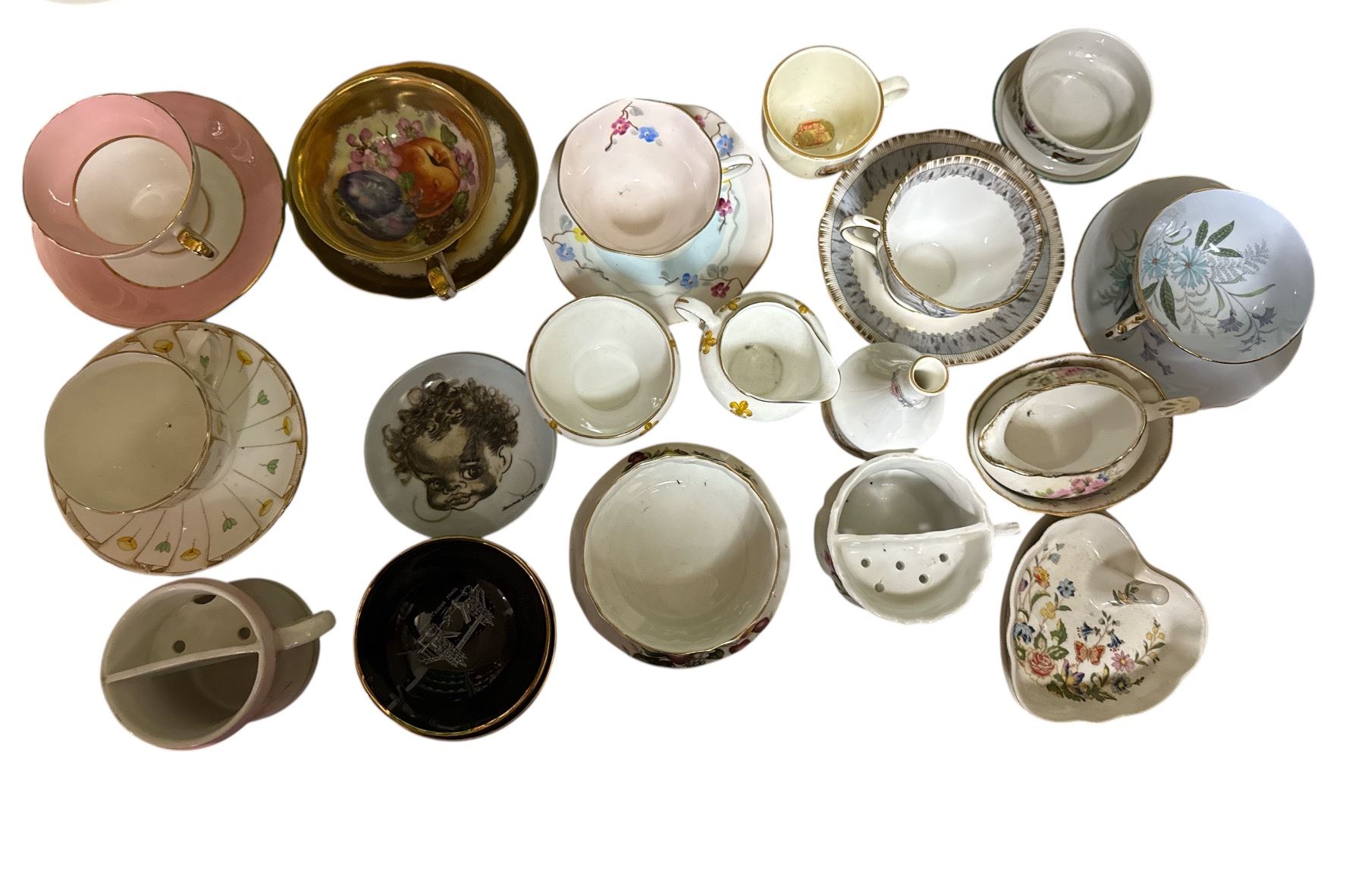 Mixed Porcelain Teacups with Saucers, and Tea Serving Items Includes Brands Aynsley, Royal Albert