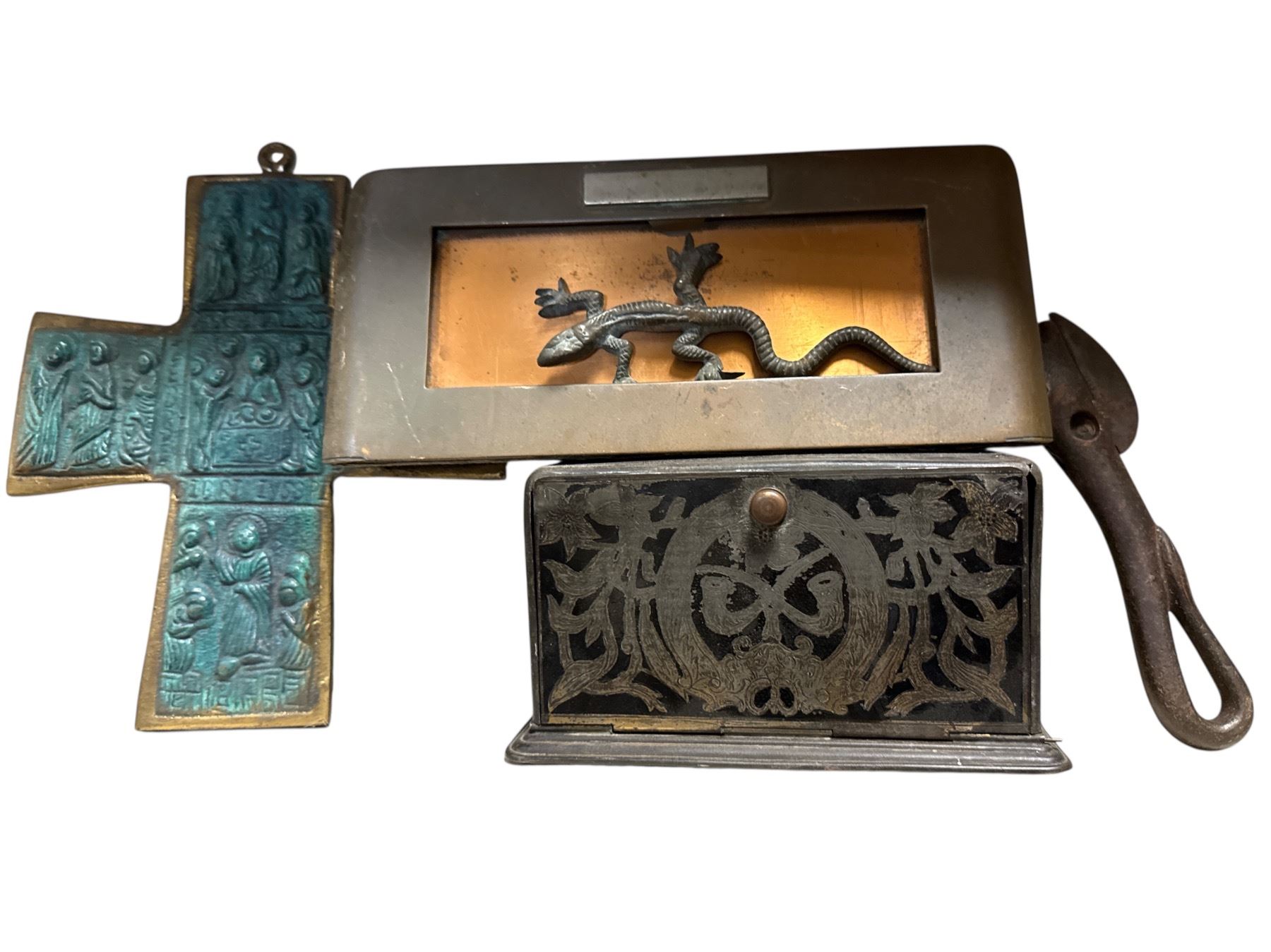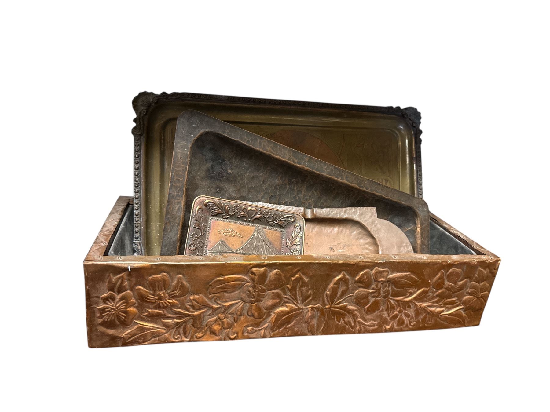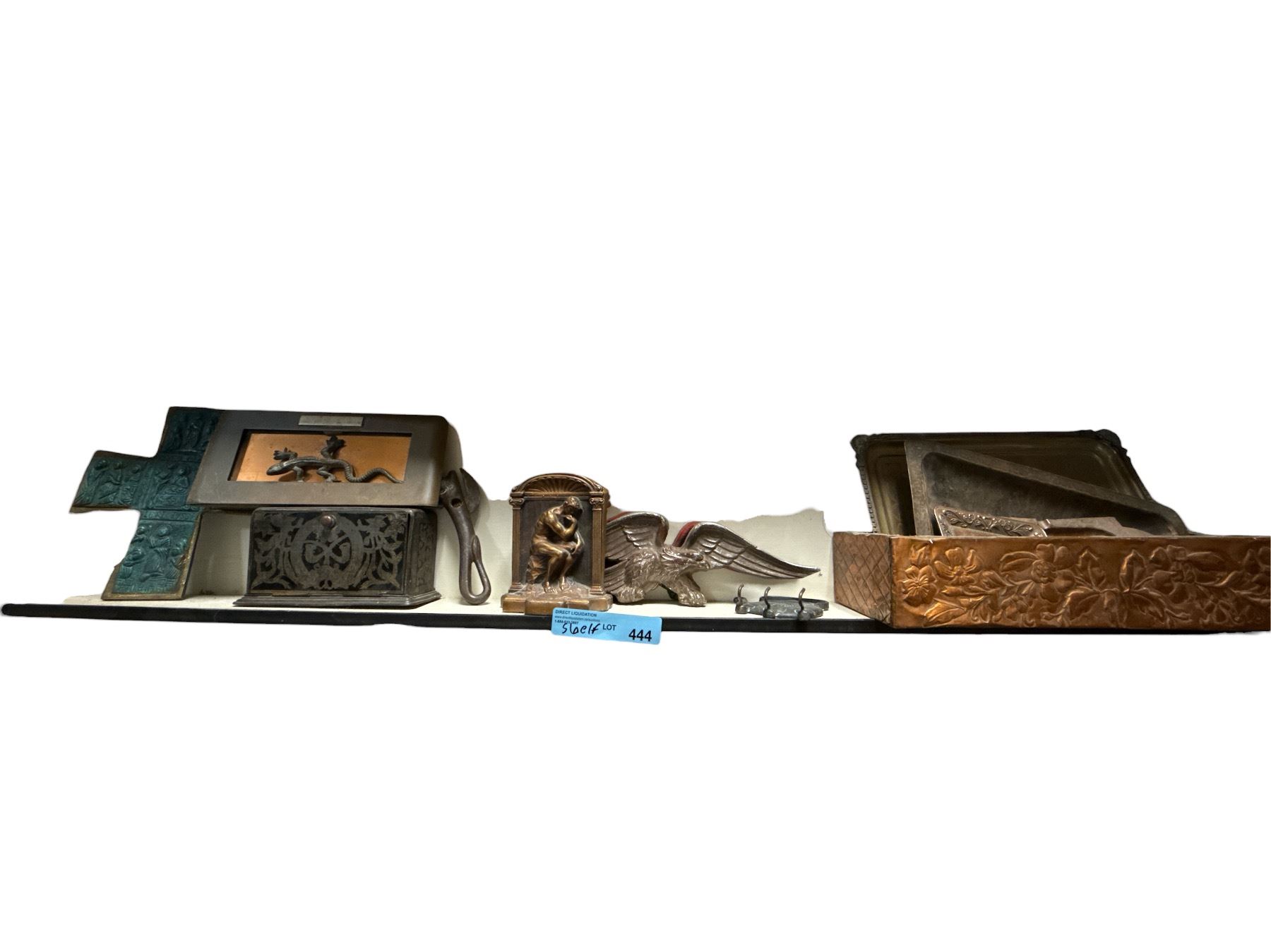 Mixed Vintage Copper & Brass Decor, Boxes, Cross, Trays & Eagle Sculpture