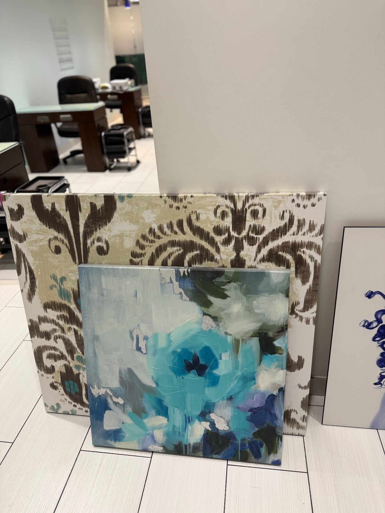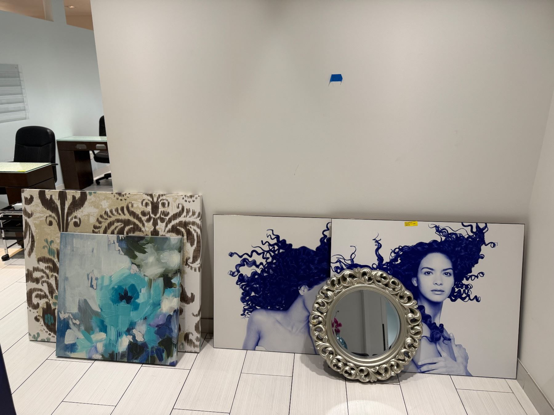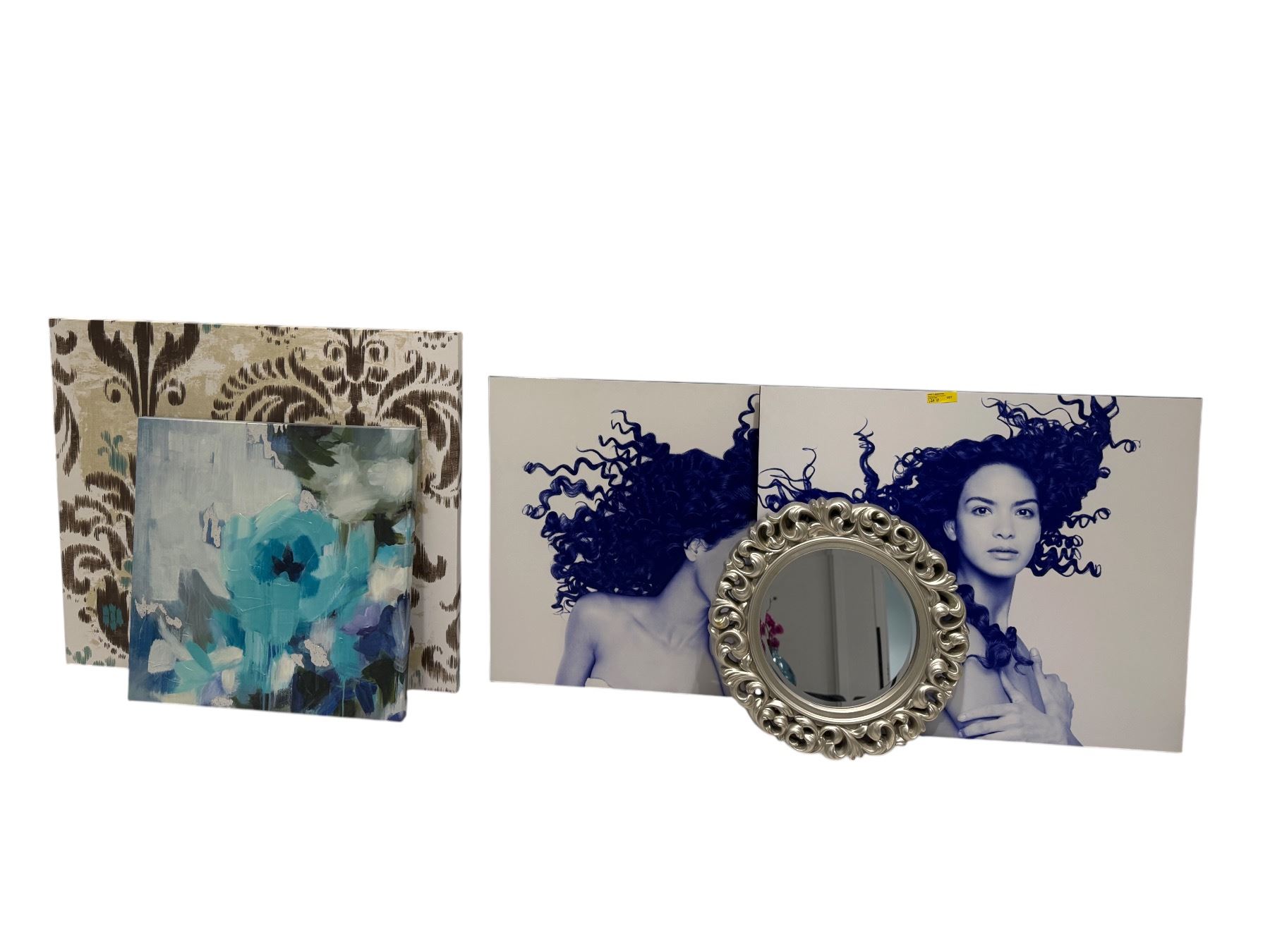 Mixed Wall Decor Lot - Ornate Silver Mirror, Abstract Floral & Salon-Themed Canvas Art
