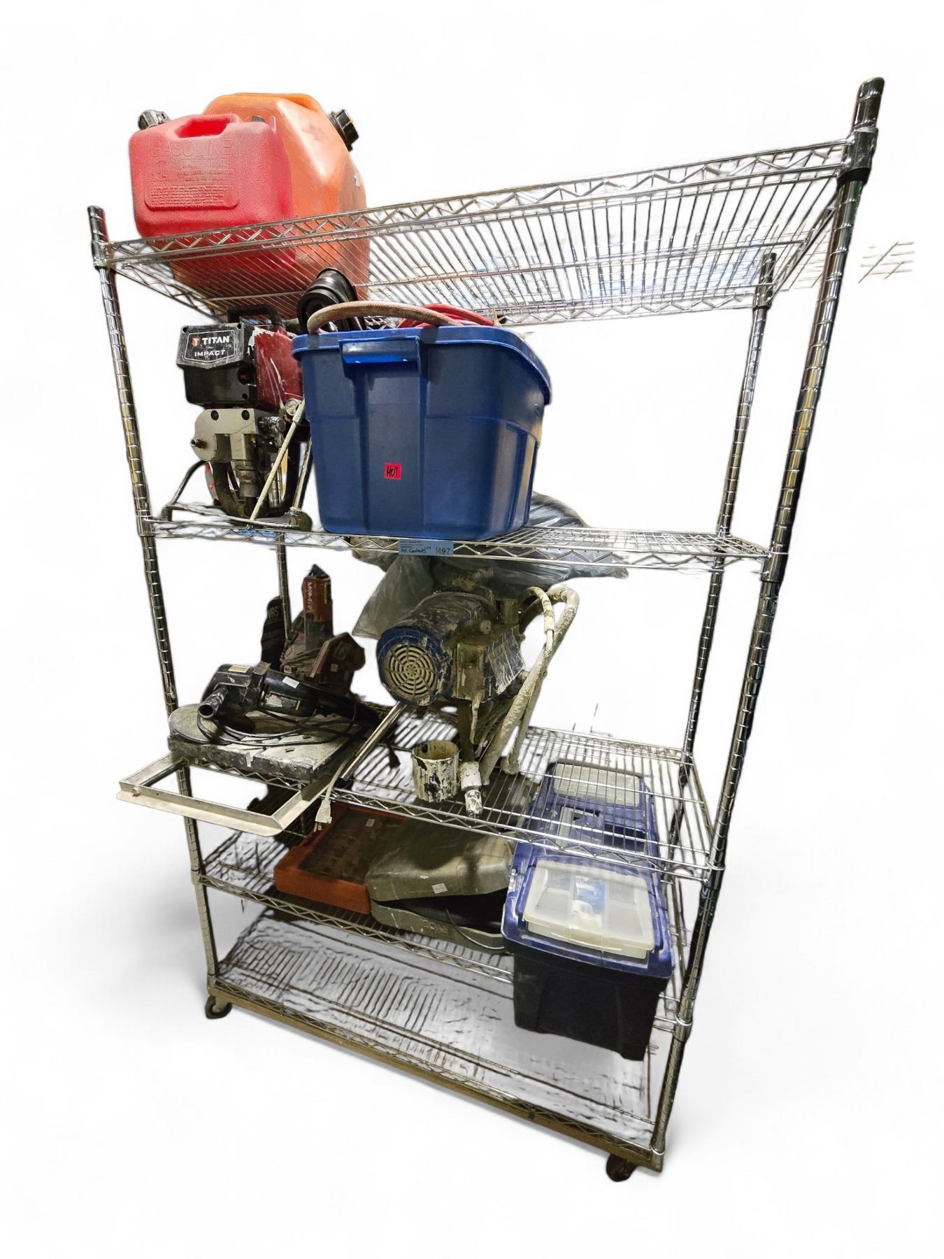 Mixed Workshop Items w/ Paint Sprayer, Storage Bins, Tools & Gas Cans