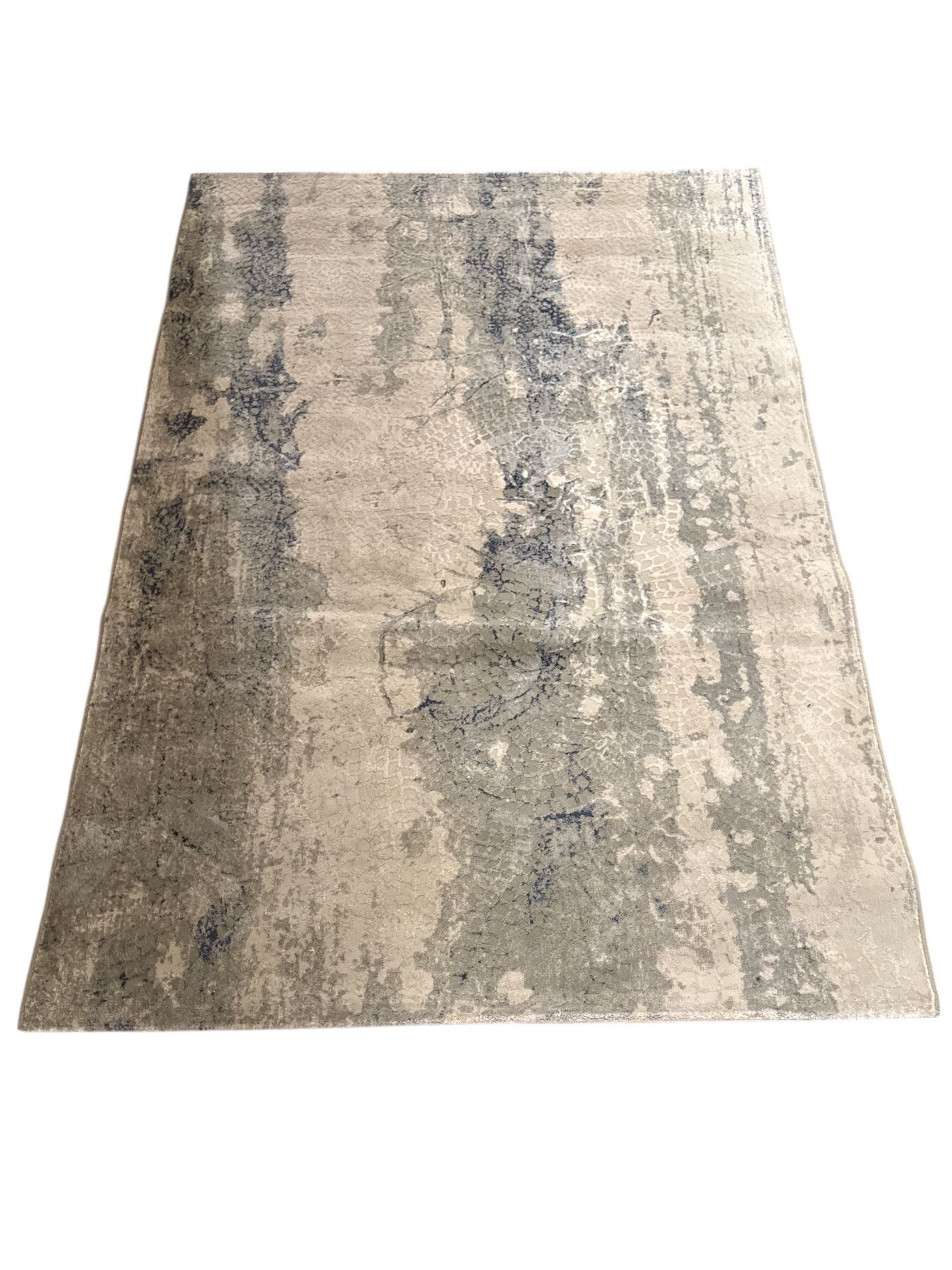Modern Abstract Distressed Area Riug In Slate And Alabaster - Approx 80in x 88in