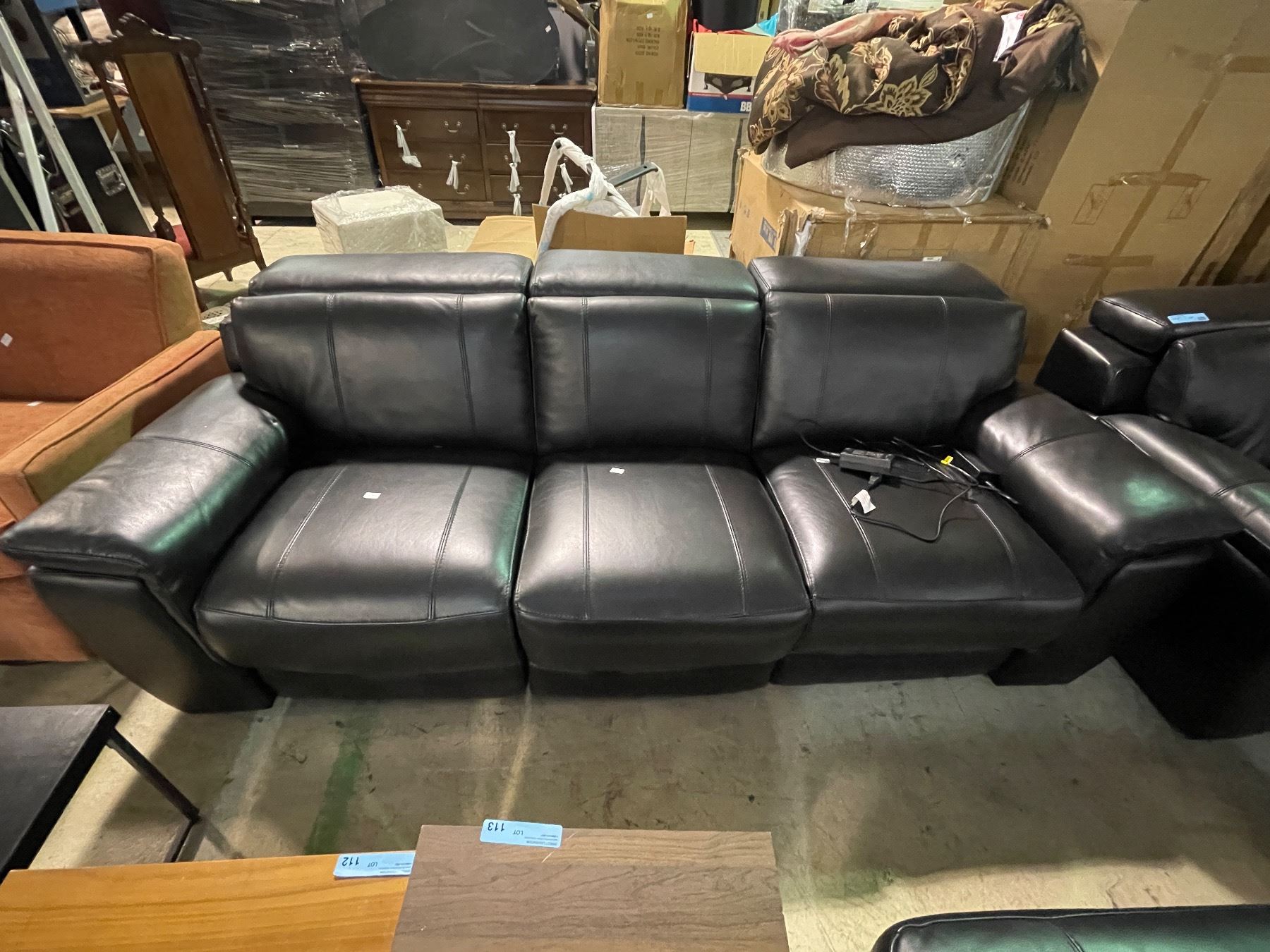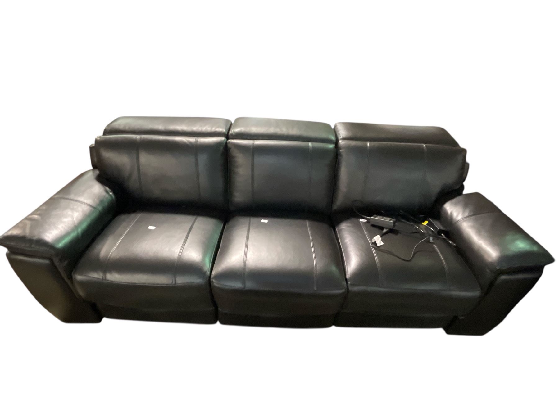 Modern Black Leather Reclining 3-Seat Sofa, Approx. H31" x W87" x D36" (w/ Adapter)